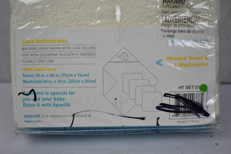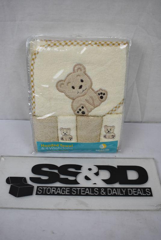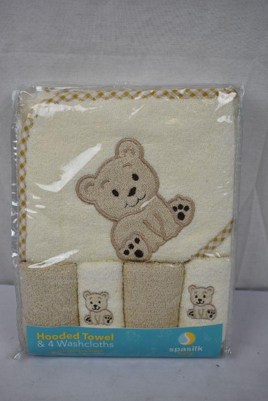 Spasilk Hooded Towel & 4 Washcloth Set, Brown Bear - New