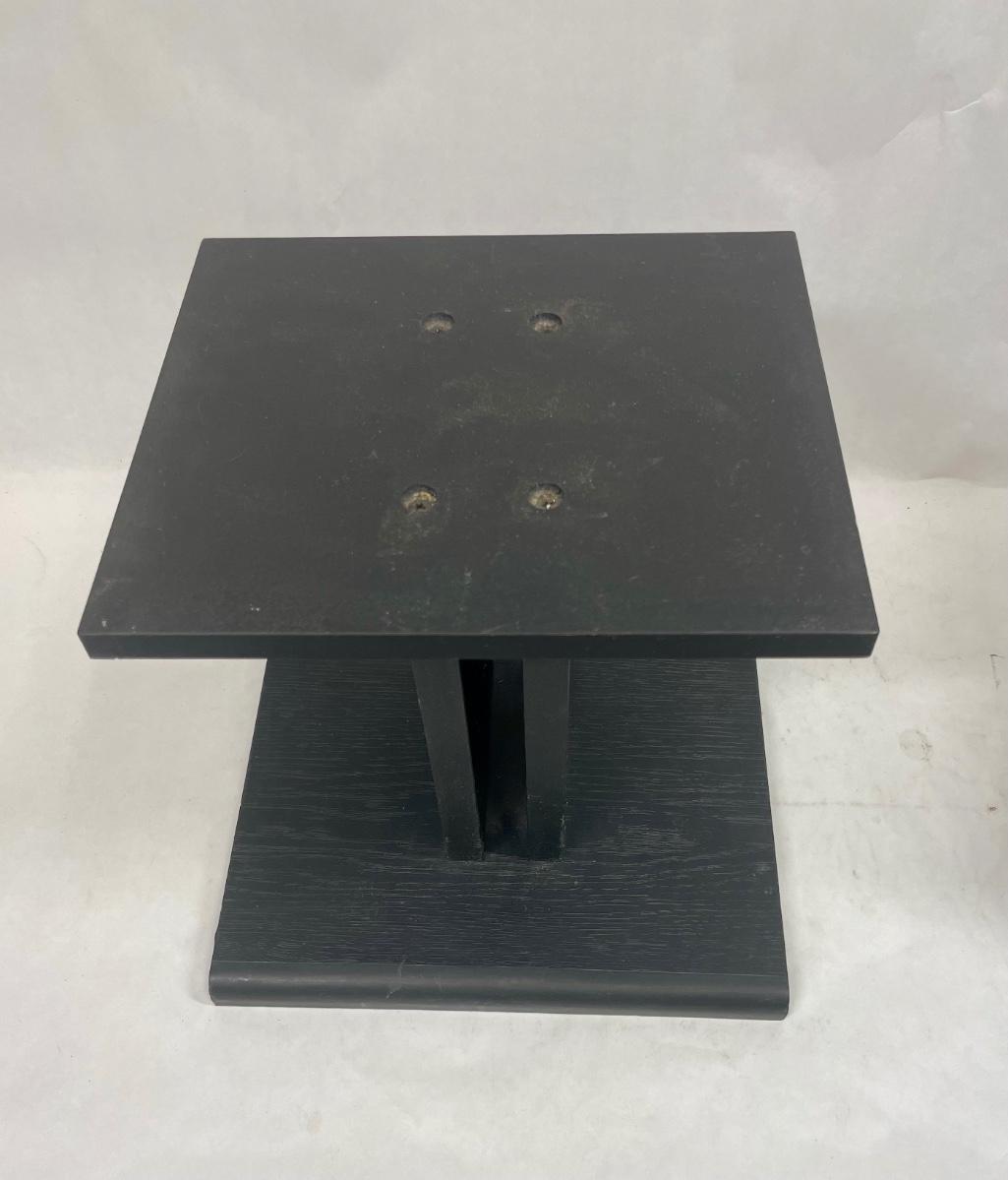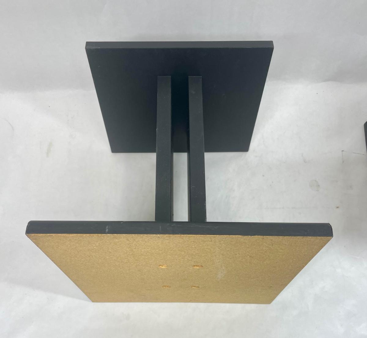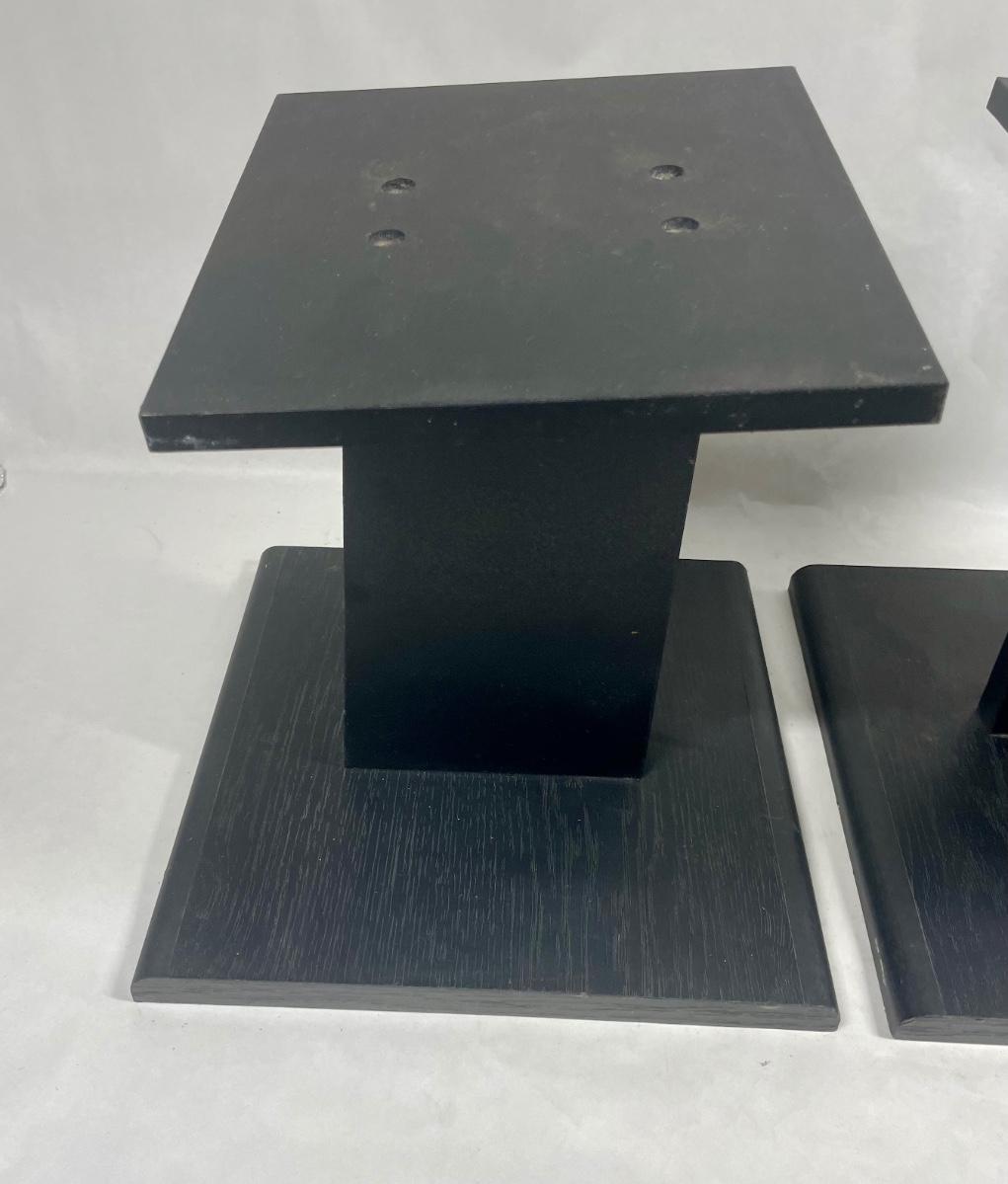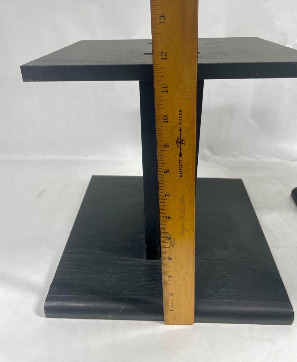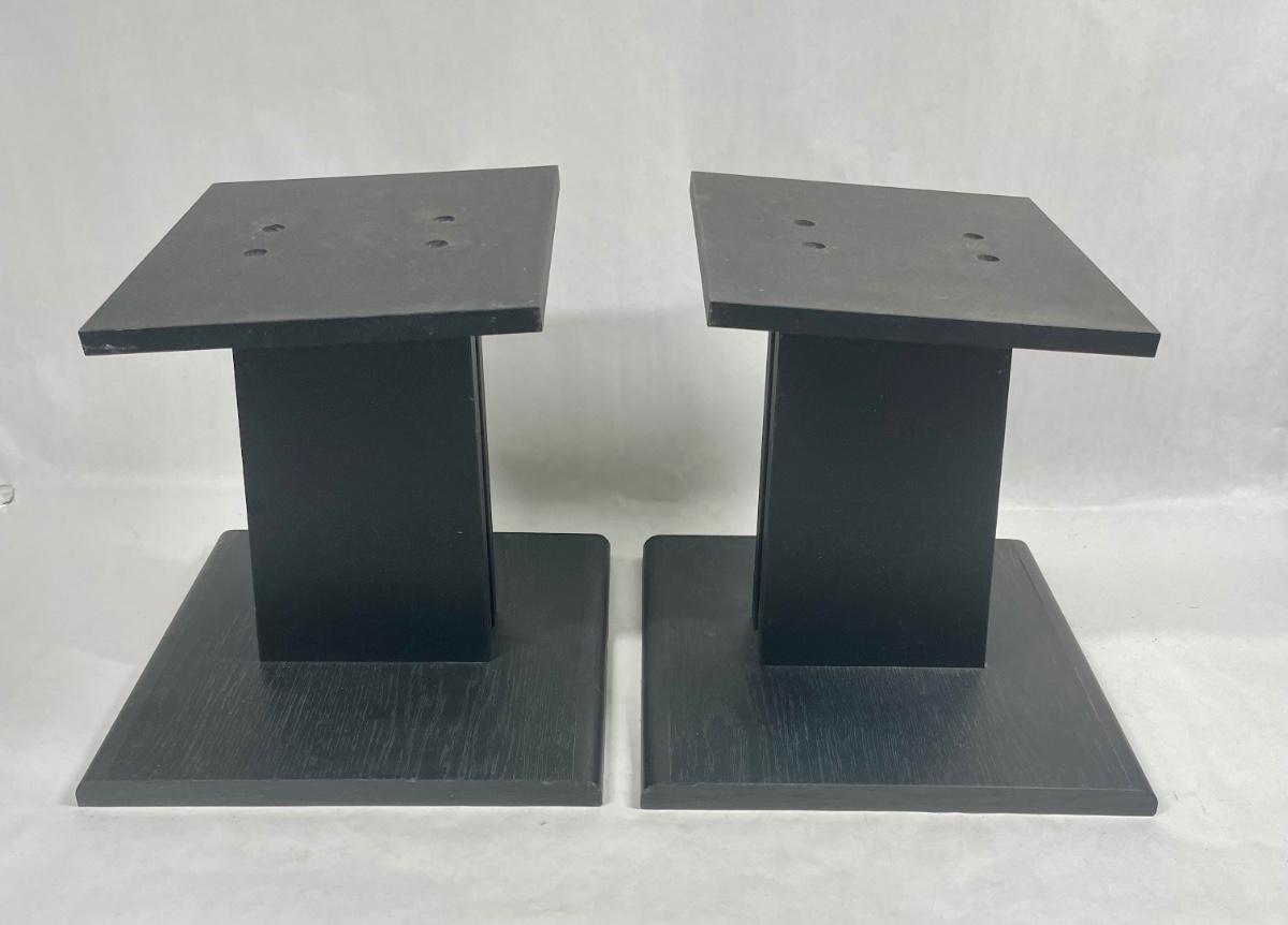 Pair of angled wood speaker stands, approx. 12” tall. Excellent condition.