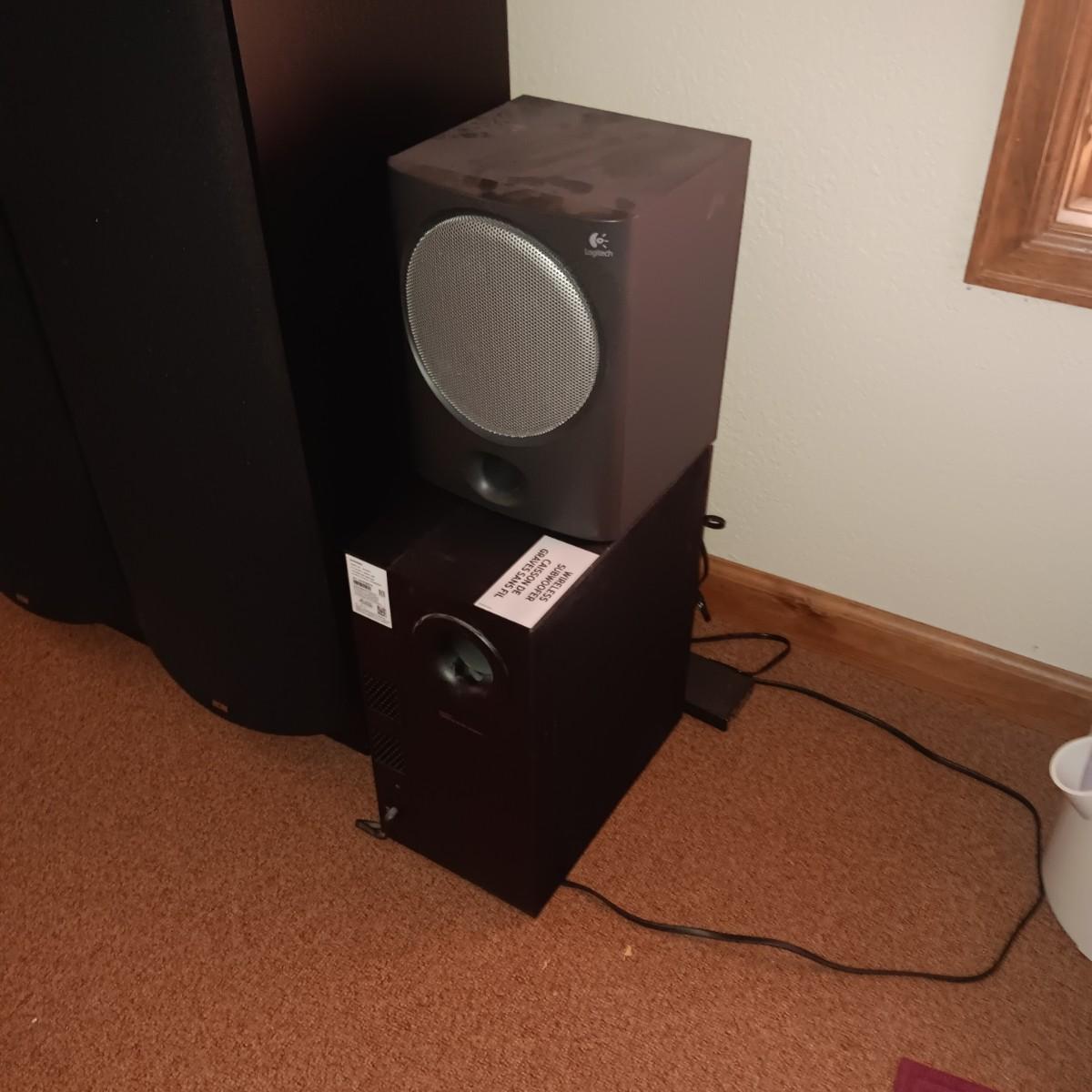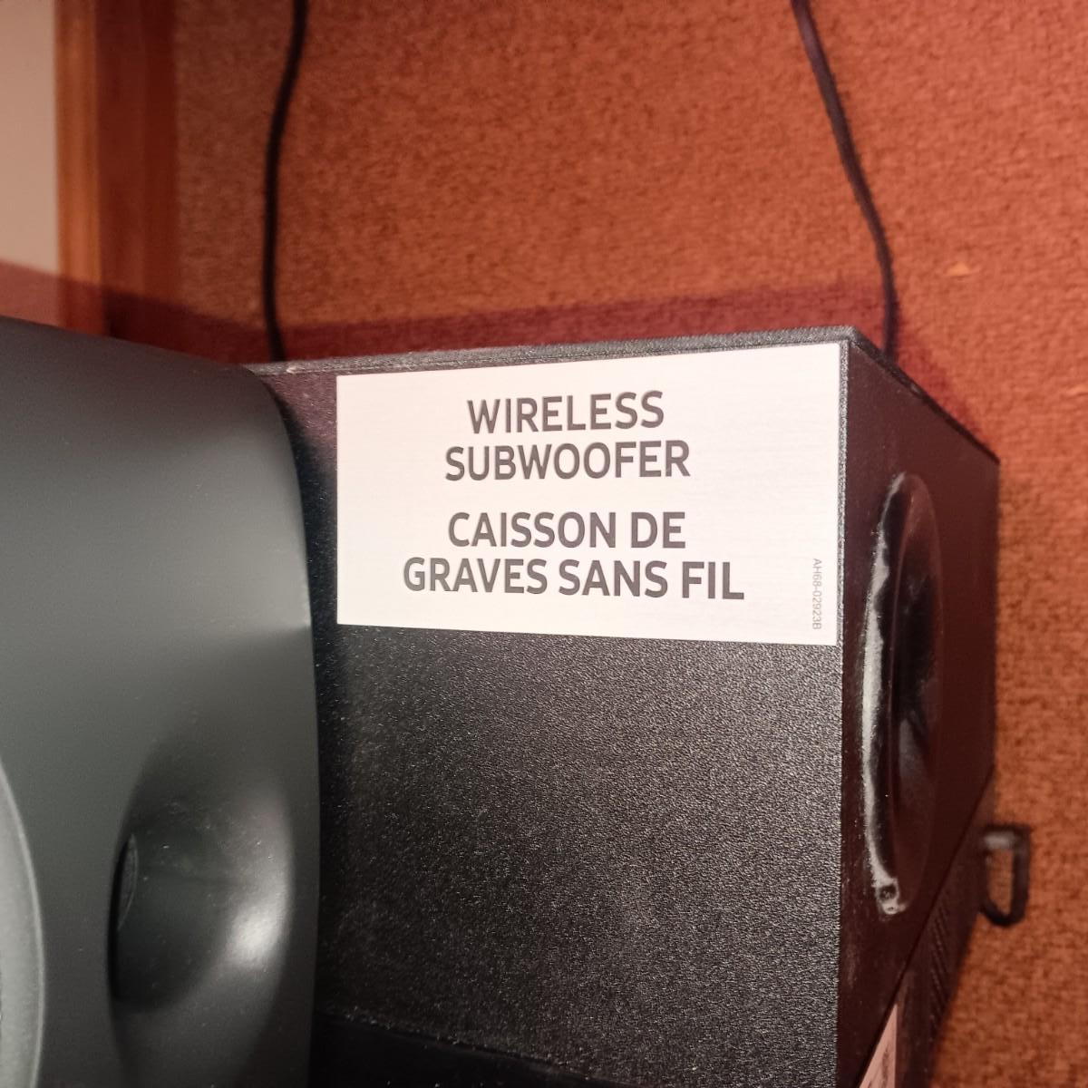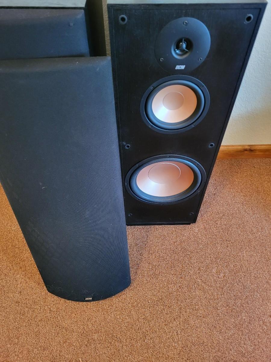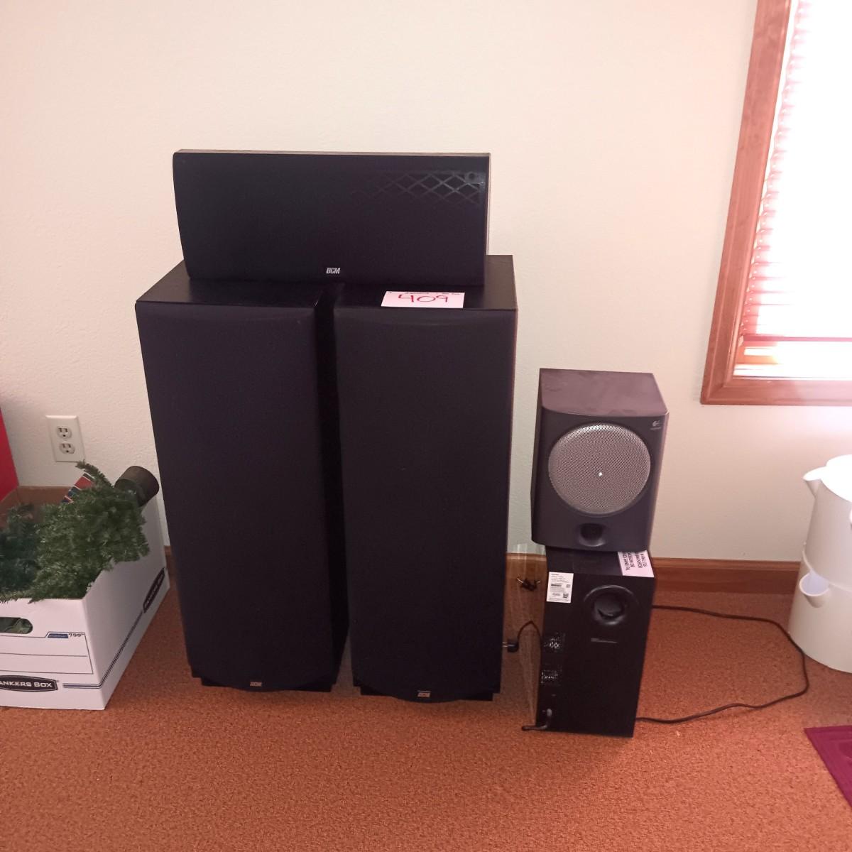 3 DCM SPEAKERS, 1 SAMSUNG AND A WIRELESS SUBWOOFER