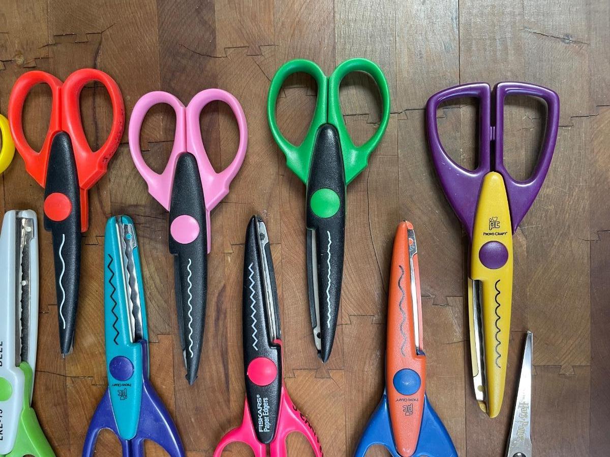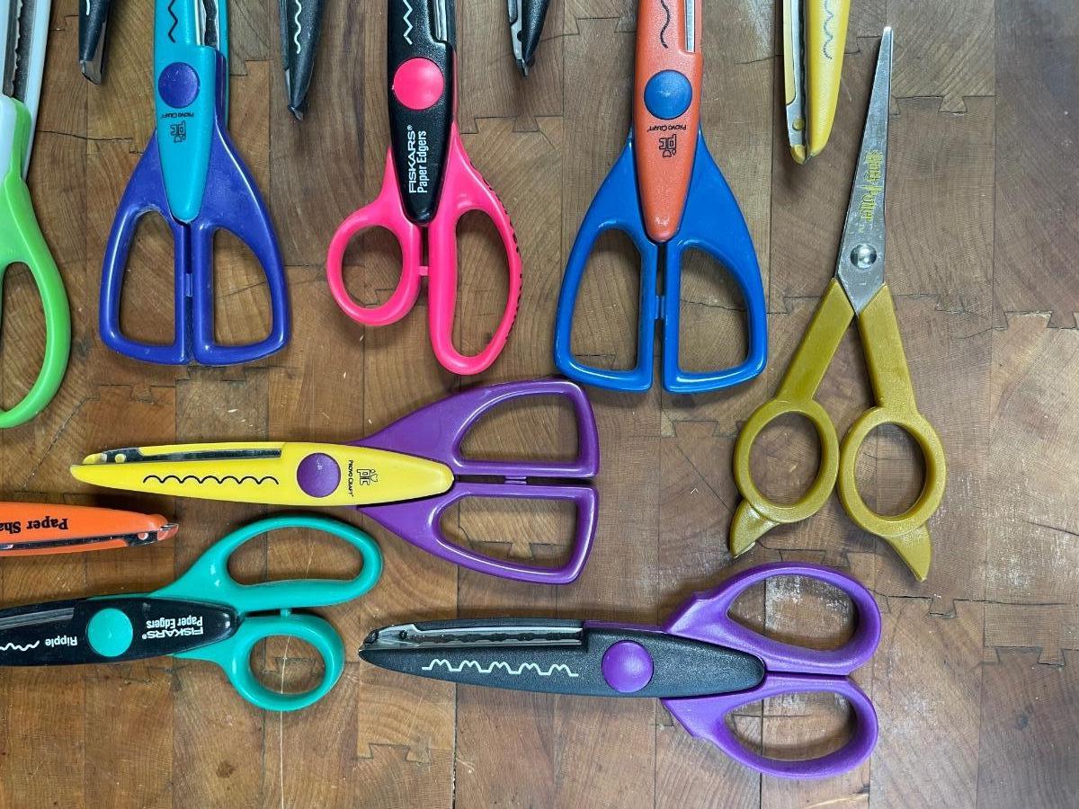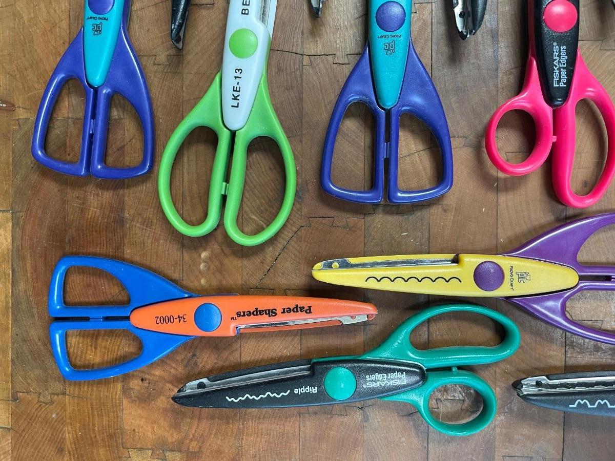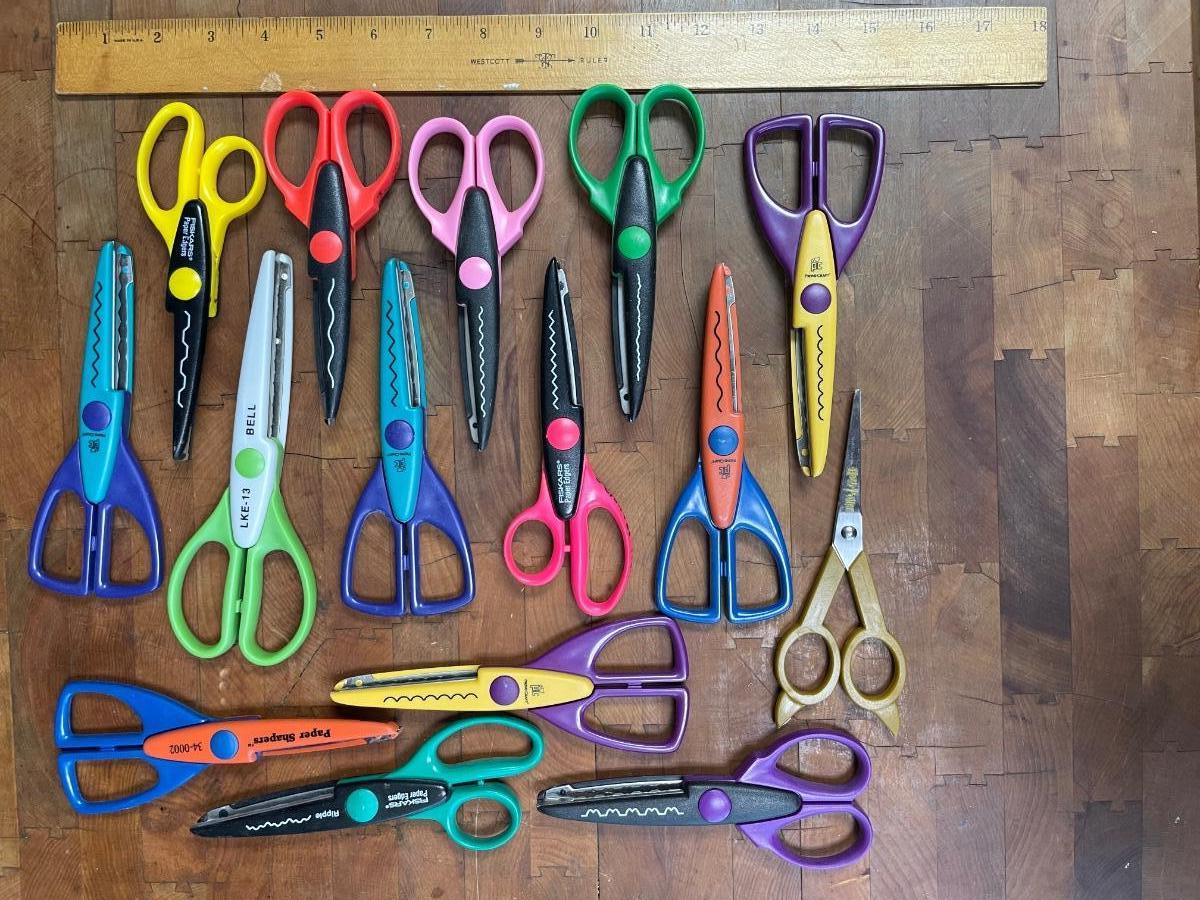 15 different scissors that cut zig-zag, wavy, scalloped, and other shapes. Great for scrapbooking.