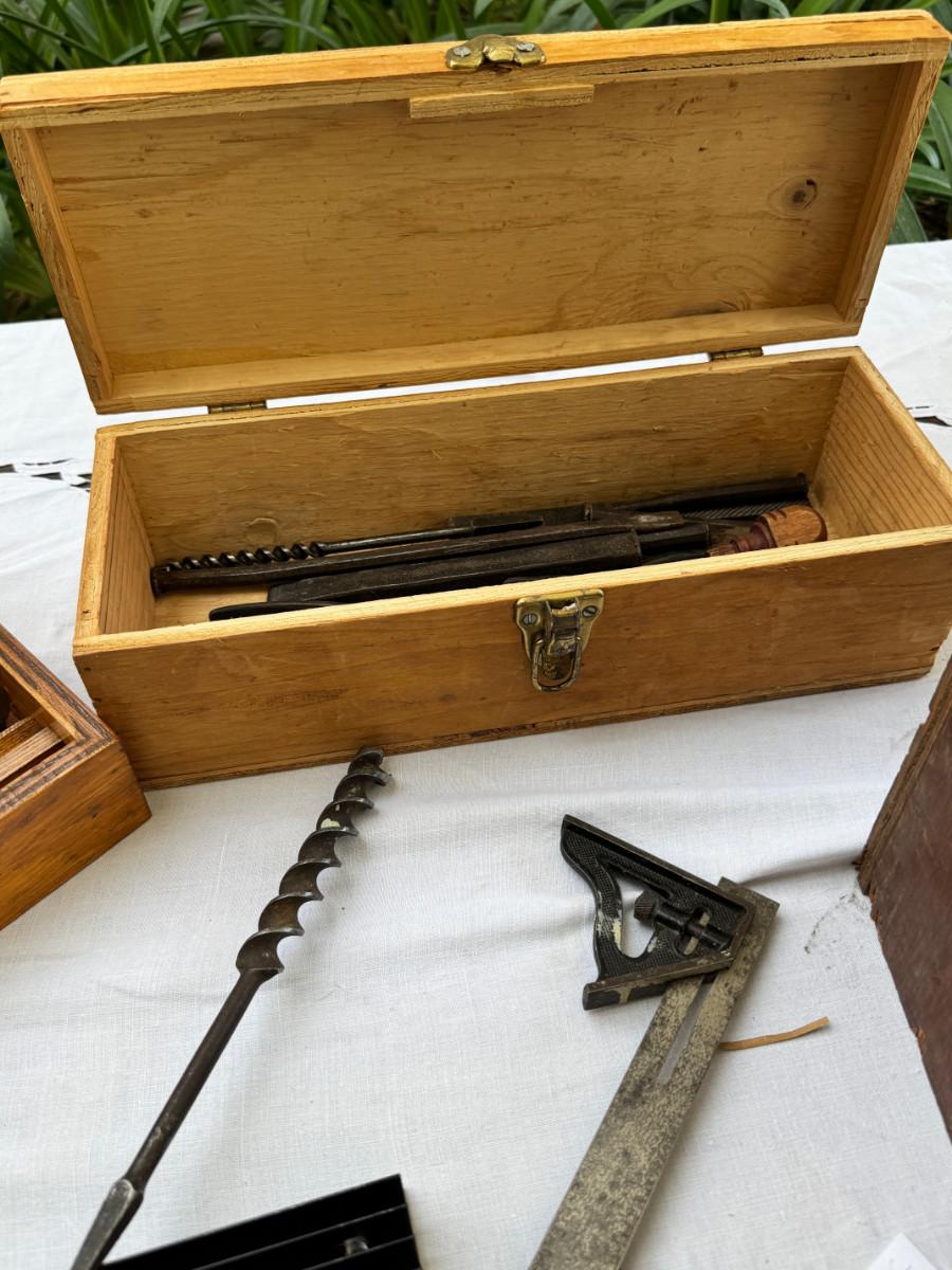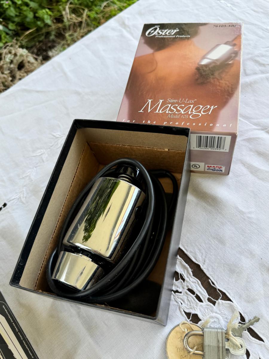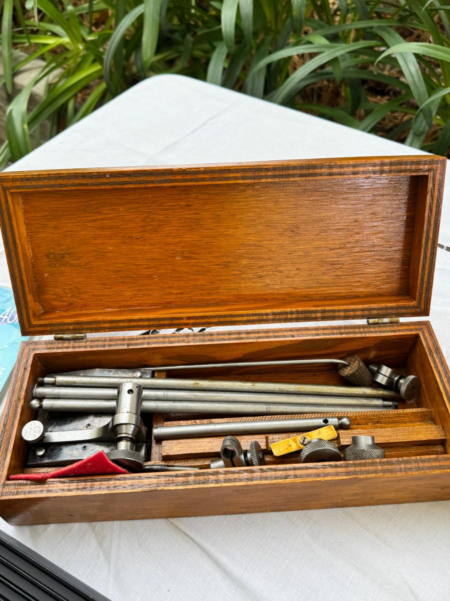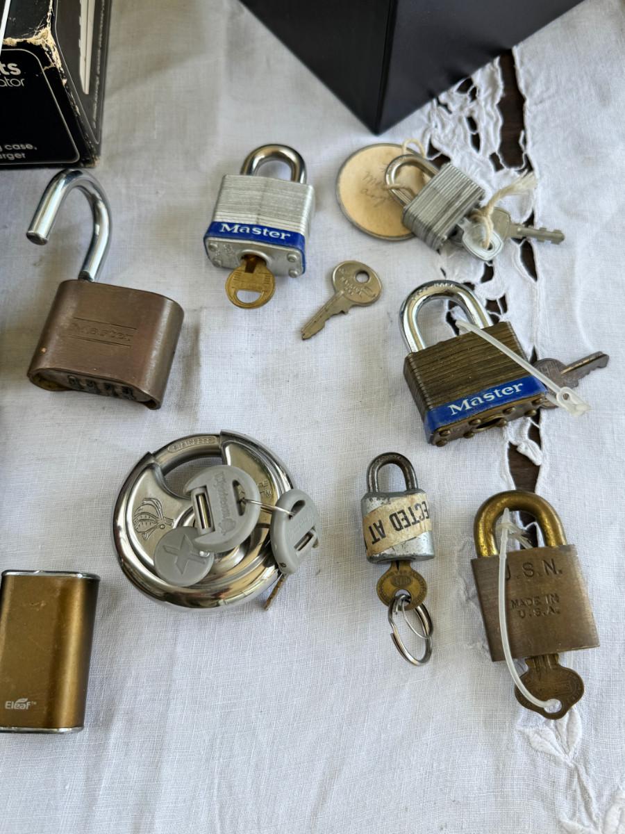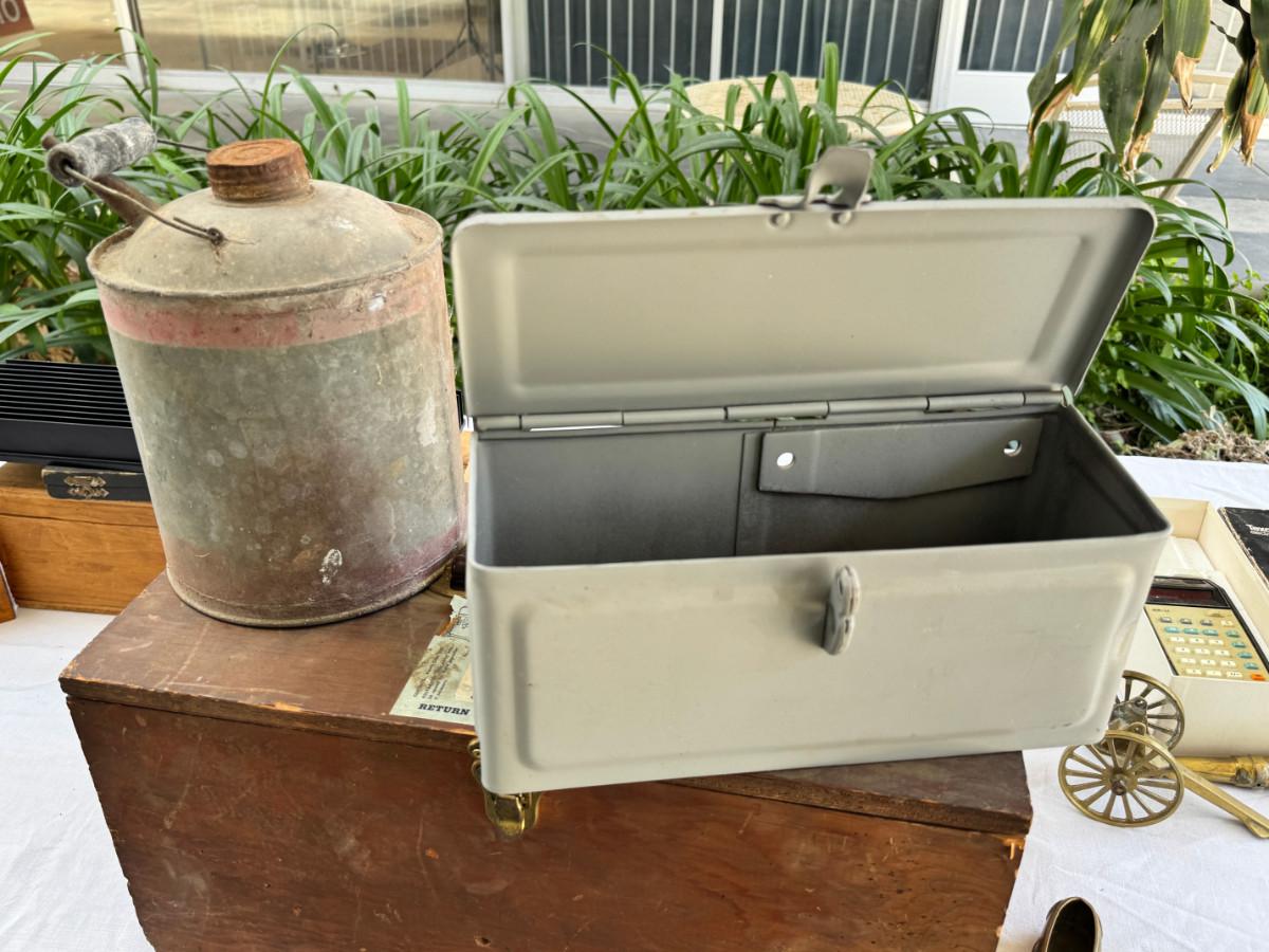 TI calculator, untested, Very heavy DoAll machinist tool, tested it does run, Calipers, drill bits, Tool Box, Locks and keys. No Shipping