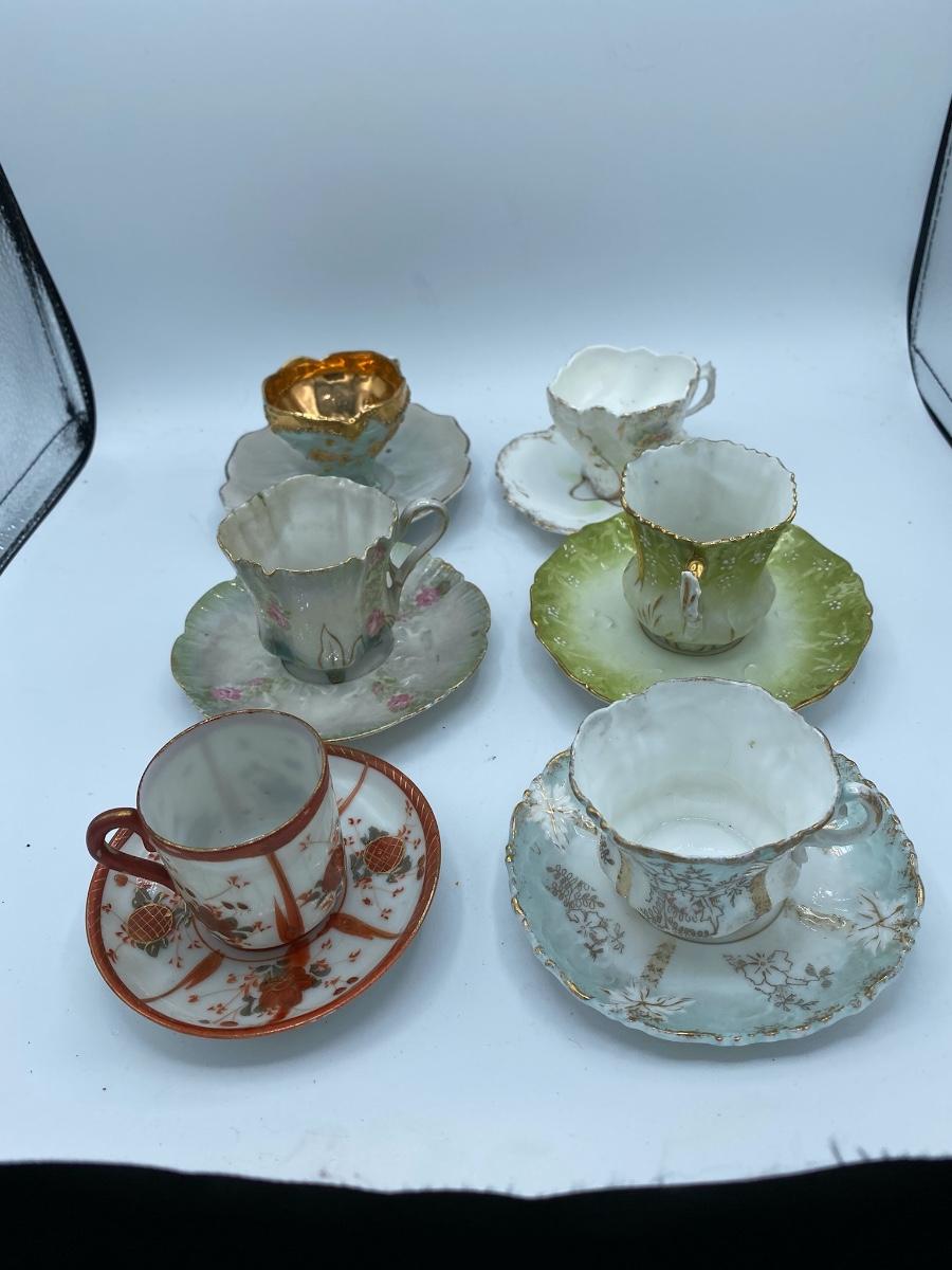 Marvelous collection of 6 demitasse/chocolate cups. A few are R S Prussia look for the gold, Asian motif, and other delicate designs. All in MINT condition.