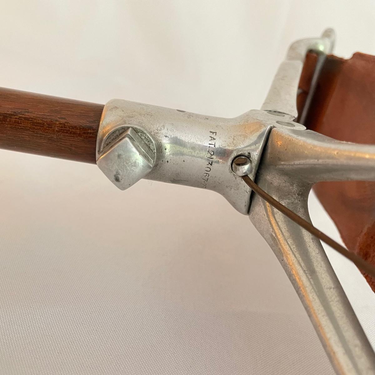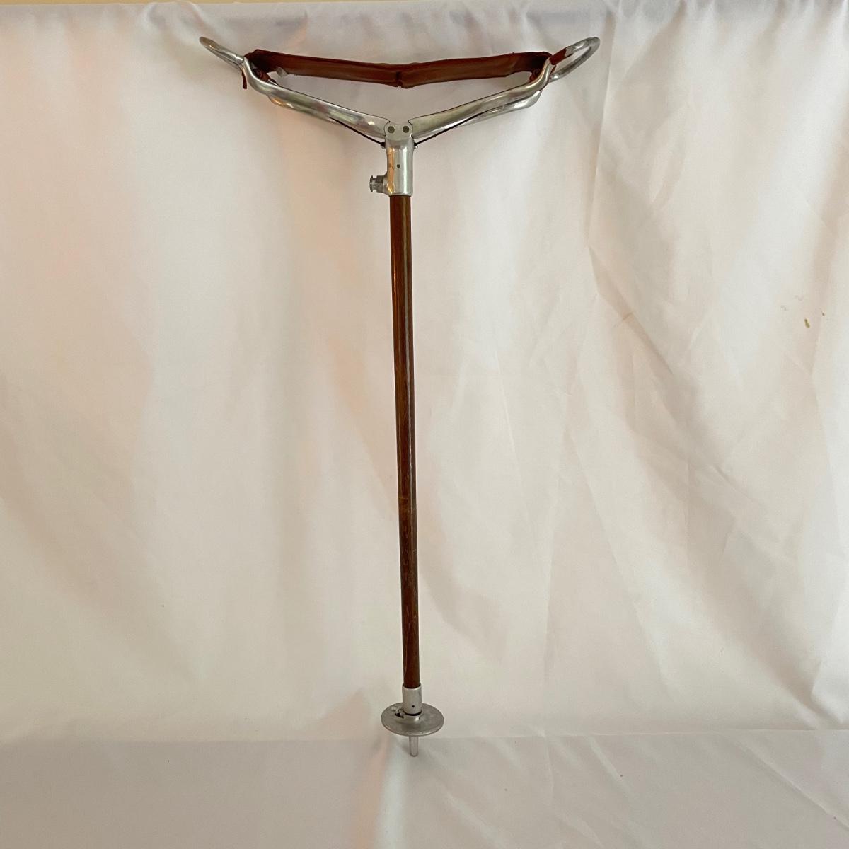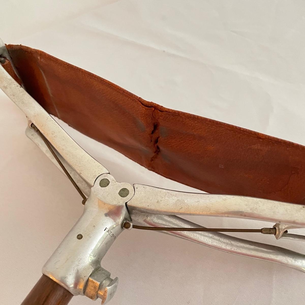 Vintage spectator seat stick in working condition The leather seat is worn on one side, but it is in otherwise very nice shape for its age. Folded up, it is almost 36” tall and it’s seat height is almost at 28” when used on a lawn. See images. Shipping available. Please call UPS with dimensions at 828-252-6930 for a shipping quote prior to bidding.