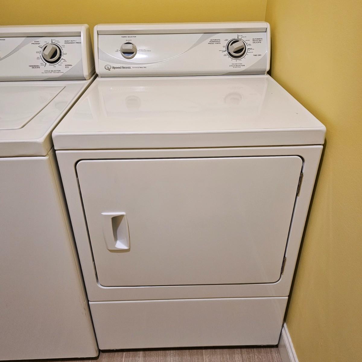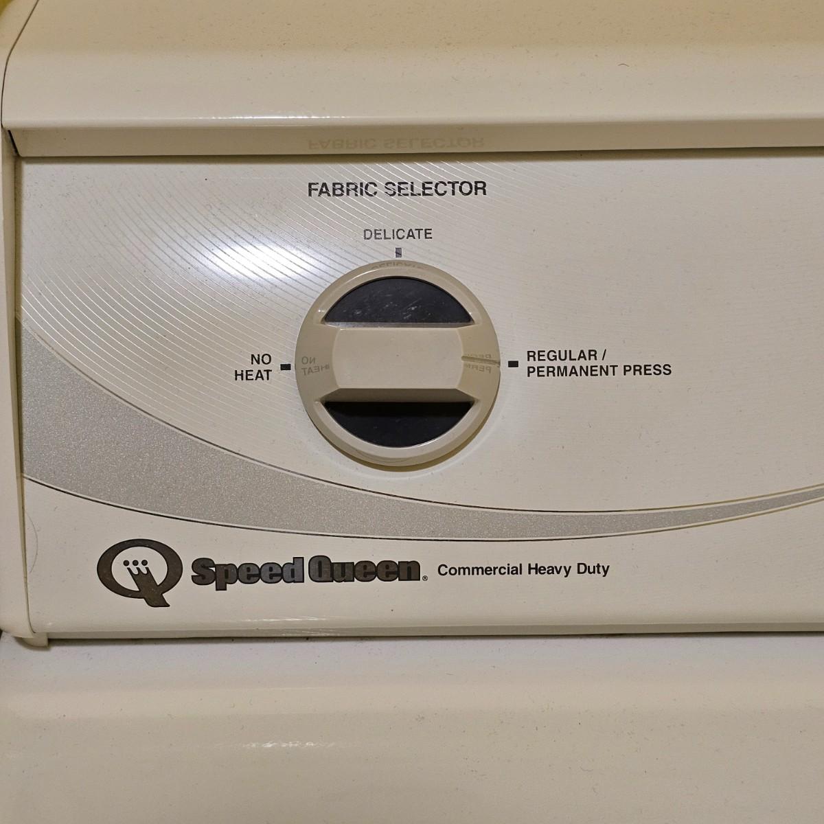 Commercial Heavy Duty line of Speed Queen appliances. Fabric selector, cycle selection and more. Unit measures 27" x 28" x 43"H. See photos for details. You must bring assistance to help move and load this item due to its weight and/or size. Item is on first floor with short step exit out to garage.
