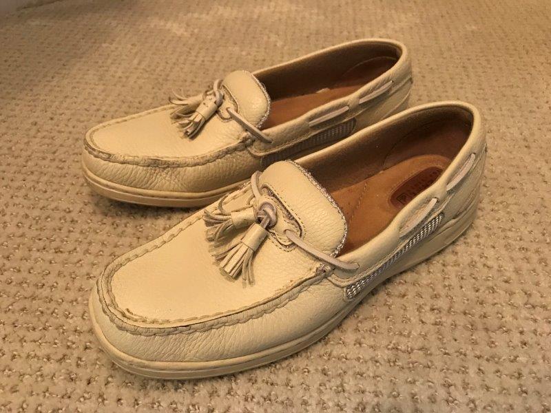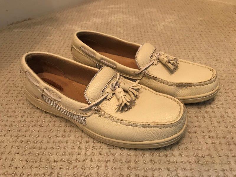 Size 7 1/2 Cream Leather. Great condition