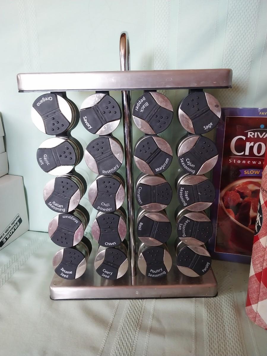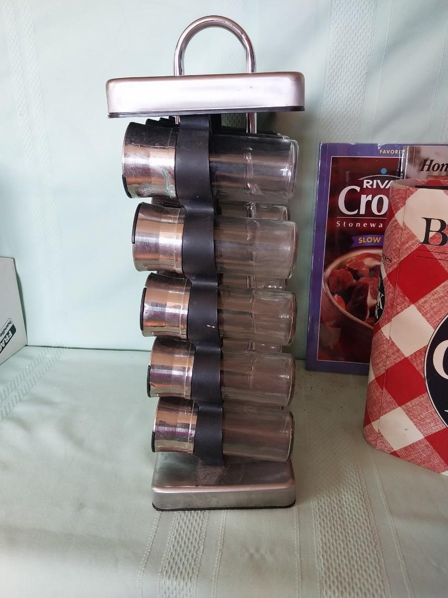 SPICE HOLDER & BOTTLES AND COOKBOOKS