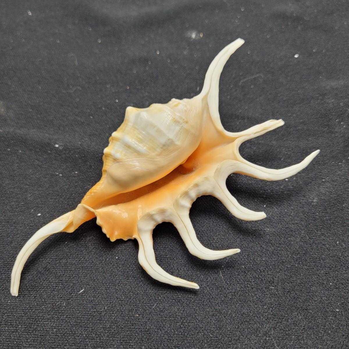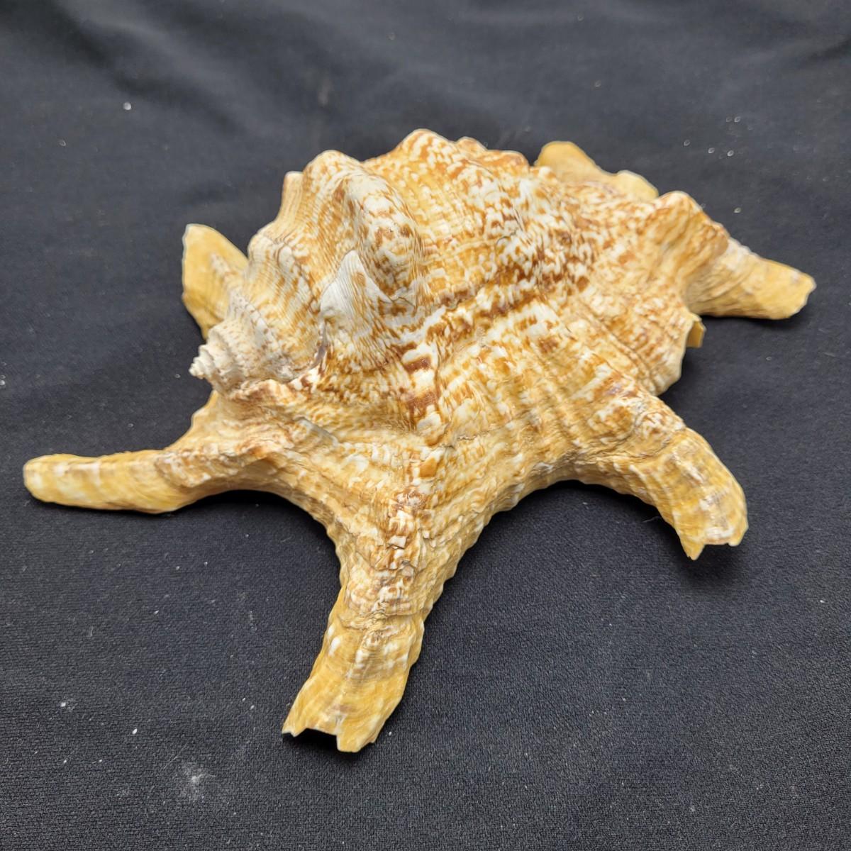 This lot includes what appears to be seven spider conch shells. The shells vary in size and shape but all appear to derive from spider conch. The largest shell measures 9" x 6.5" x 5"H and the smallest measures 5.5" x 3" x 1.5"H. There are many colors and shapes within these shells. See photos for more detail on individual items.
