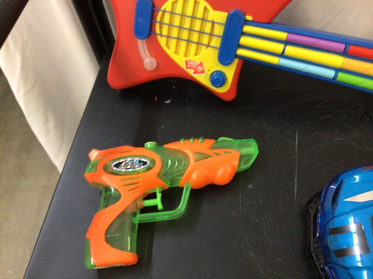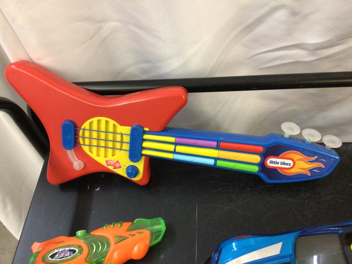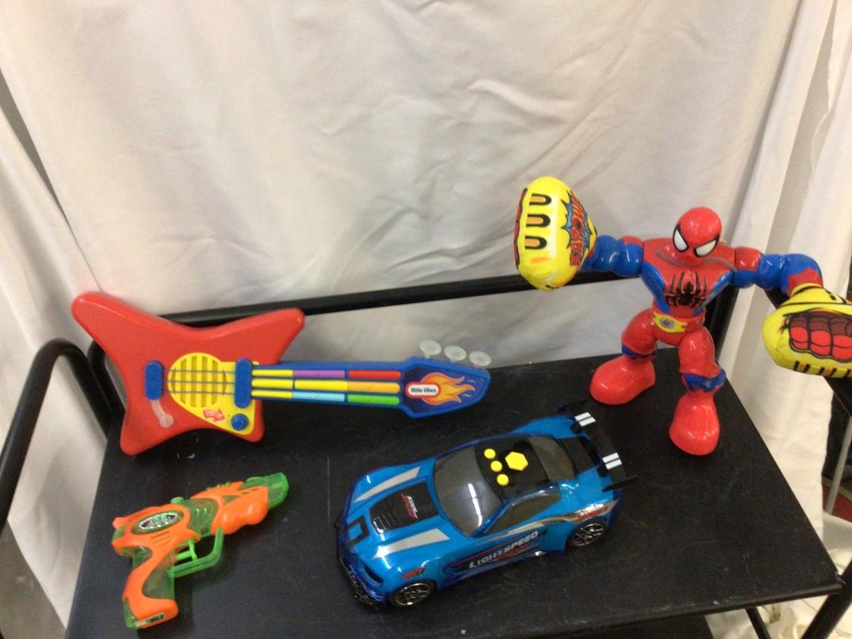 Spider Man, Light Speed Car, Little Tikes Guitar, Super Streamer Squirt Gun