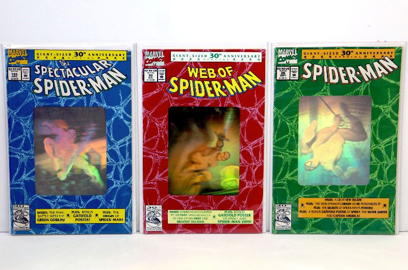 SPIDER-MAN 30th Anniversary HOLOGRAM Cover Comic Books Set Marvel Comics 1992
