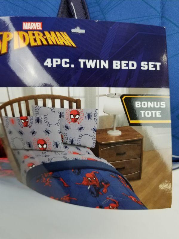Spider-Man 4pc Twin Bed Set with Bonus Tote - New