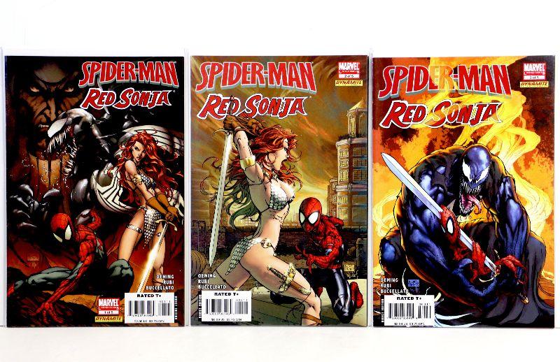 SPIDER-MAN / RED SONJA #1 #2 #3 Michael Turner Variant Covers 2007 Marvel/Dynamite Comics NM