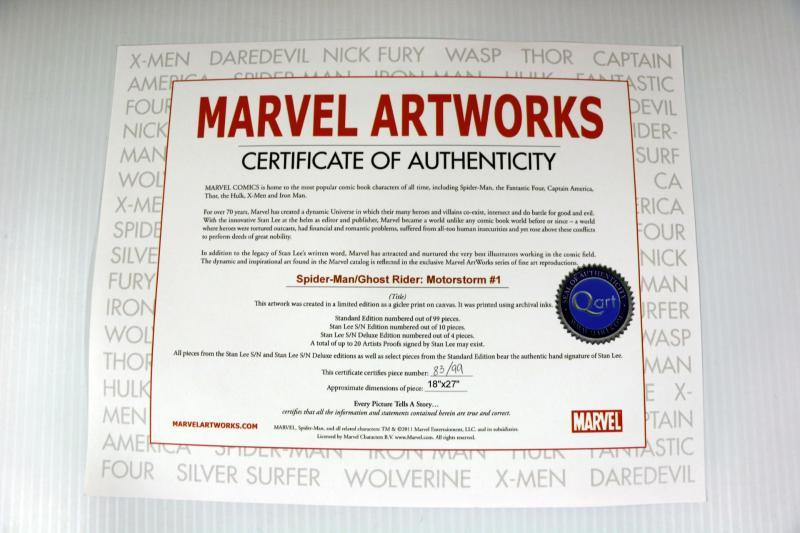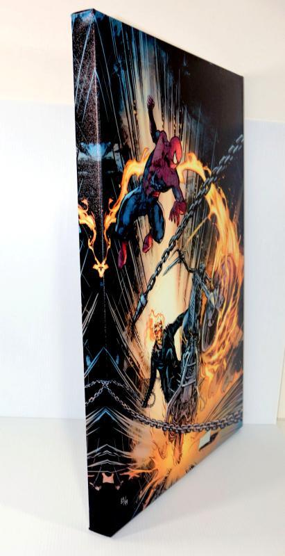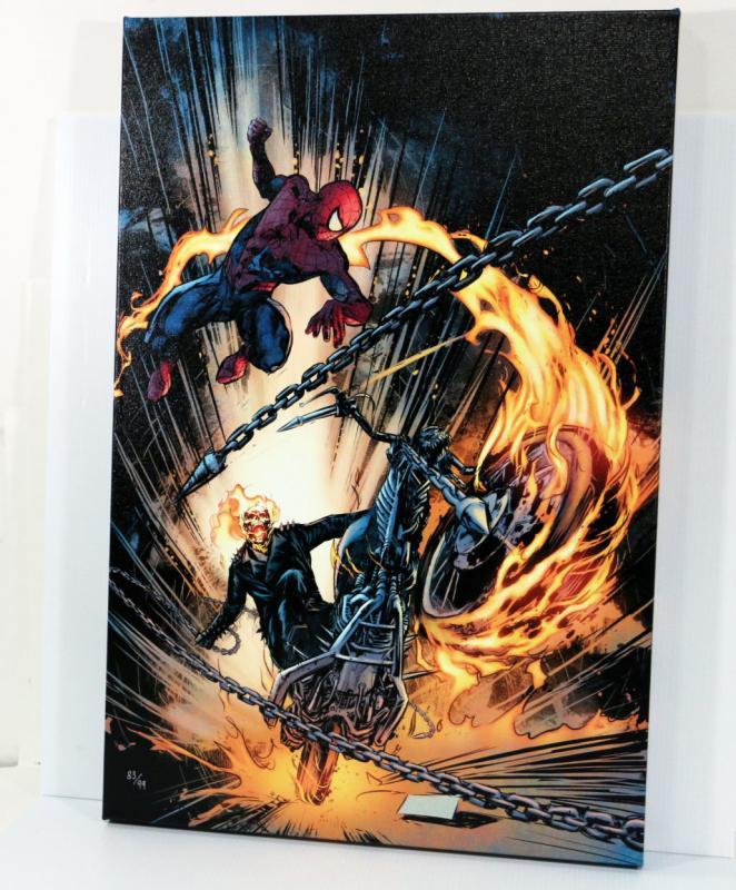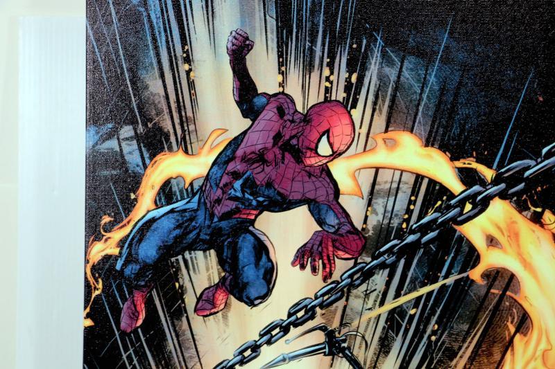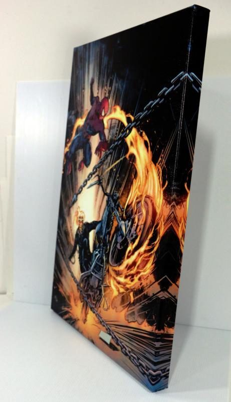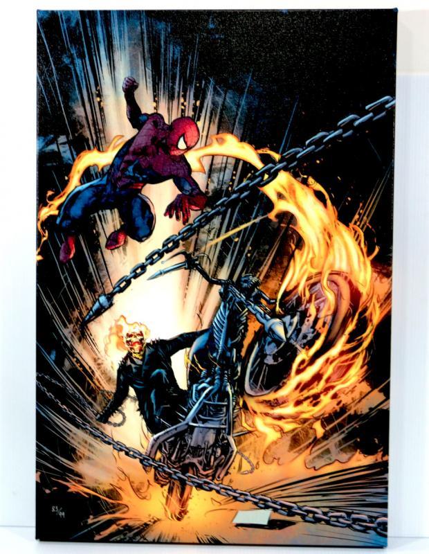 Super cool art on canvas by Marvel Artworks featuring Spider-Man/Ghost Rider: Motorstorm #1, comes Mint/New with COA, 18" x 24" stretched on frame and ready to hang - Collector's Item - see pictures