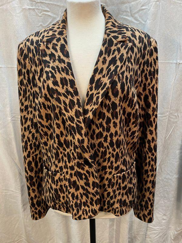 Spiegel leopard print jacket. Short length, great for office or out on the town. Good condition. Size 18.