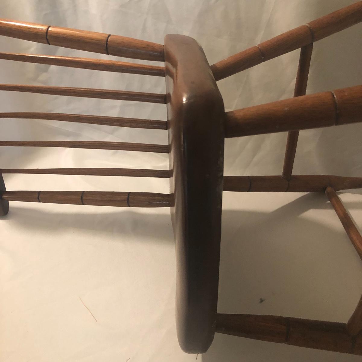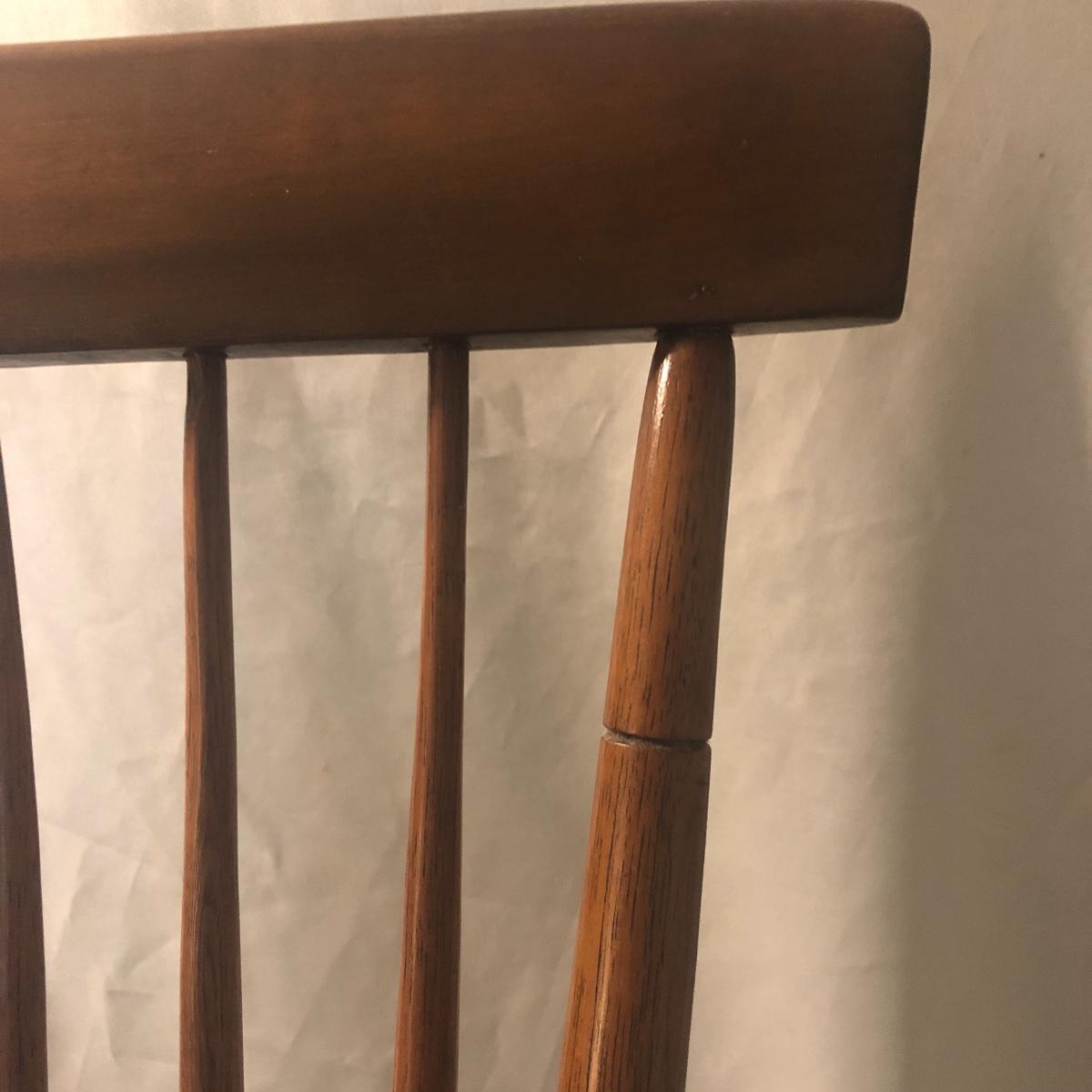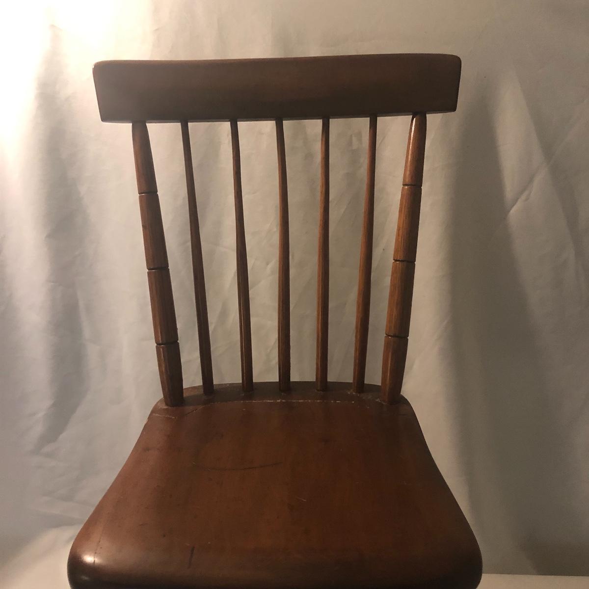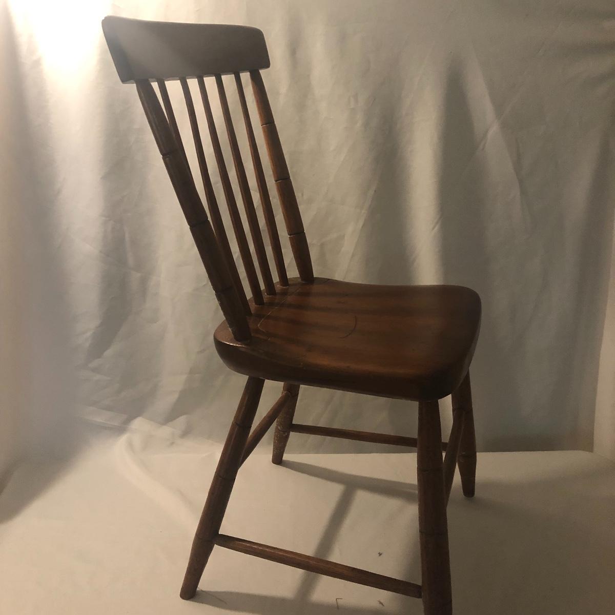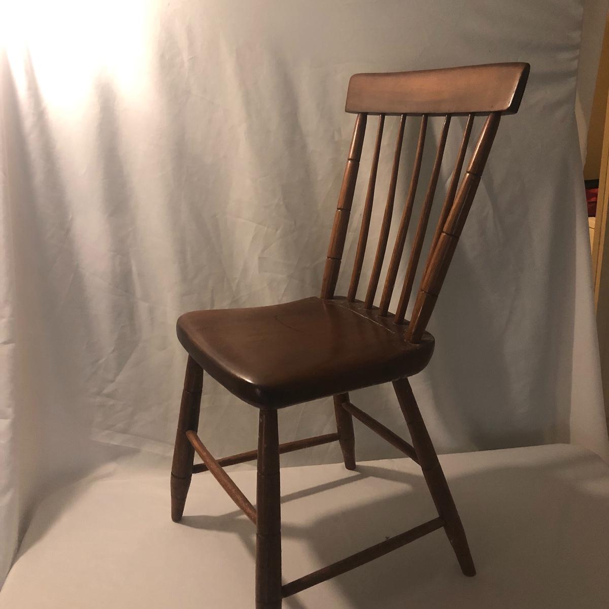 Sturdy, well-constructed spindle back chair measuring 16.5” x 16.5” x 33”. Seat dimensions are 14.5” x almost 15” x 17.5”. Local pick up only.