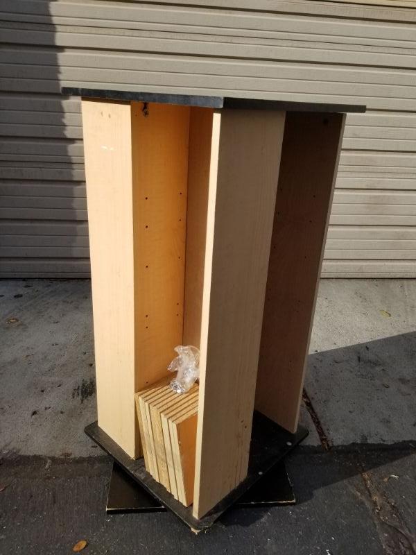 Spinning DVD/CD Tower with Adjustable Shelves, Woodgrain & Black