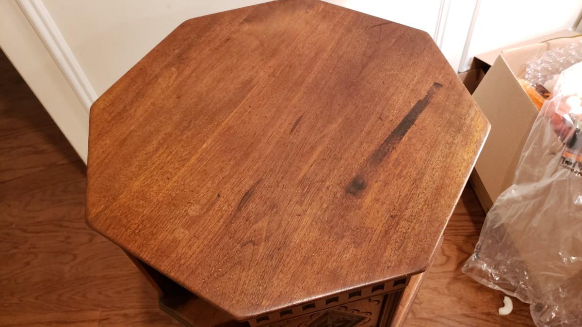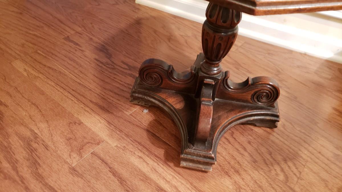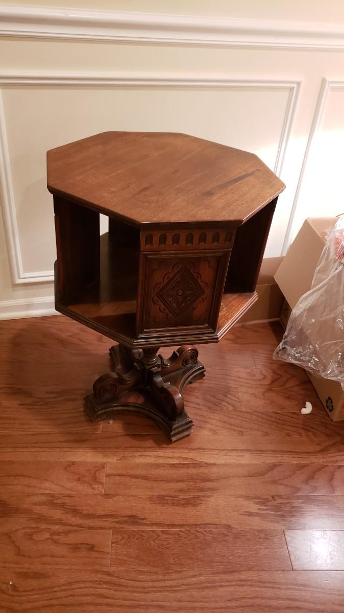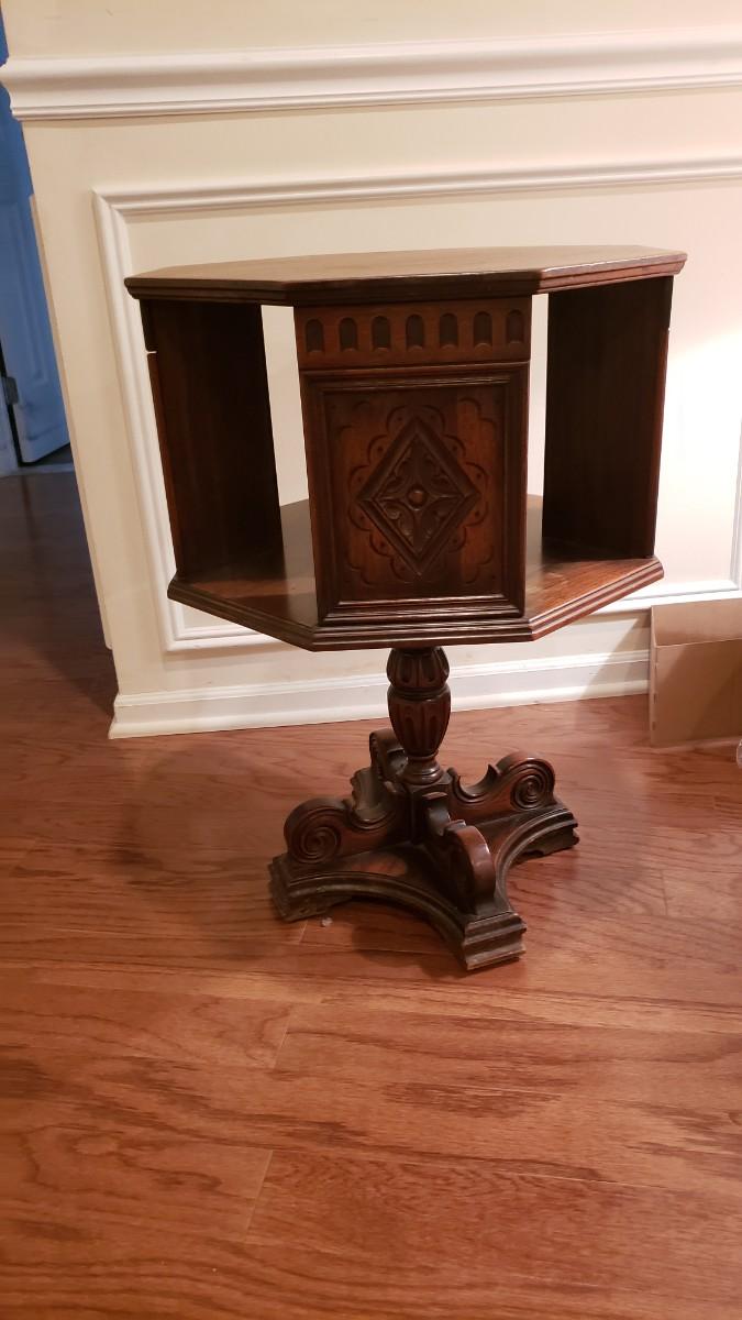 27 inches tall by 19 inch diameter. You can turn and spin this table.