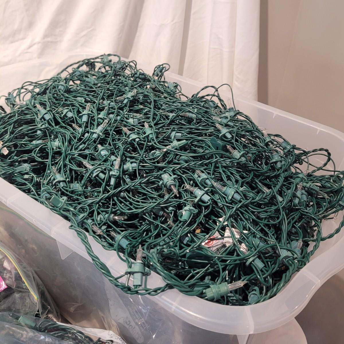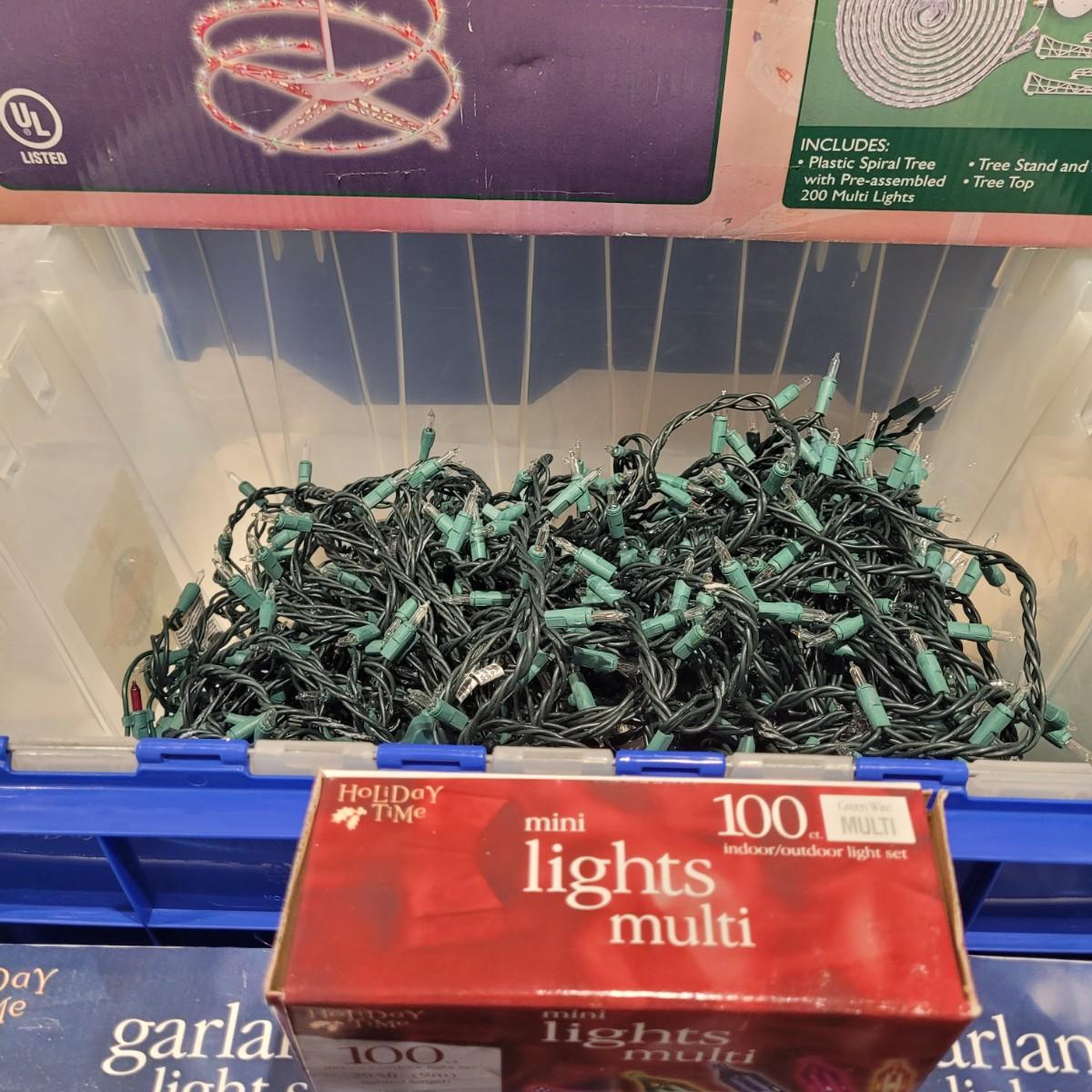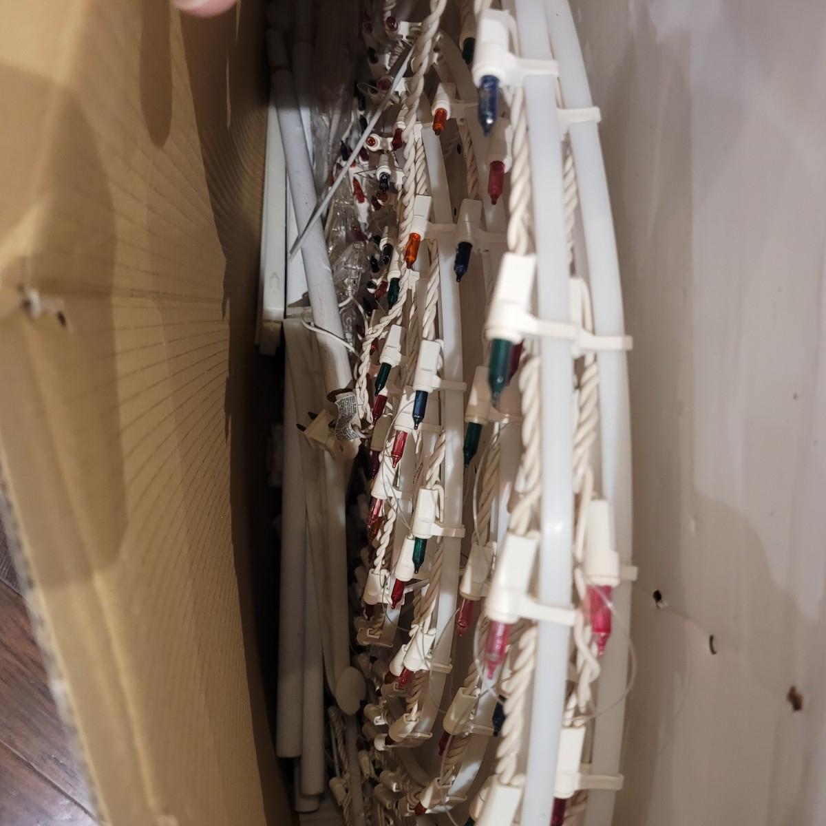 This lot of Christmas decor includes a 6"™ spiral tree with multicolored lights, in addition to a variety of white and multicolored string lights. Lights turn on when plugged in. Shipping available.