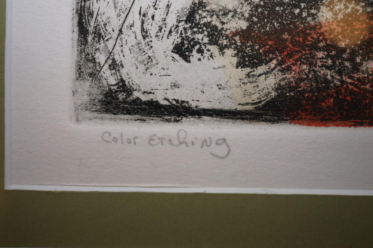 colored etching by Joyce Gust.