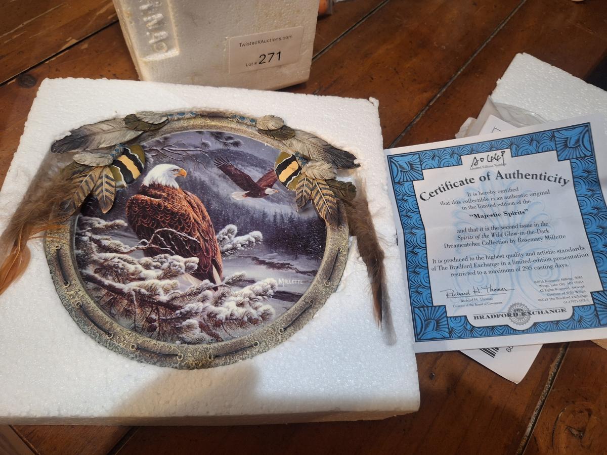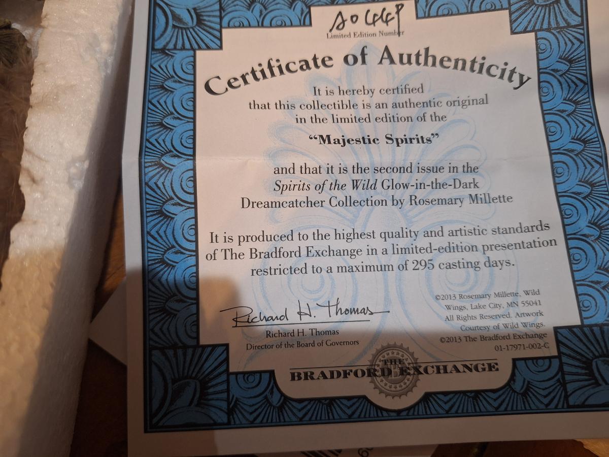 "Spirits of the Wild Glow-in-the-Dark Dreamcatcher Collection" by Rosemary Millette, titled "Majestic Spirits" from The Bradford Exchange. accompanied by a Certificate of Authenticity