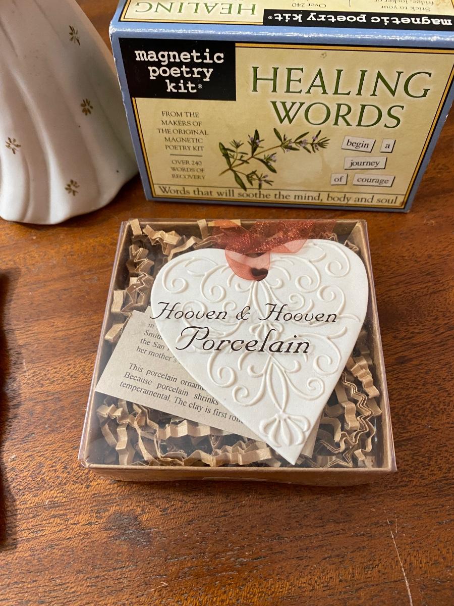 Spiritual Affirmation Lot with Quotes, Magnets, Ornament and Angel Music Box. Music box does work. Everything in good condition, magnet set seems to be full.