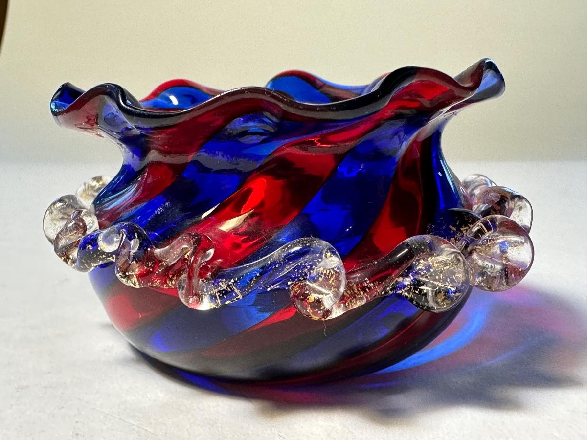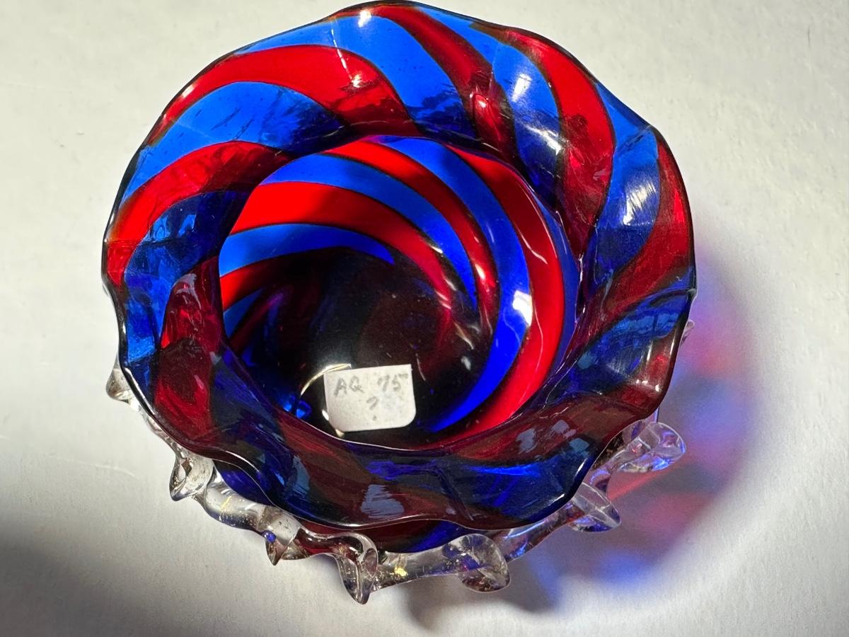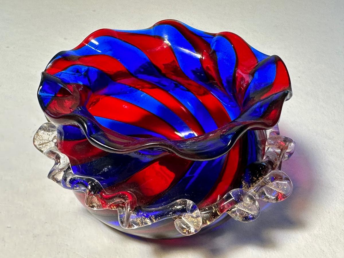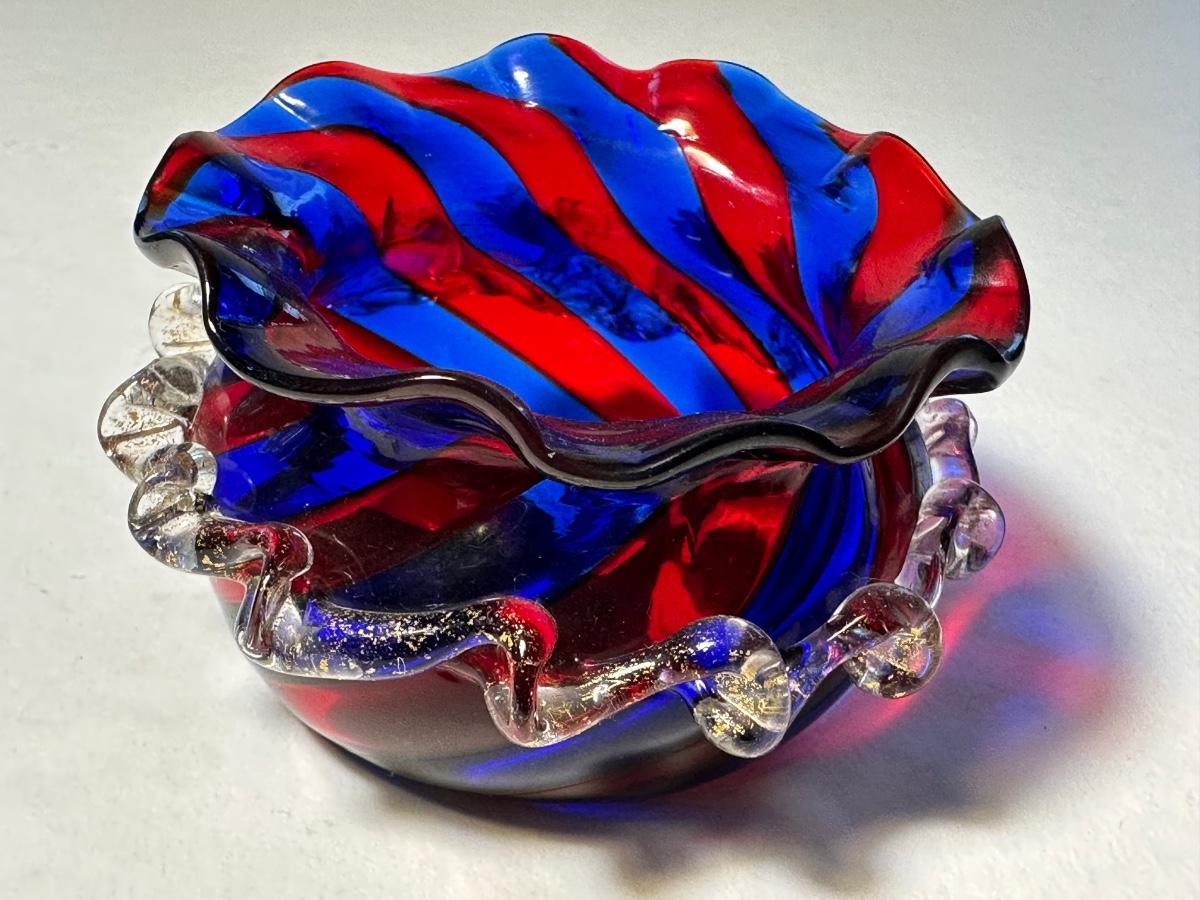 Spittoon Shape Deep Red and Blue Strip Sal