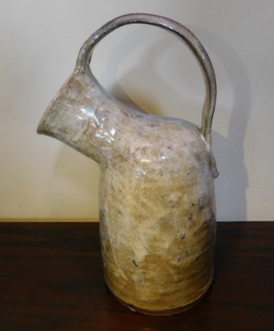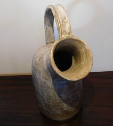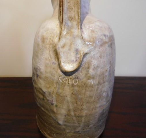 Splash Foam Glaze Stoneware Pottery Bent Neck Water Pitcher Marked COLO Below Handle very appealing with a primitive appearance.