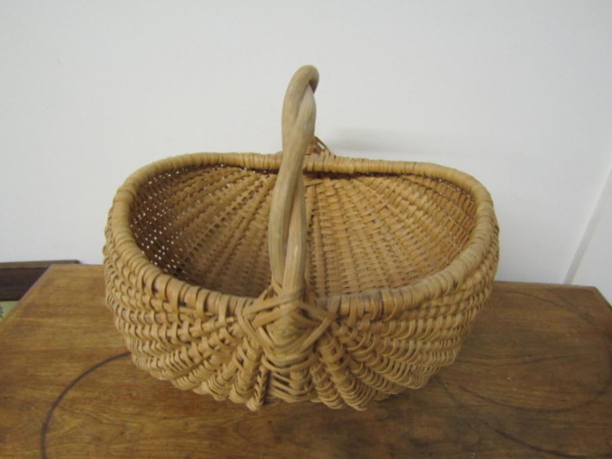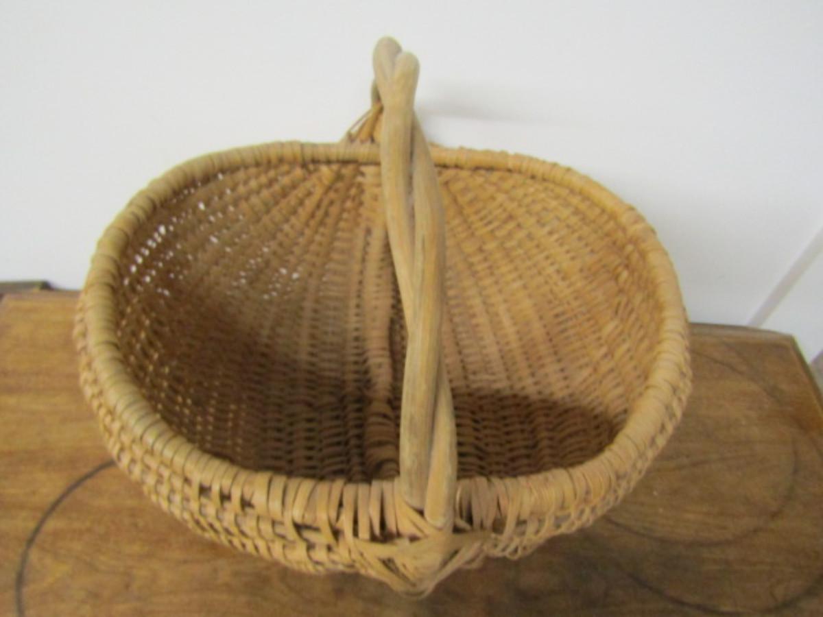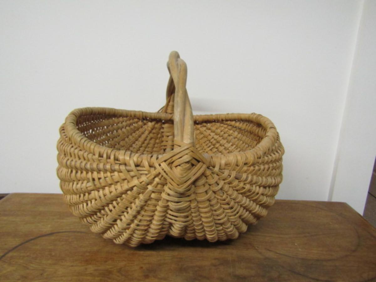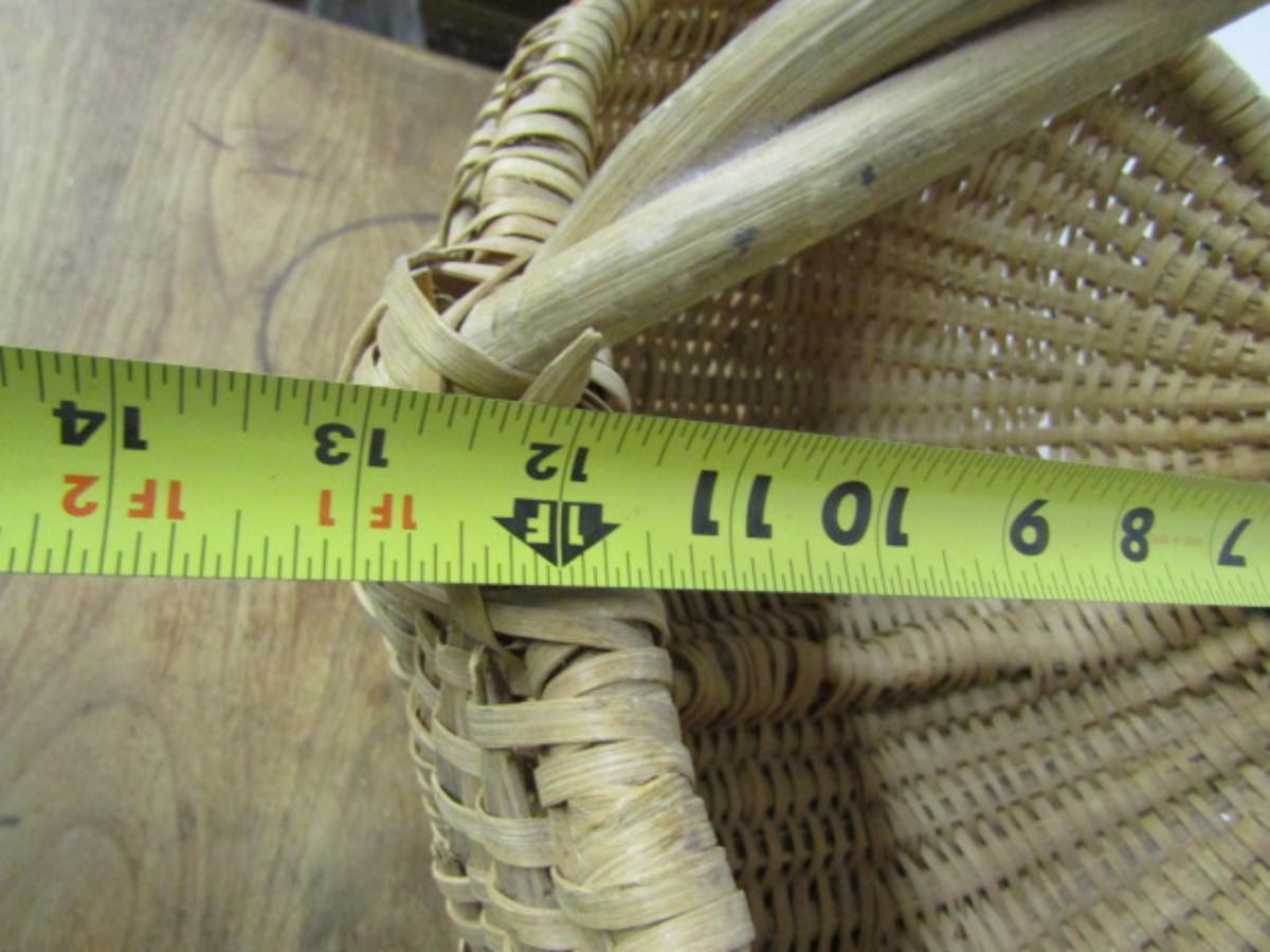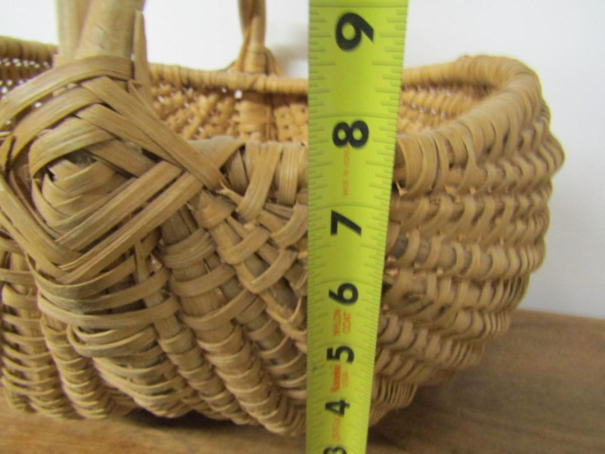 Splint Buttocks Basket with Twisted Branch Handle and Eye of God Woven Detail