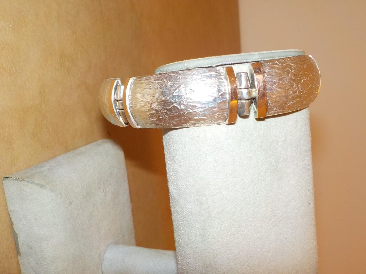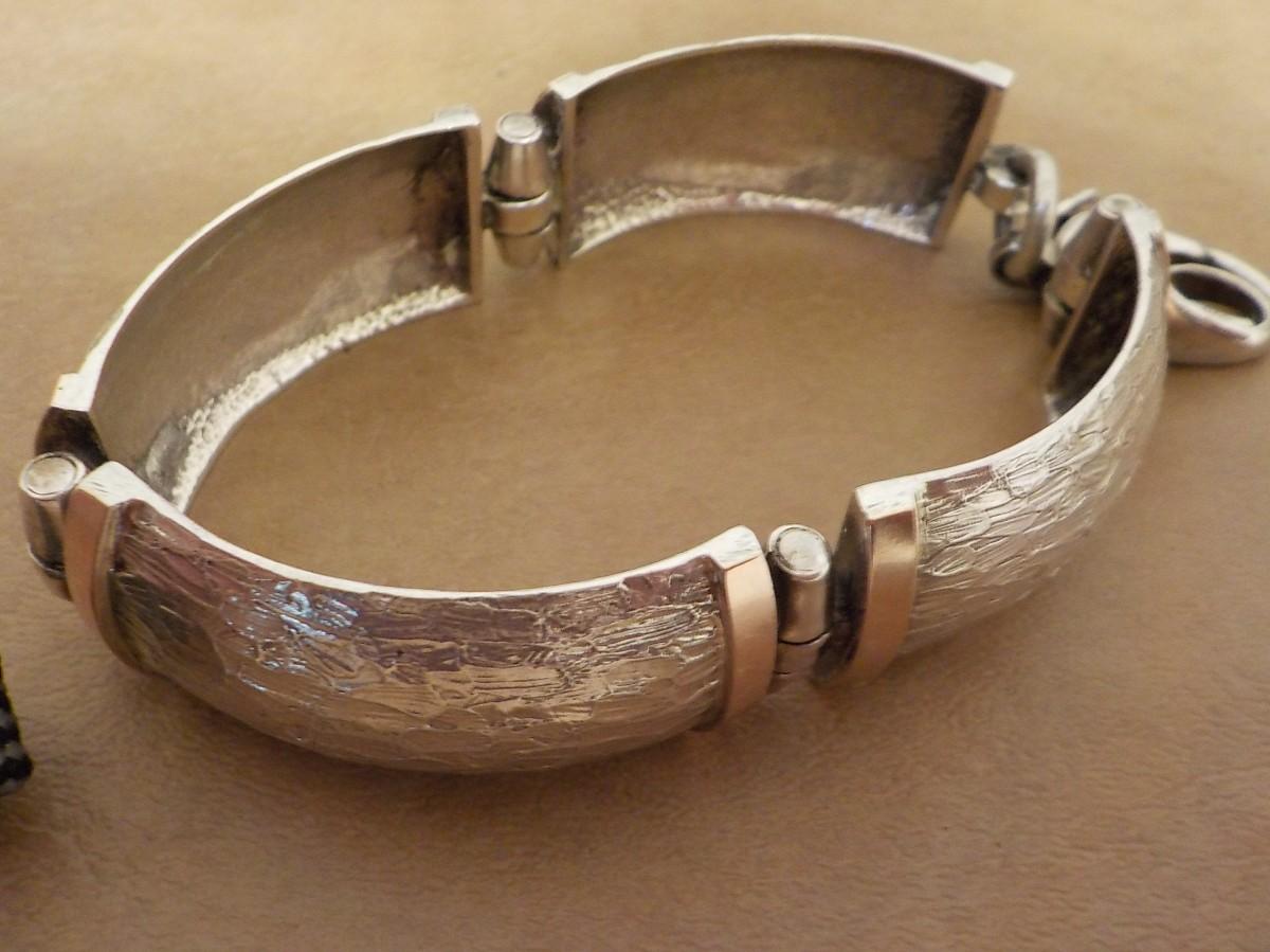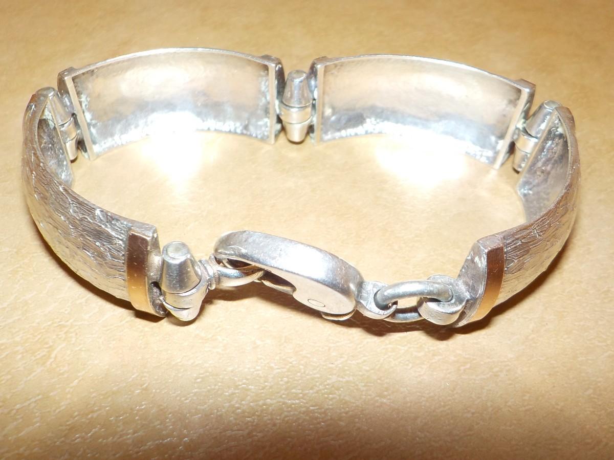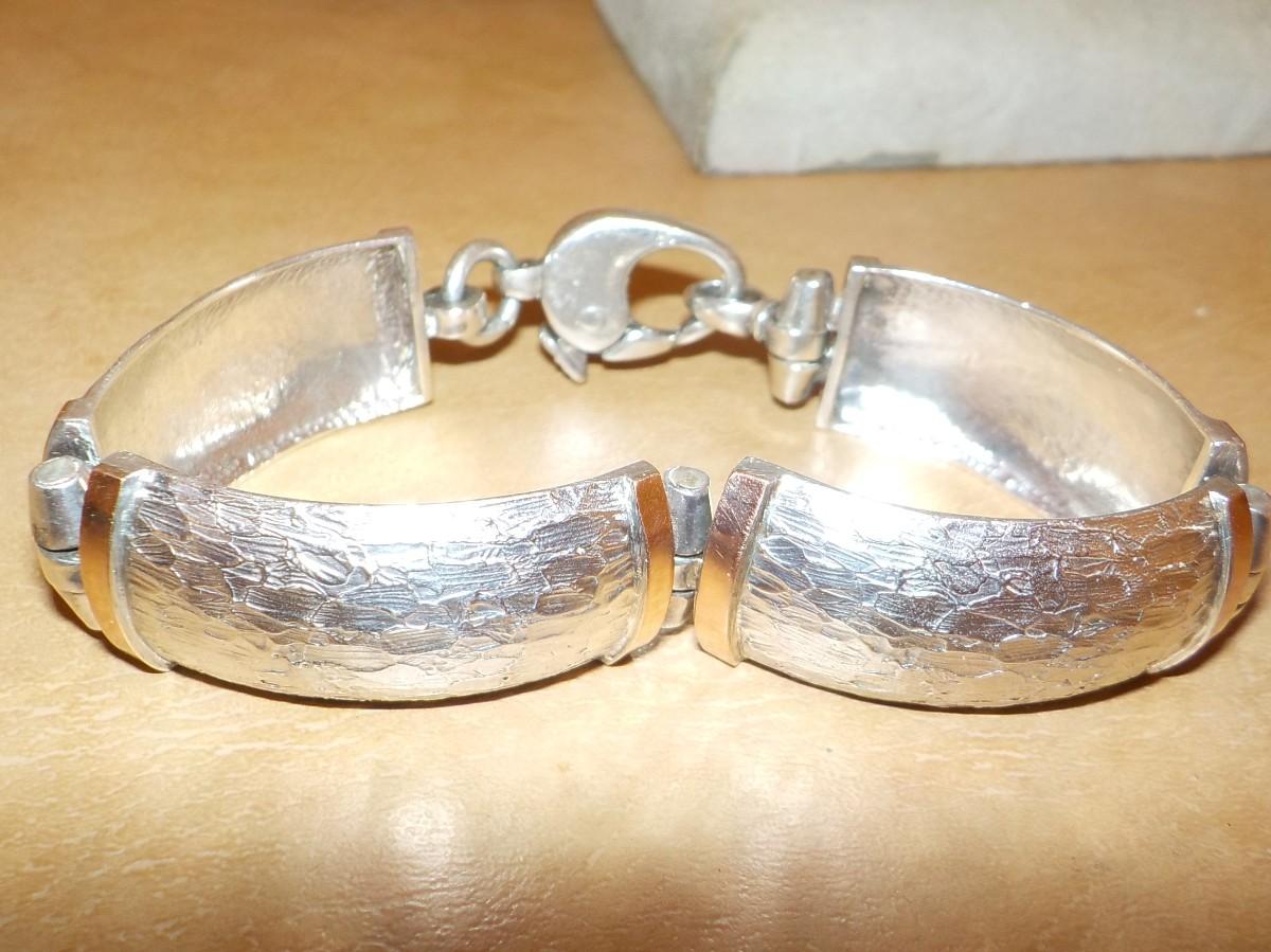 Split Cuff Sterling Bracelet with gold trim.