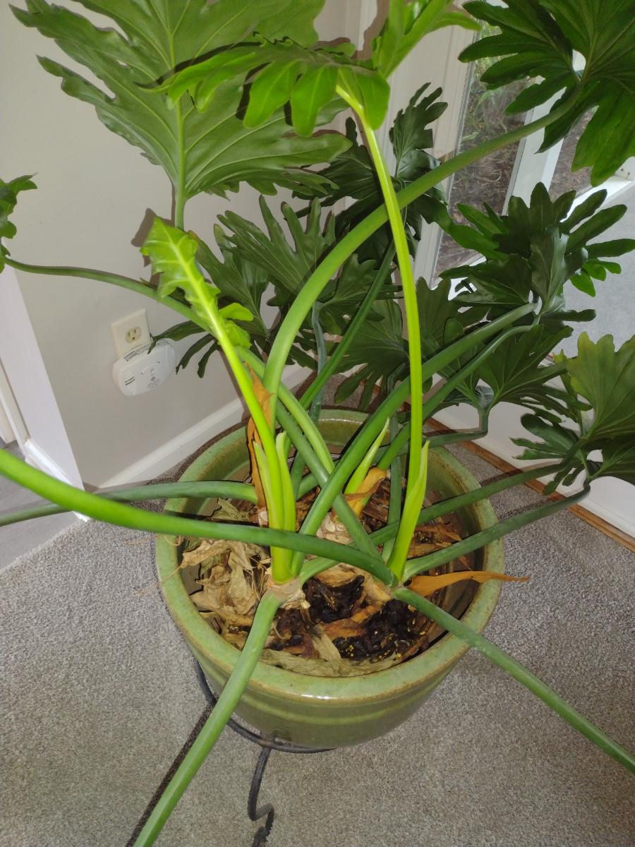 Split-leaf Philodendron Live Plant in Glazed Ceramic Pot and Metal Plant Stand