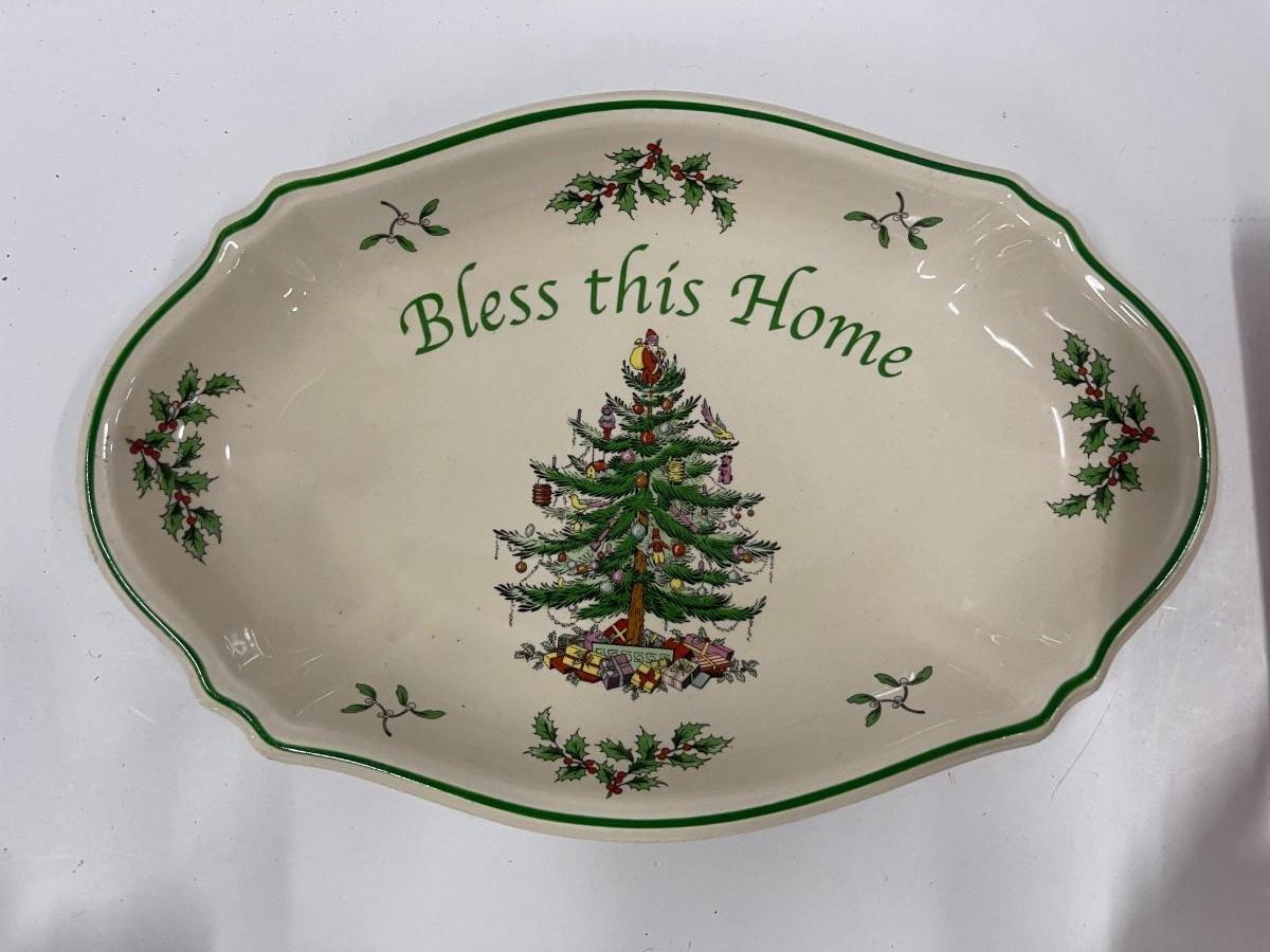 Spode Christmas Tree platter, Bless This Home. Excellent condition. 11" long x 7".