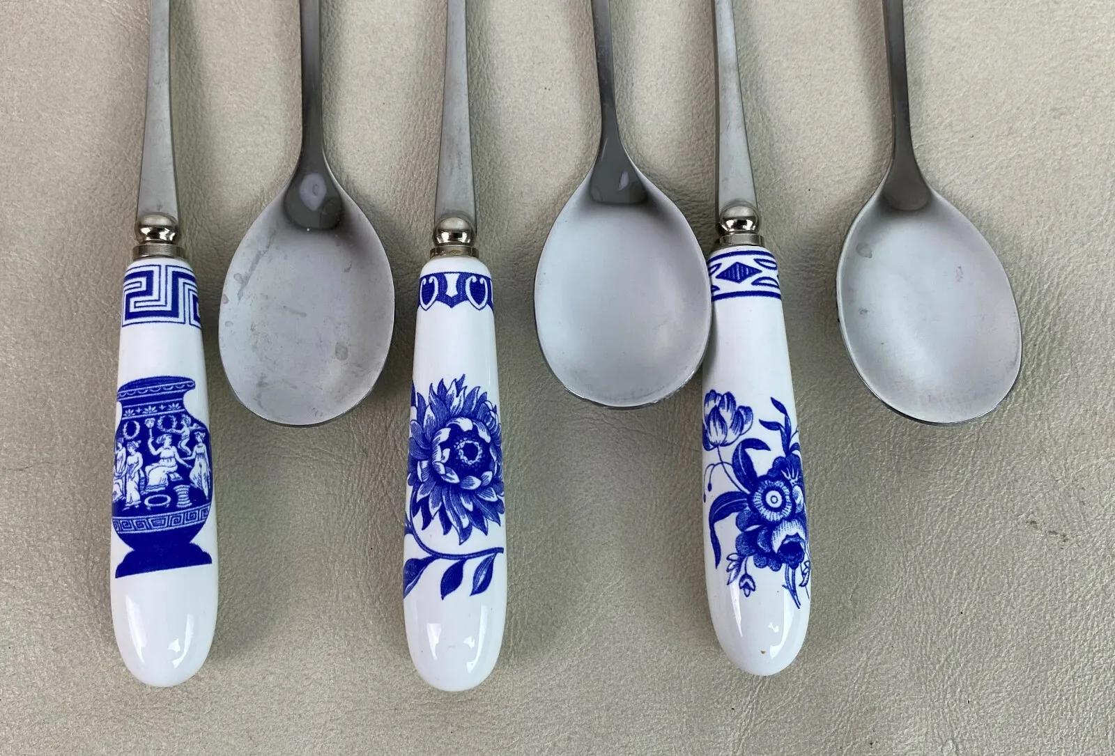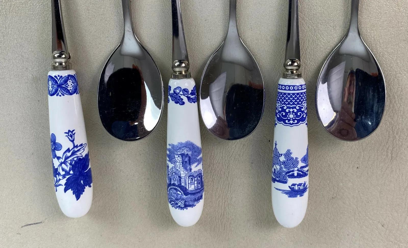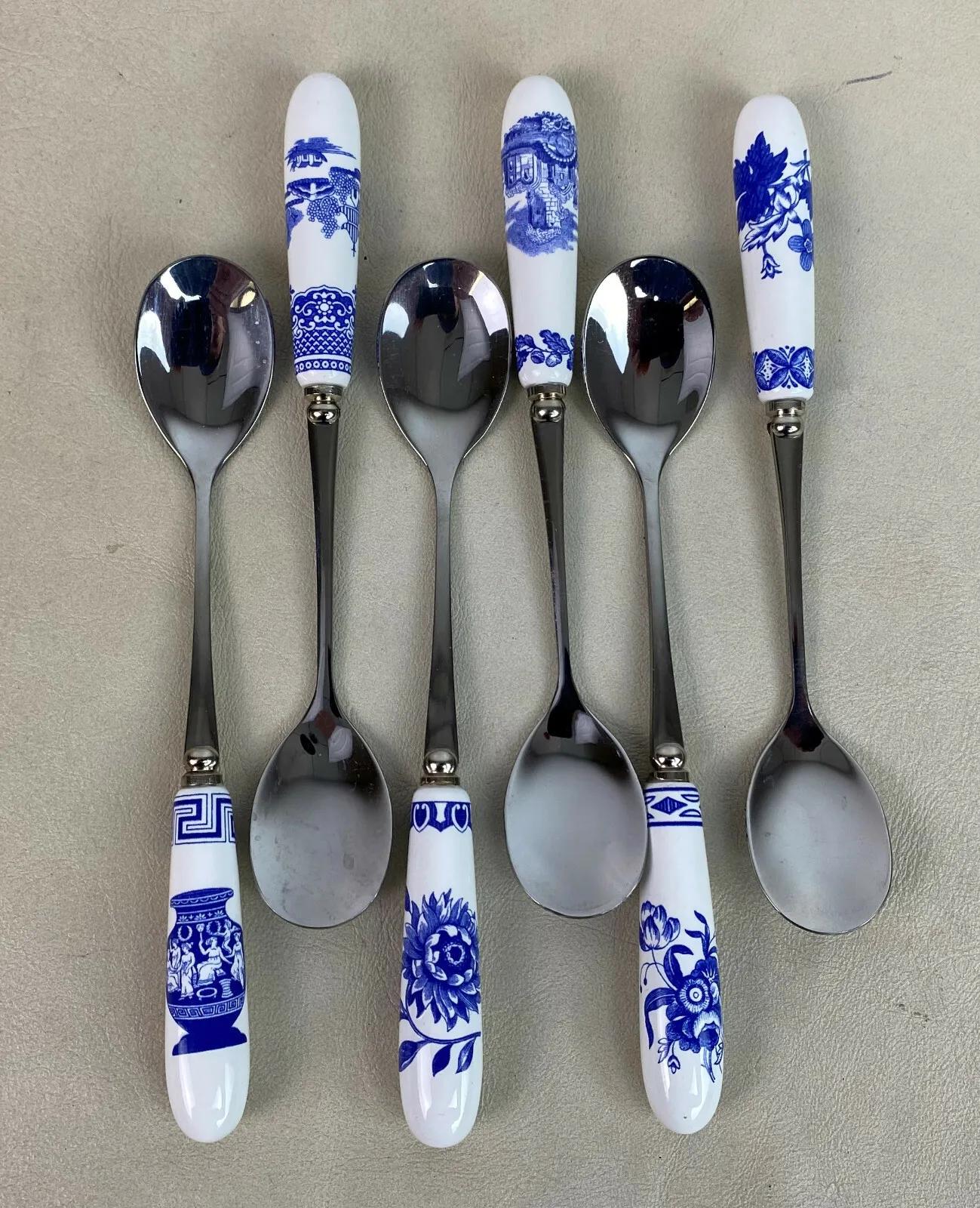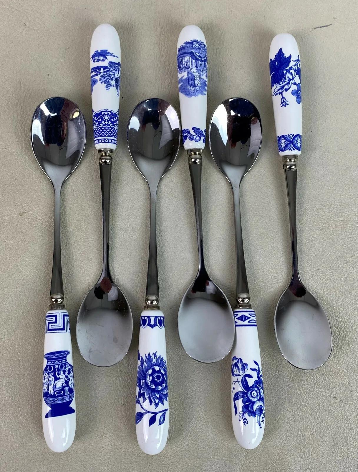 Excellent condition on this set of six(6) Teaspoons from the Spode Blue Room Collection..6" long...Featuring Spode archival patterns that were displayed in their Blue Room...Blue and white transferware...Stainless steel and fine procelain.