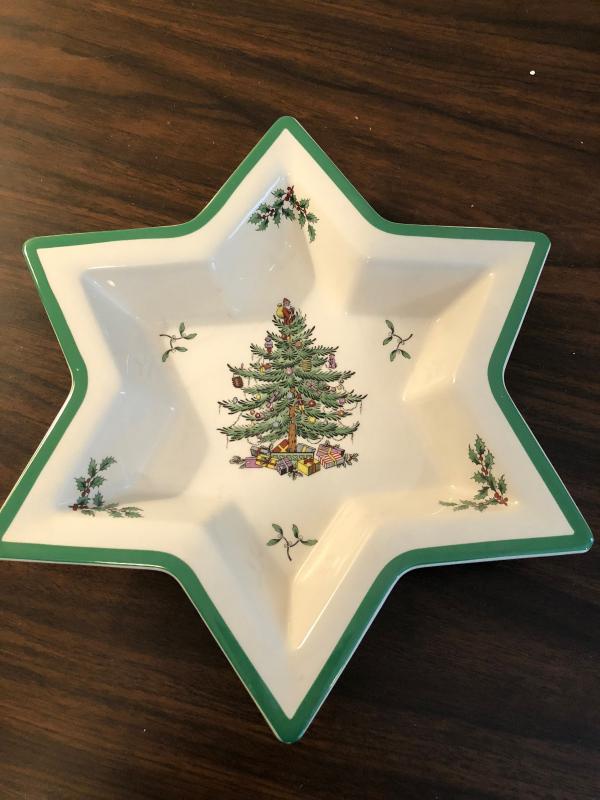 12" Christmas Tree dish from Spode in England...Very good condition on this six-pointed star for your holiday entertaining....