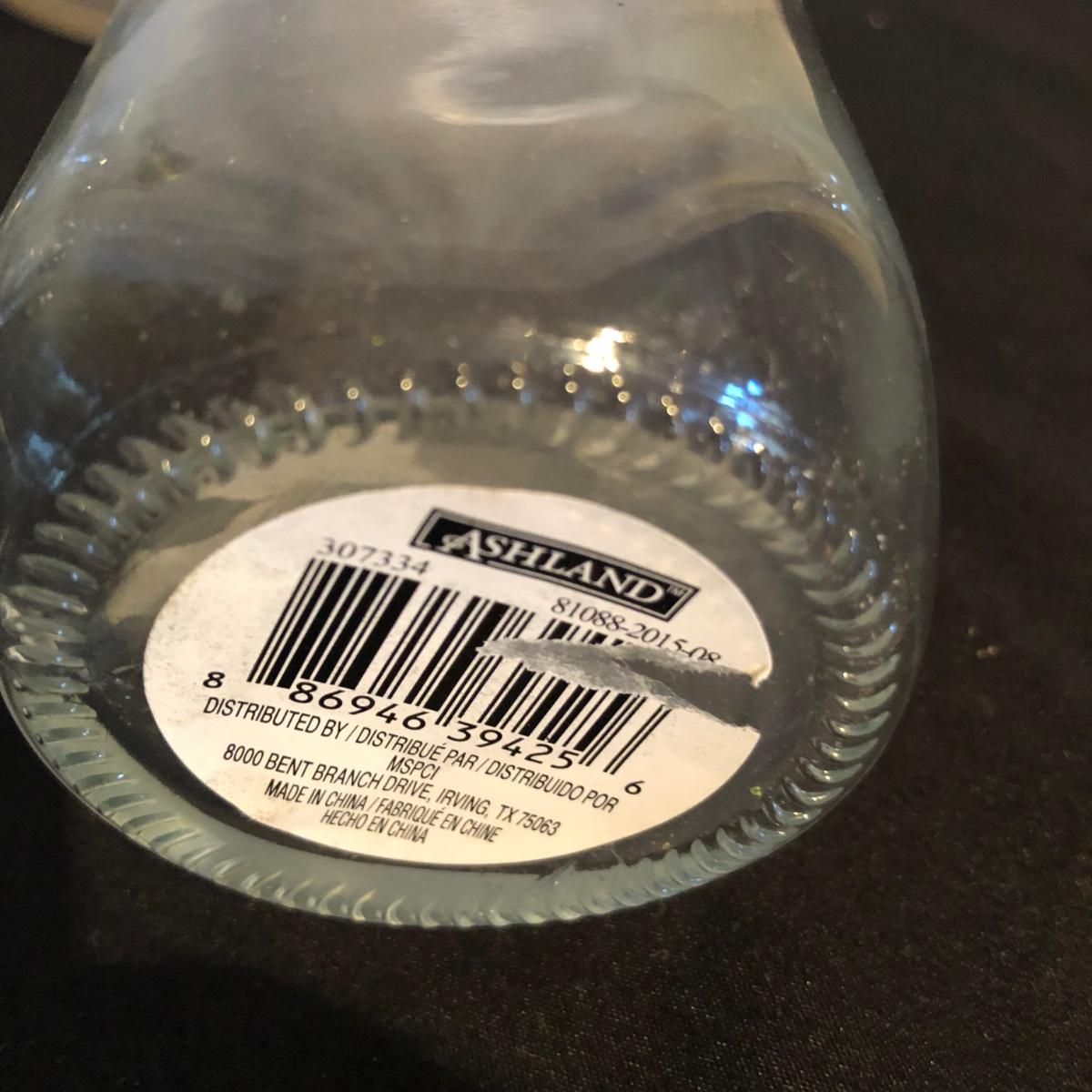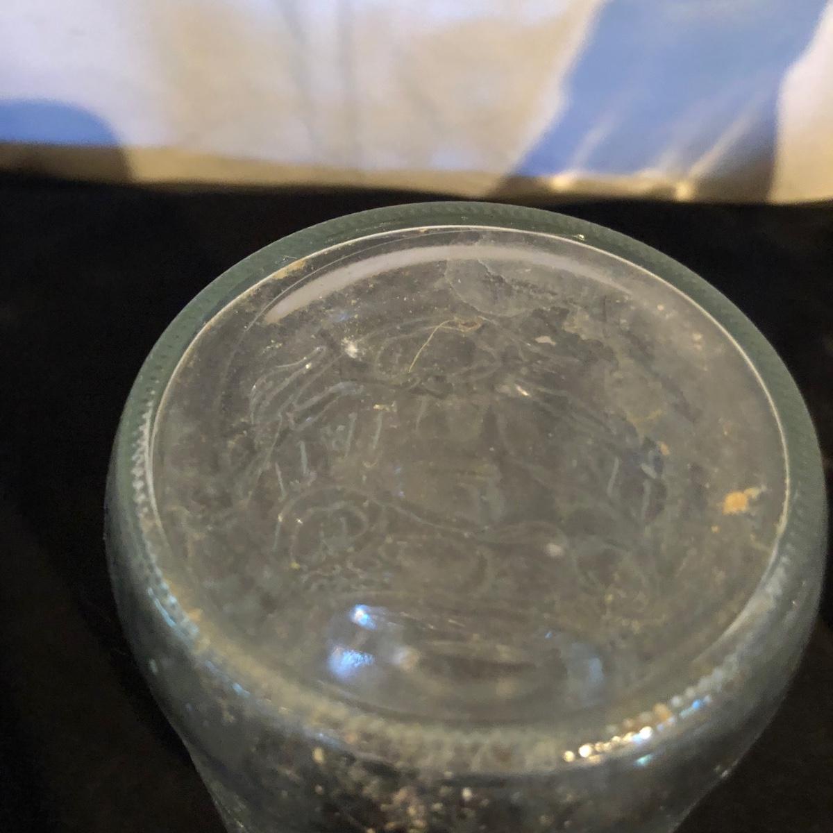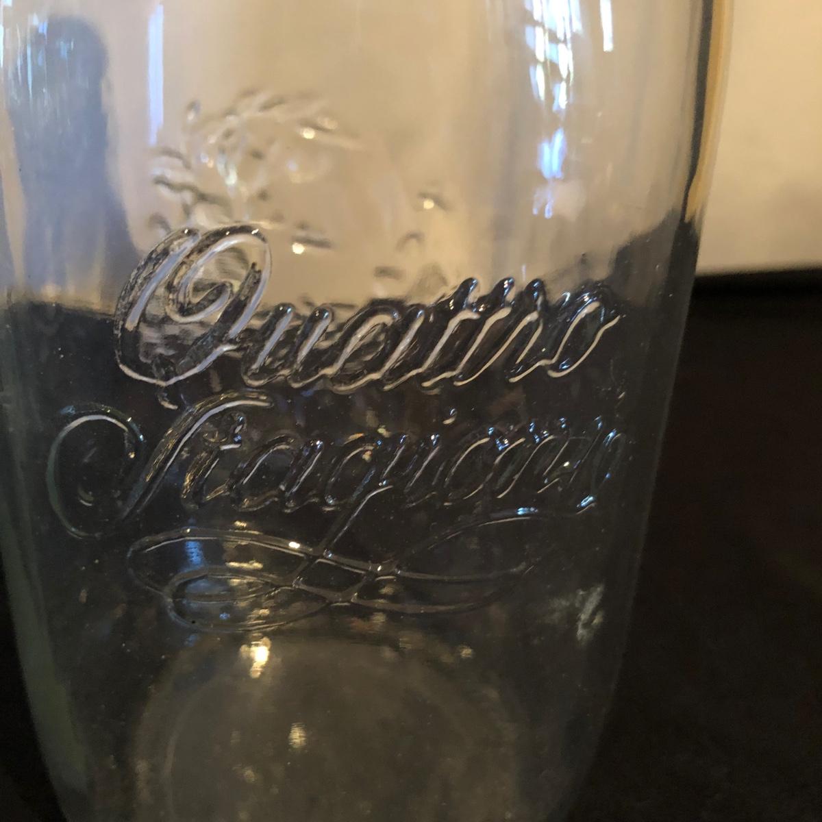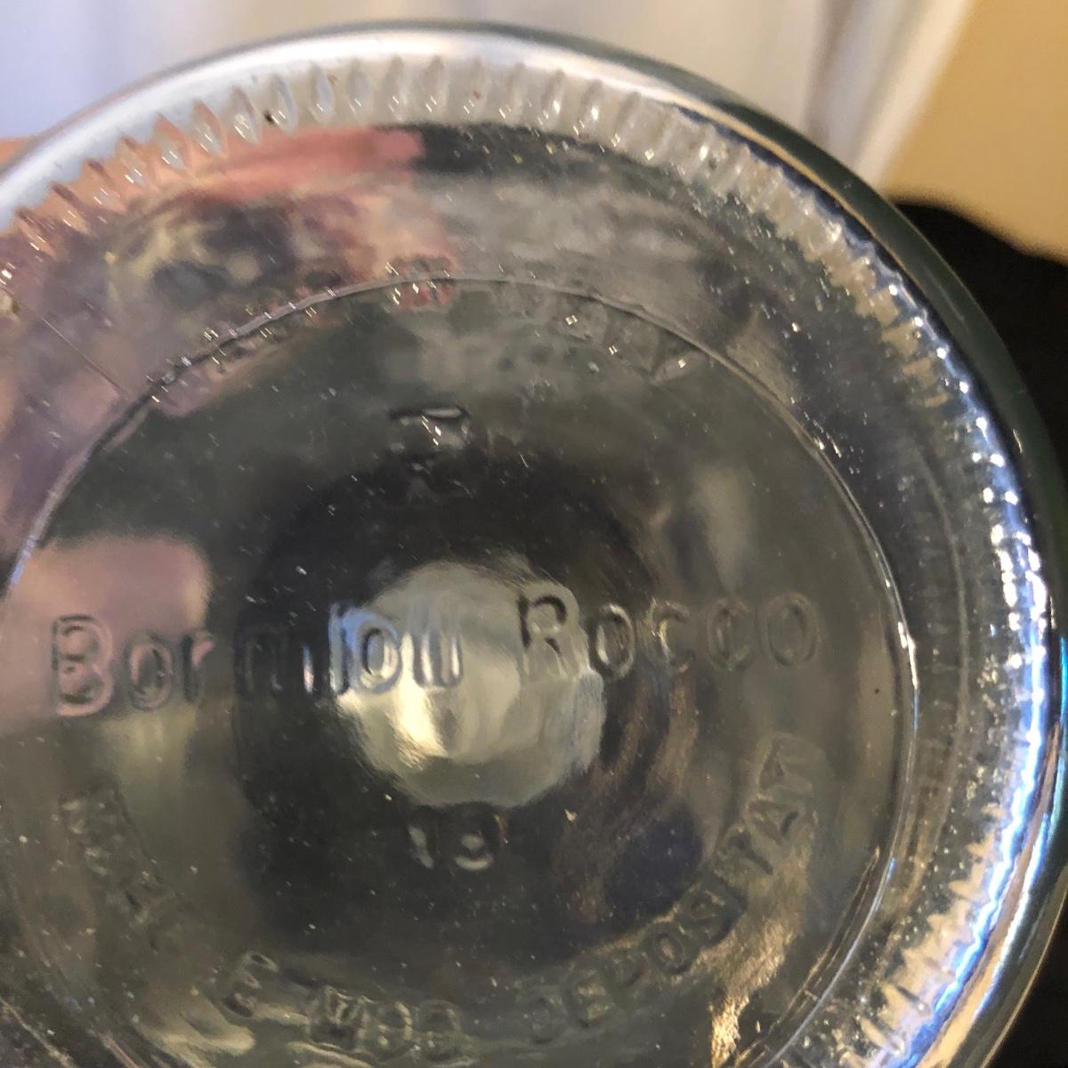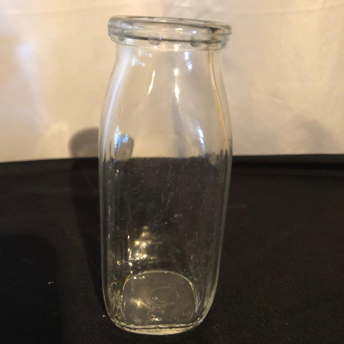 Lot includes a ceramic Spode Chivas bottle, three milk bottles, Italia jar and a Bormioll Rocco bottle. Also includes is a glass dental floss dispenser. Spode bottle measures 4.5”D x 9” tall.