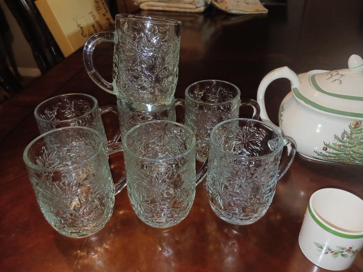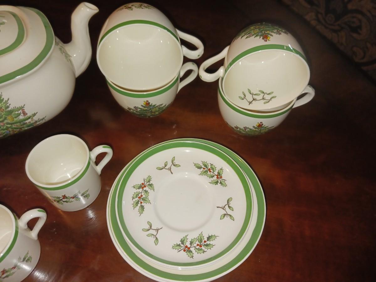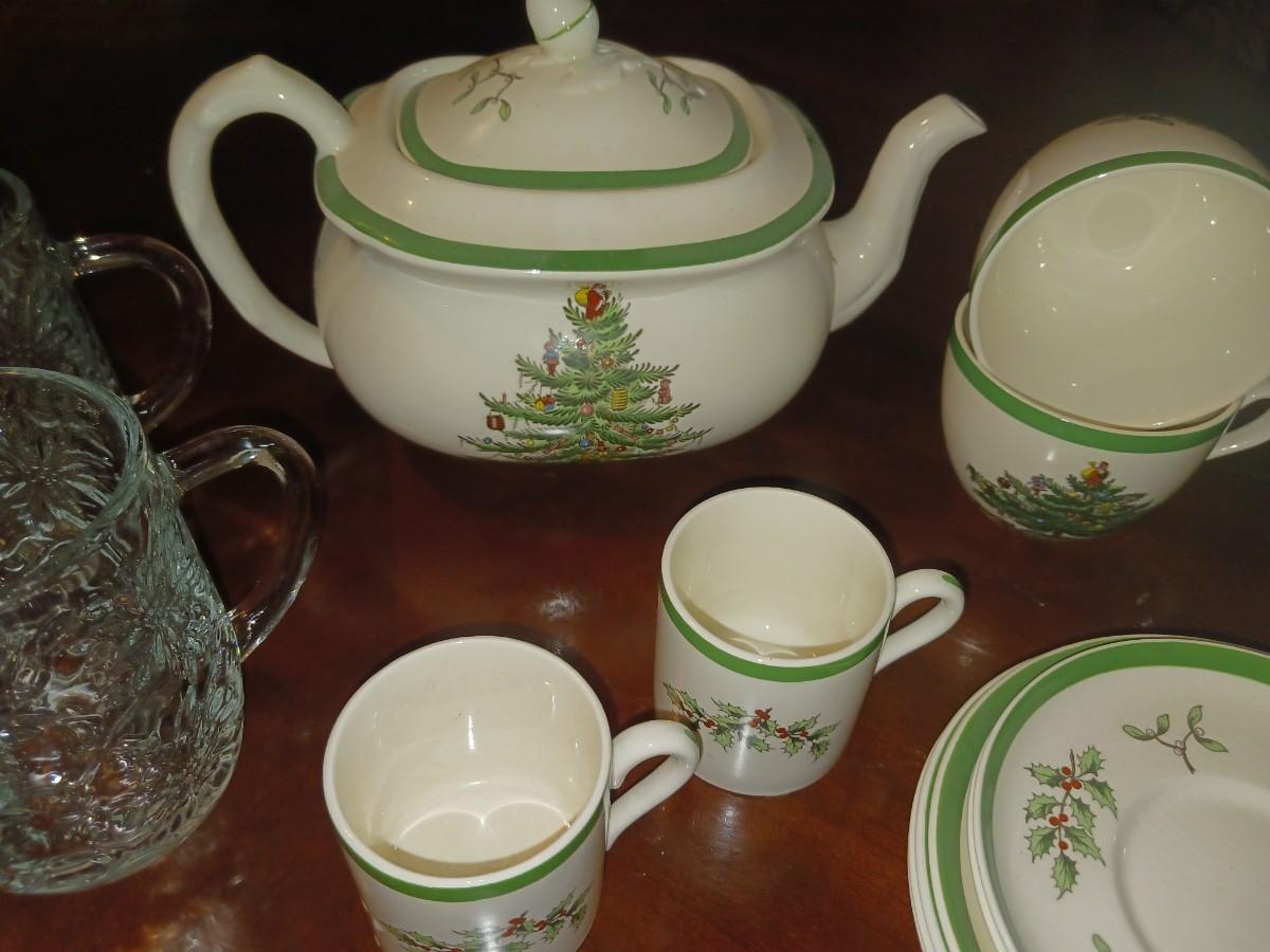 SPODE CHRISTMAS TEA SET AND GLASS MUGS