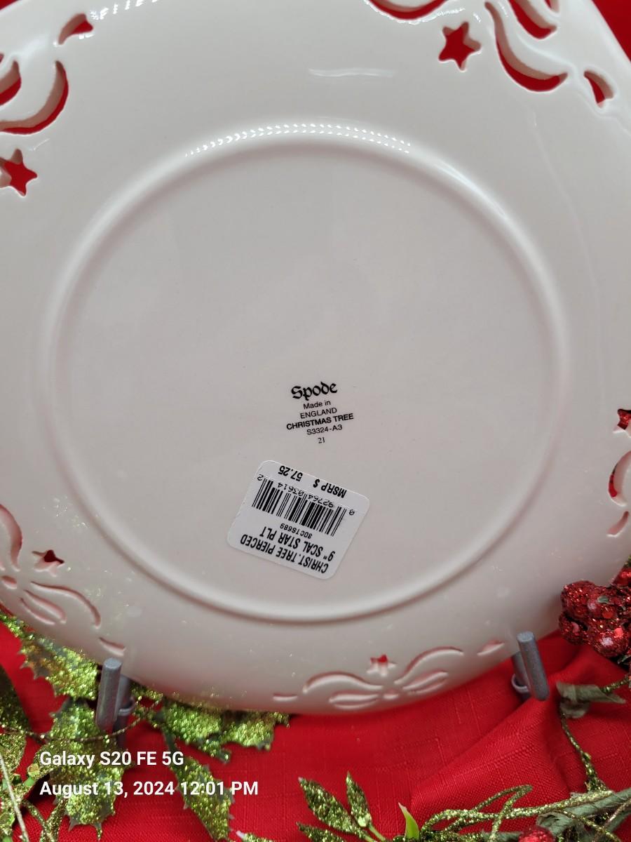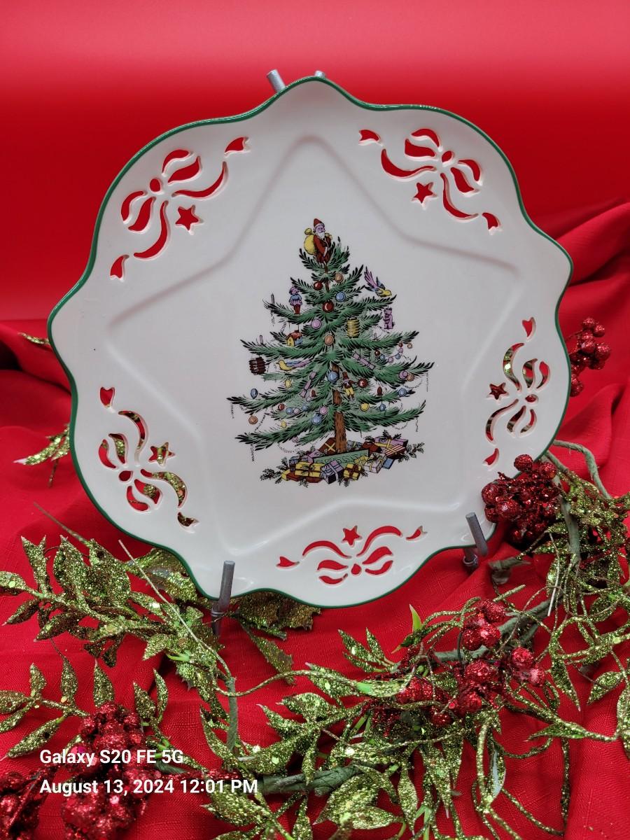 9 inch diameter plate with pierced edge with bow design. Made in England.