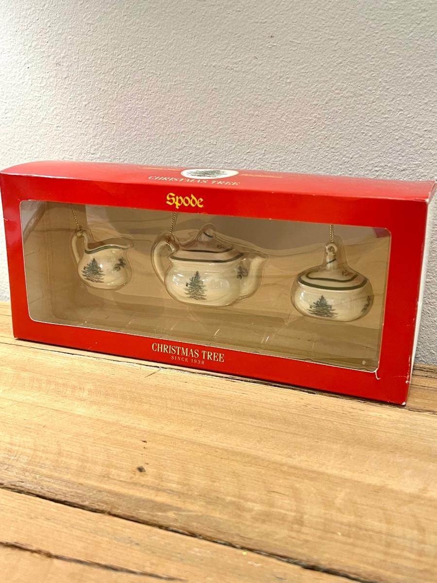 SPODE ~ Christmas Tree ~ Teapot, Sugar, & Creamer Ornaments