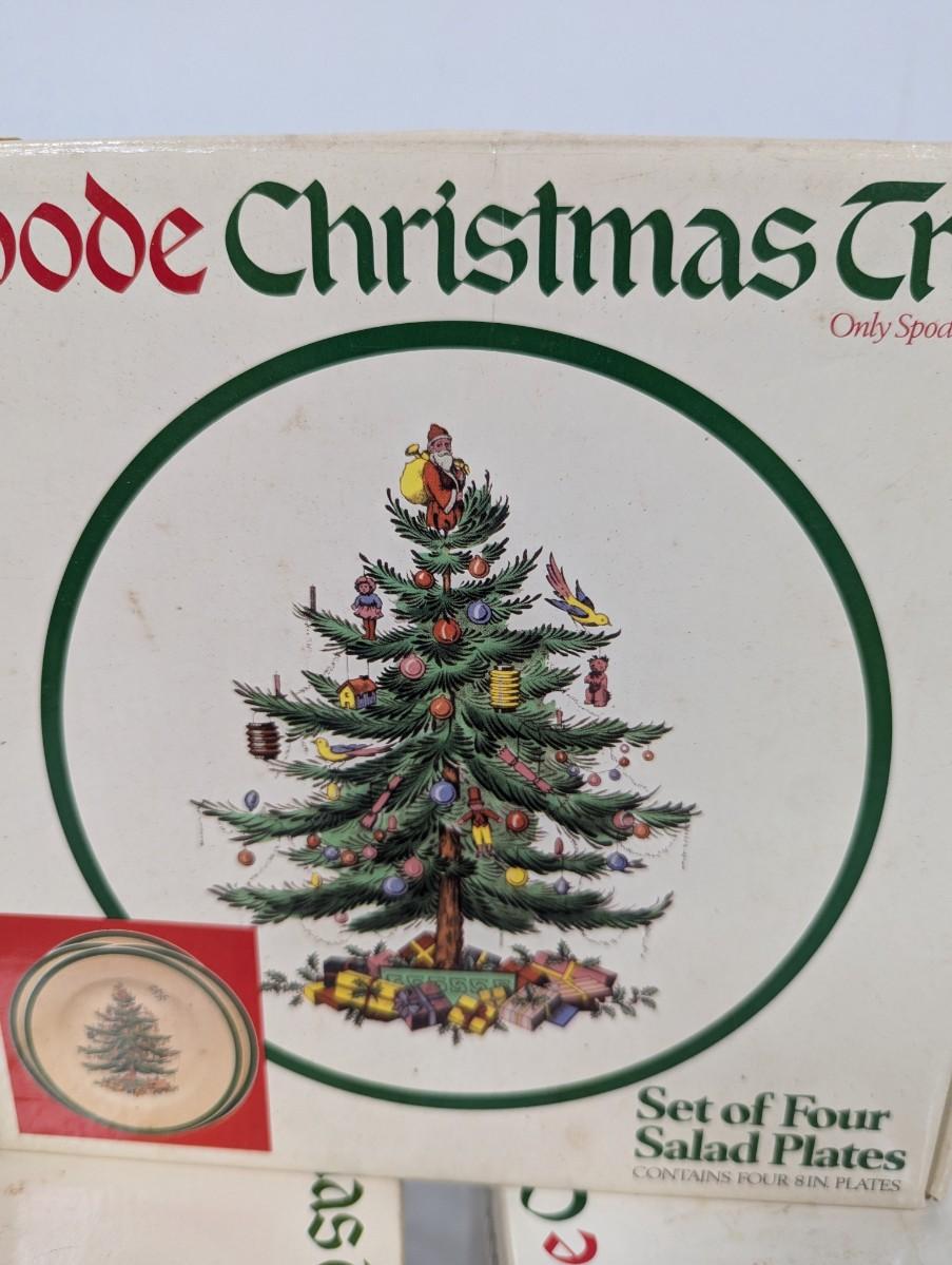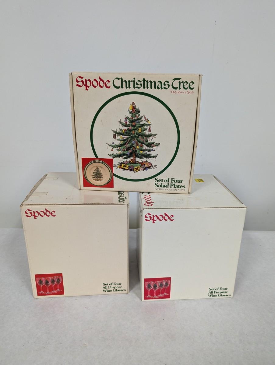 Spode Christmas Tree Wine Glasses (8) & (4) Salad Plates