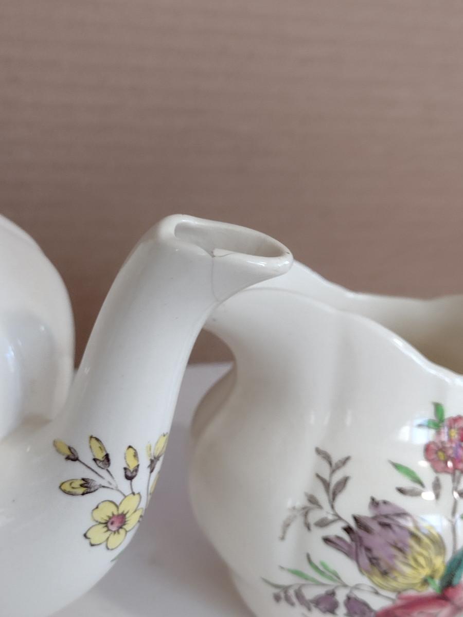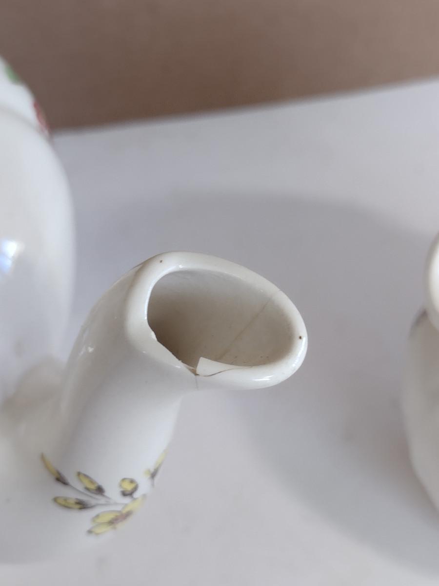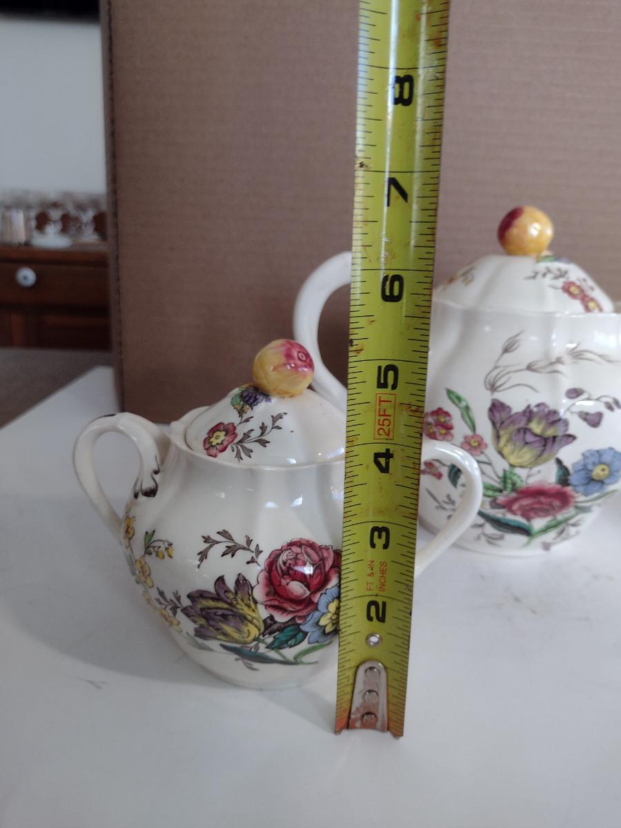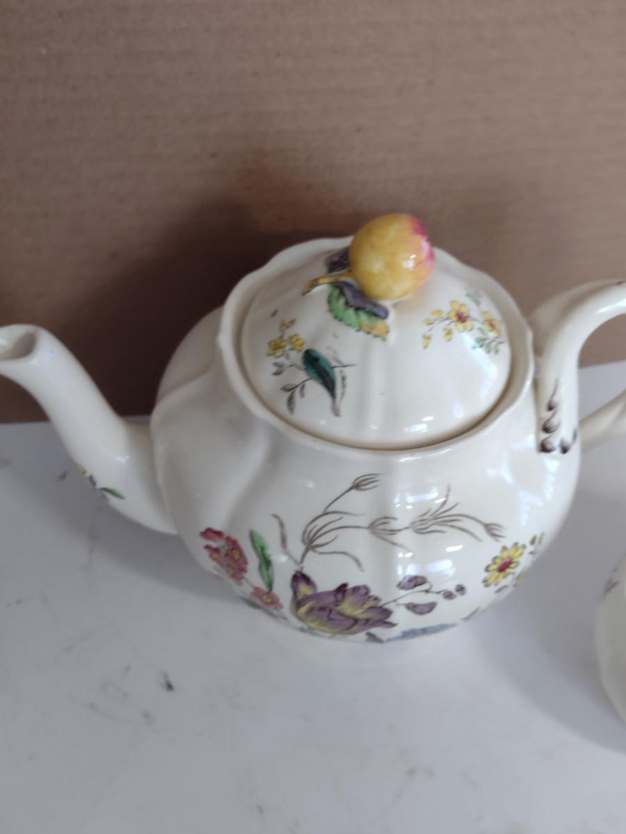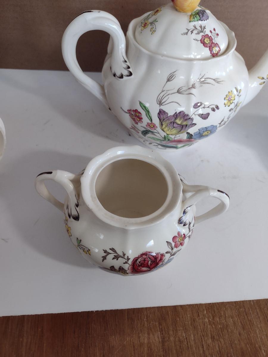 Spode Copeland Teapot, Cream Pitcher, and Covered Sugar Bowl. Please see all pictures- spout of teapot is damaged, chip on inside lid of teapot.