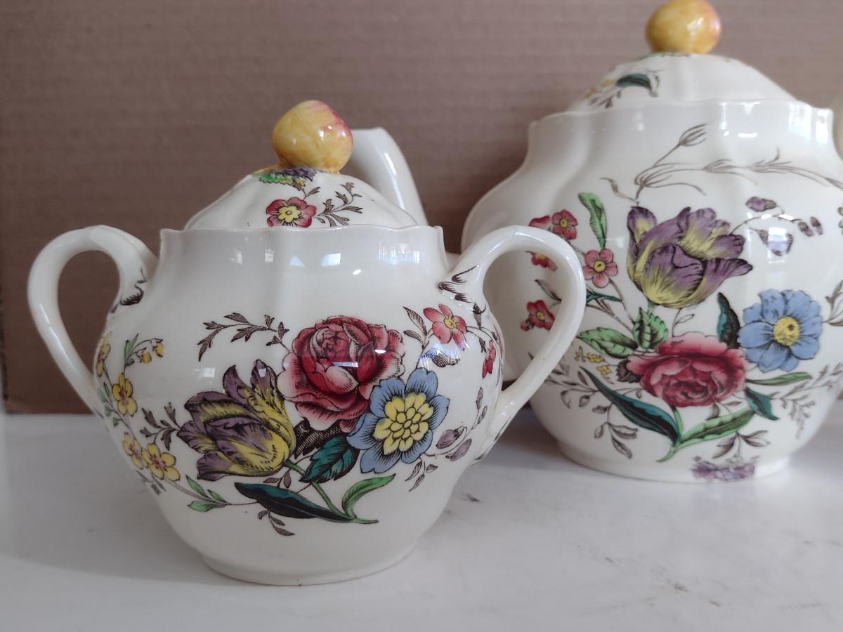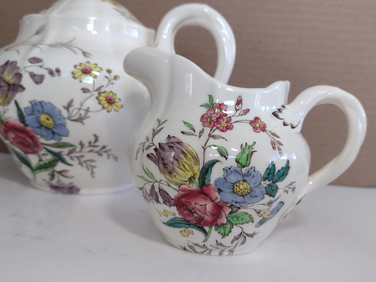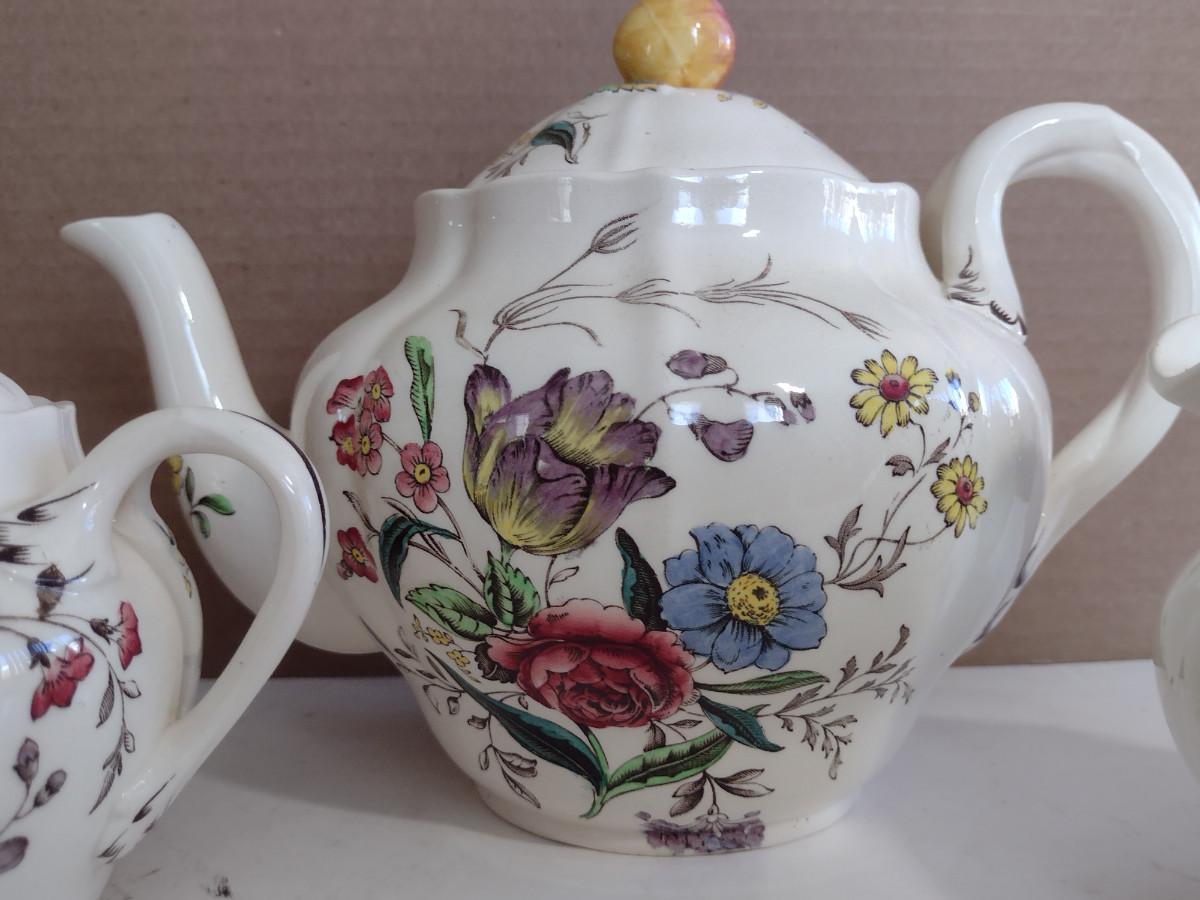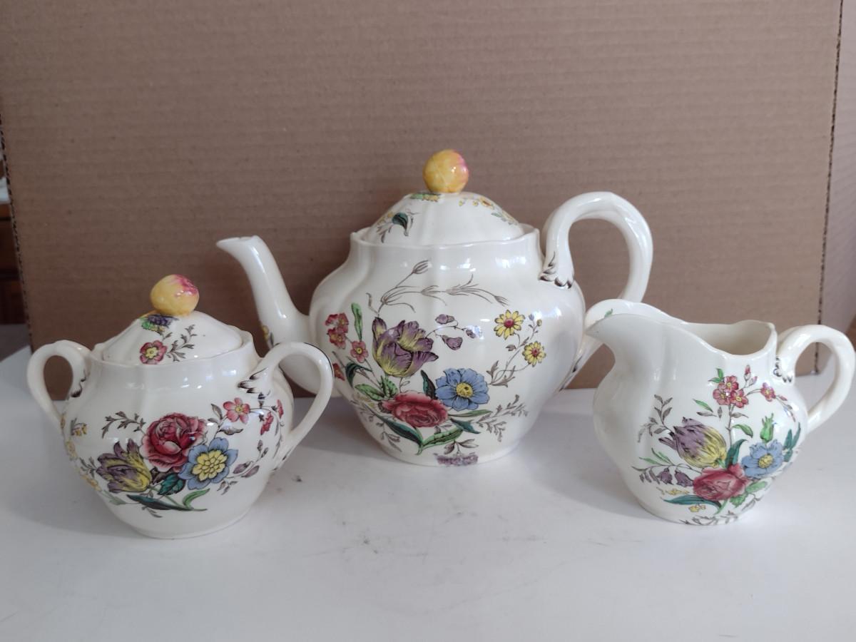 Spode Copeland Teapot, Cream Pitcher, and Covered Sugar Bowl