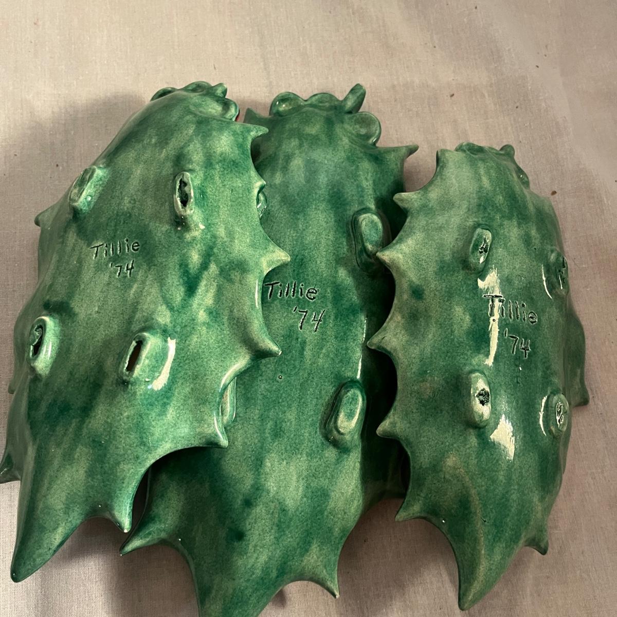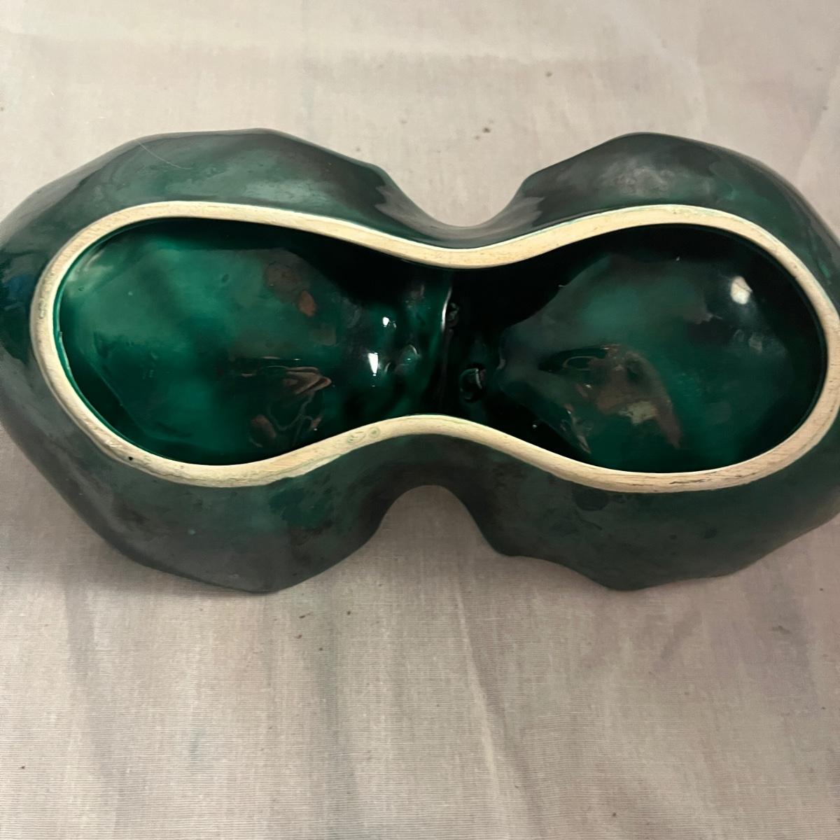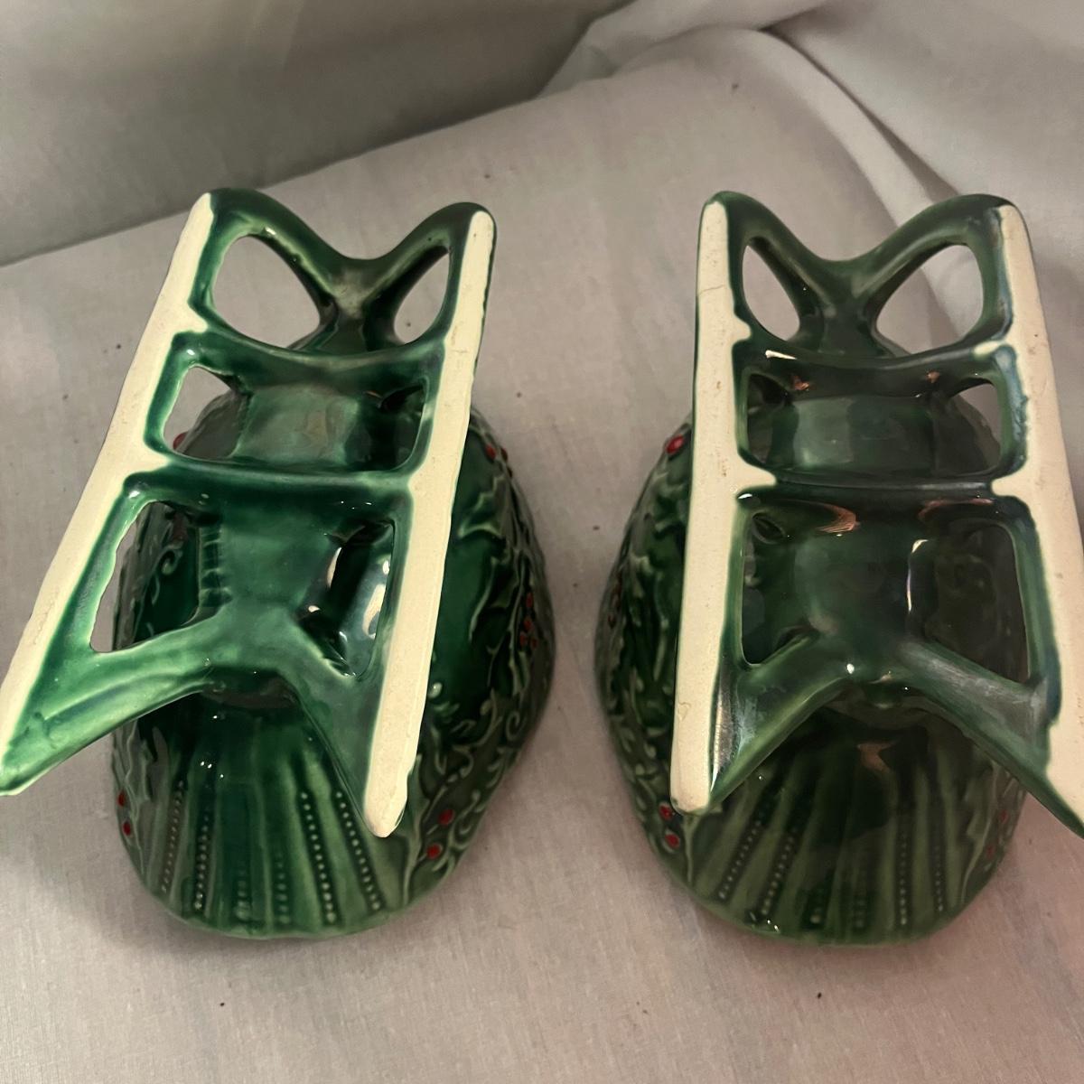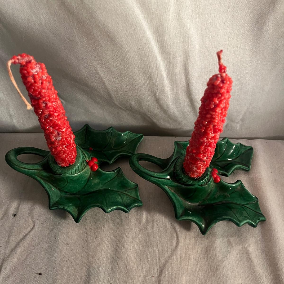 This collection of ceramic Christmas dishes that includes a Spode heart shaped dish, large bowl, two candle holders, leaf dishes and two star shaped dishes. Largest bowl measures 10”D x 5”H.