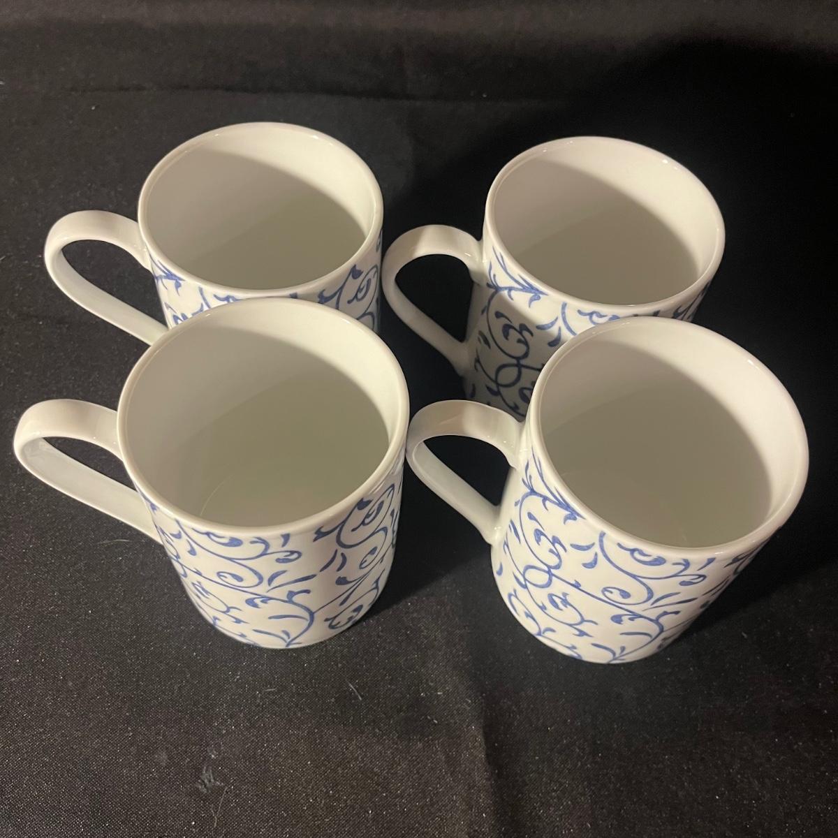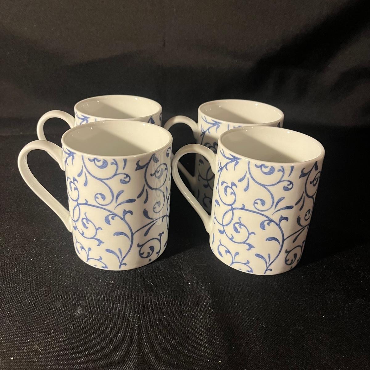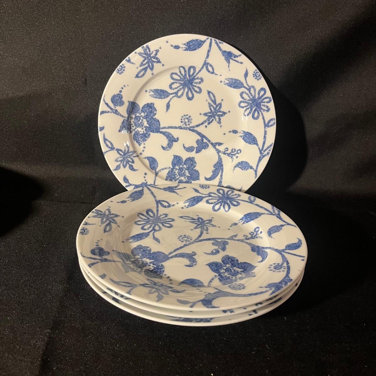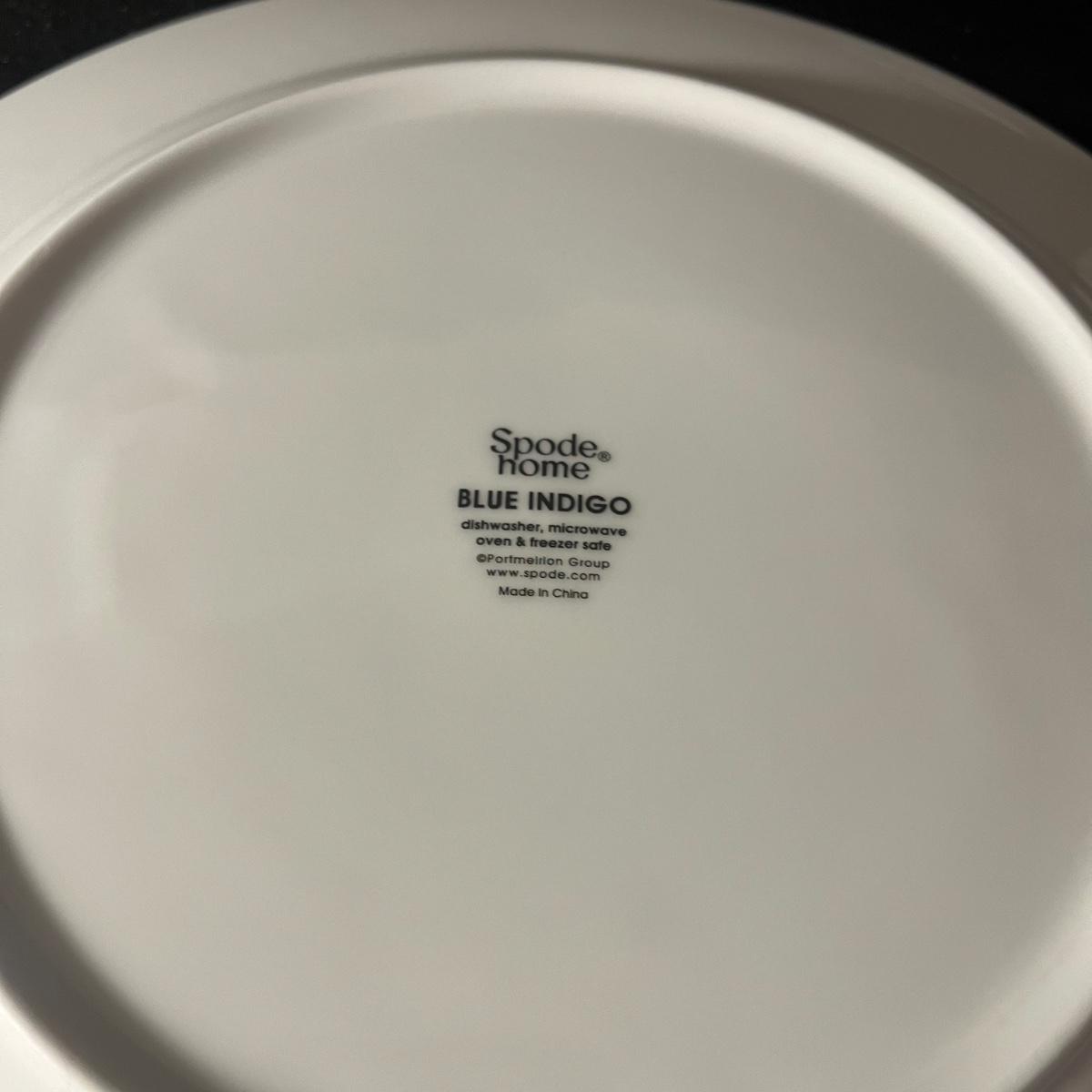 Lot includes a sixteen piece dish set by Spode Home in Blue Indigo pattern. Four place settings with a 10.5" dinner plate, a salad plate, soup bowl and coffee mug in a contrasting floral design.