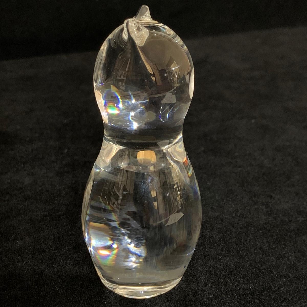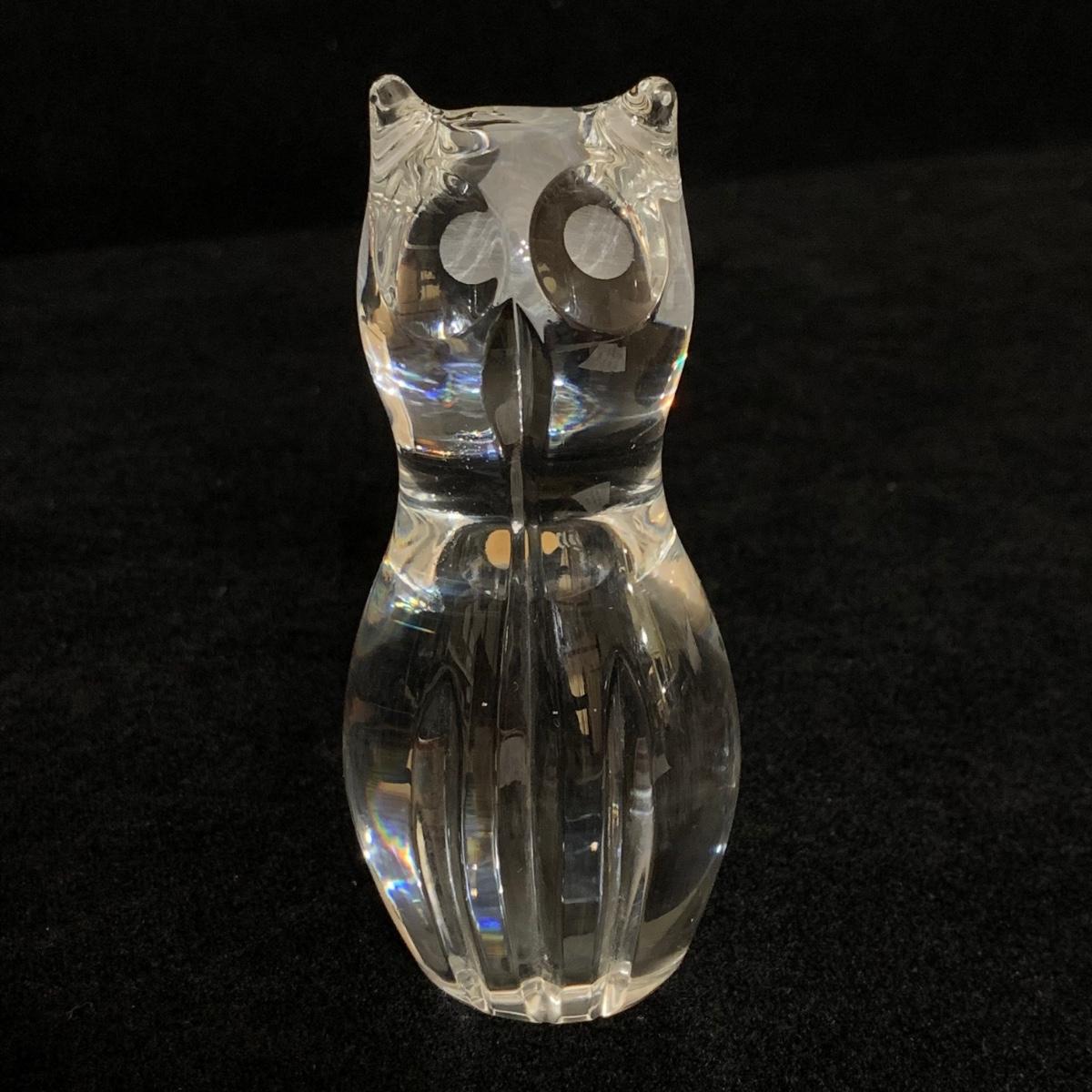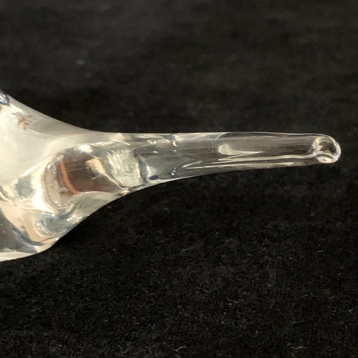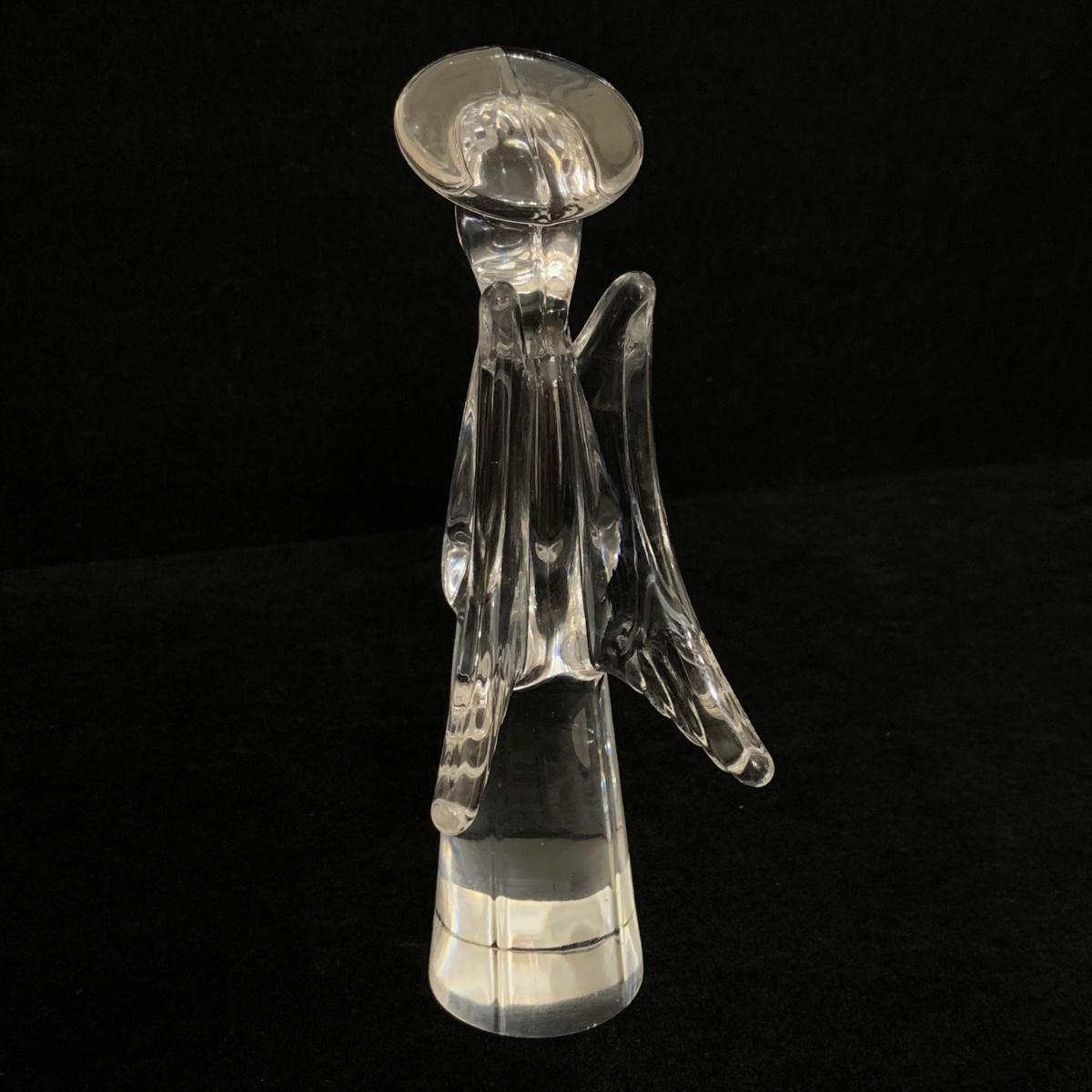 Three lead Crystal figurines. One is a Spode cat, marked that is is hand-blown, hand-cut full lead crystal made in West Germany. It is 4” tall. Another is an angel, marked that it is genuine 25% lead crystal, made in Japan. The angel is 8.75” tall. The third figurine is a bird. It is unmarked and could be glass rather than crystal, but we cannot confirm its material. All items are in very good condition.