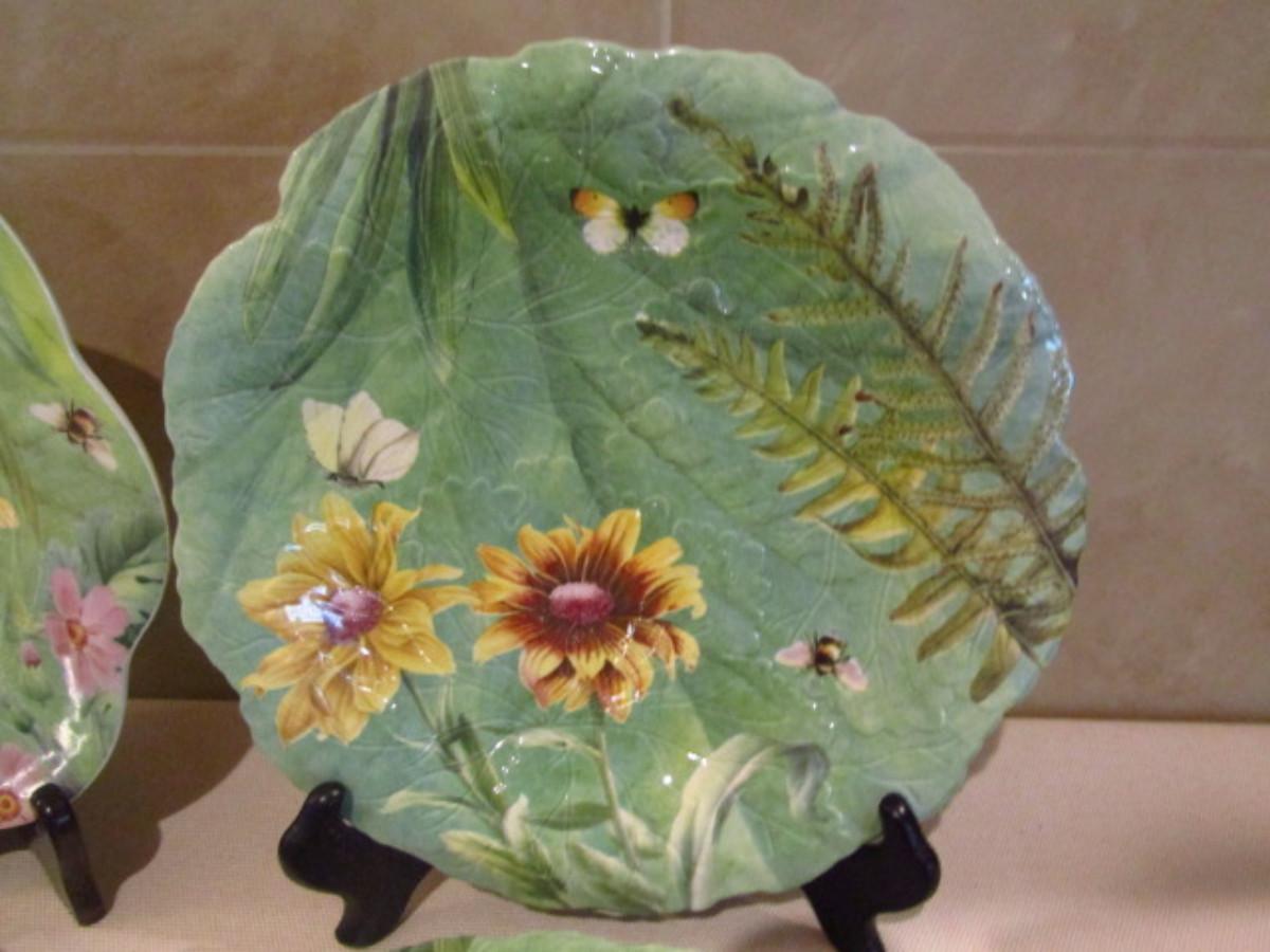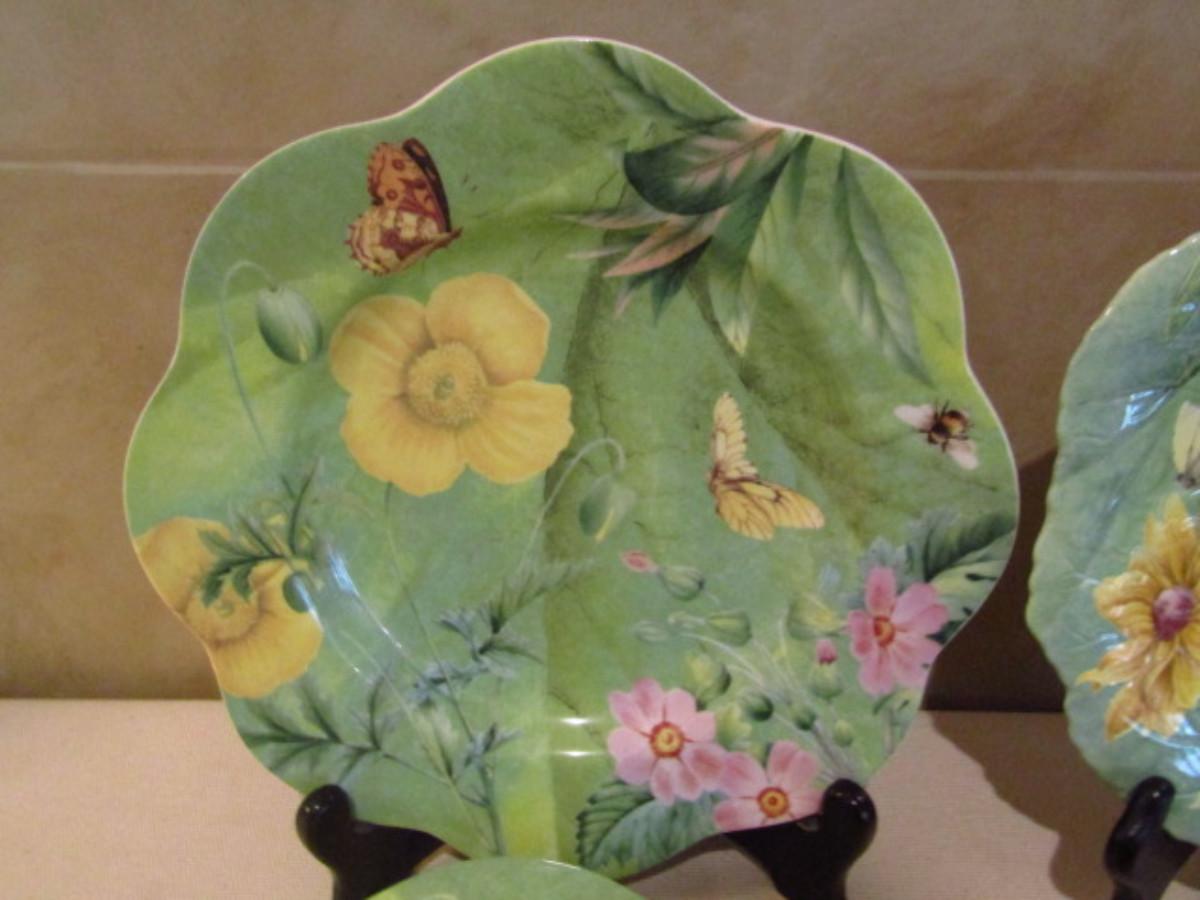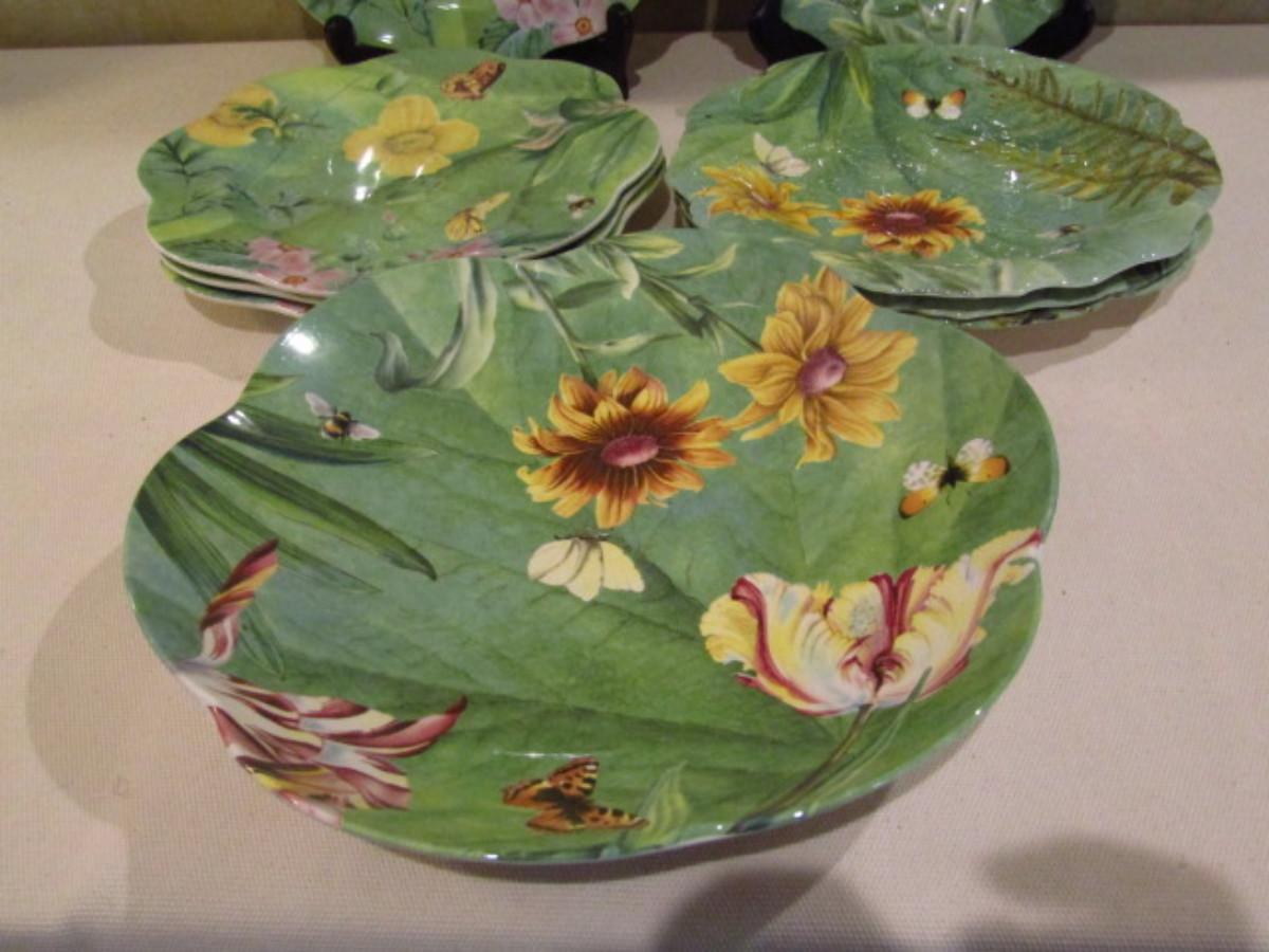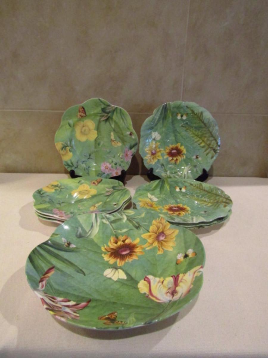 Spode Plates and Serving Bowl in Floral Haven Pattern. There are 8 plates featuring two different designs.