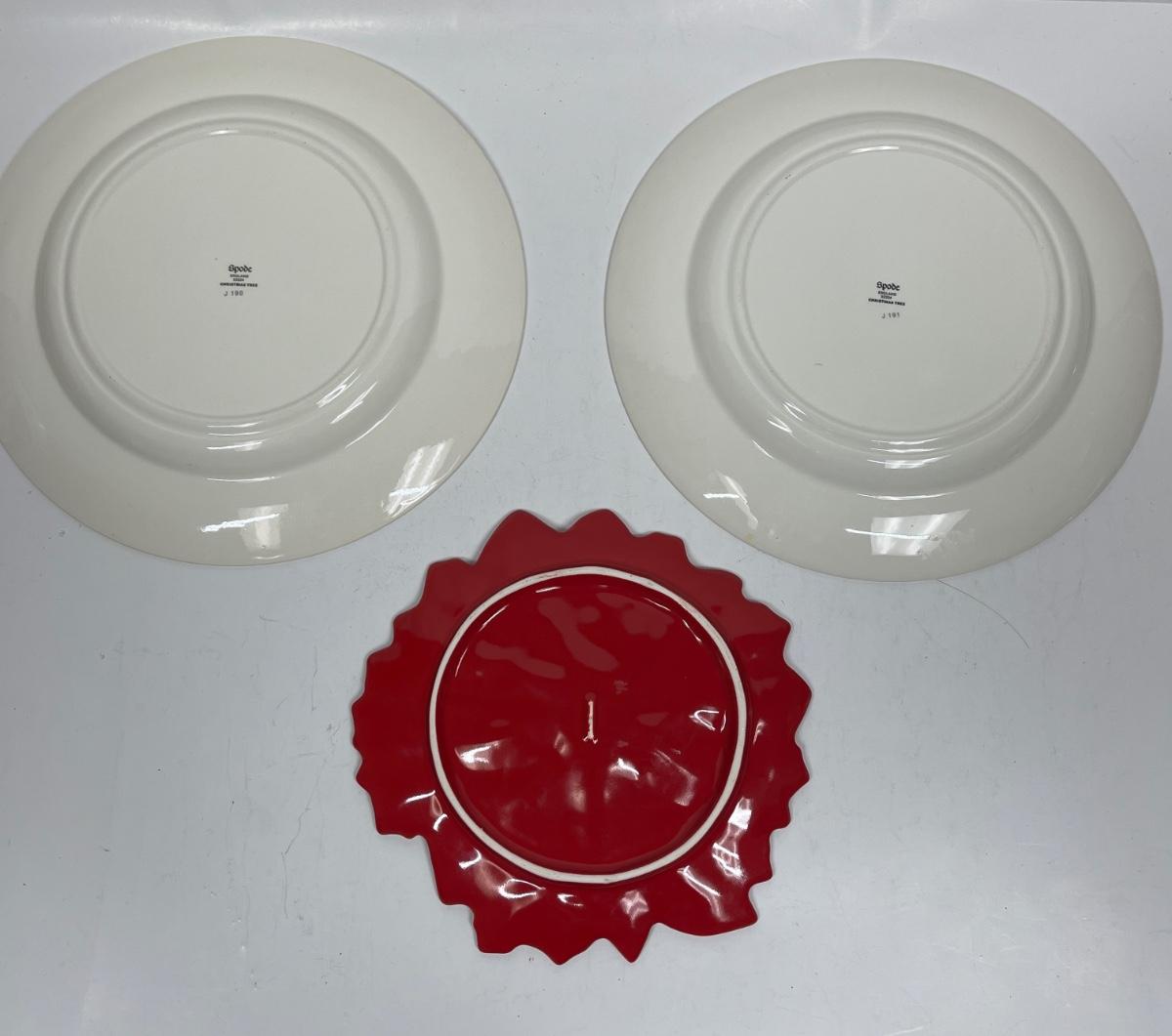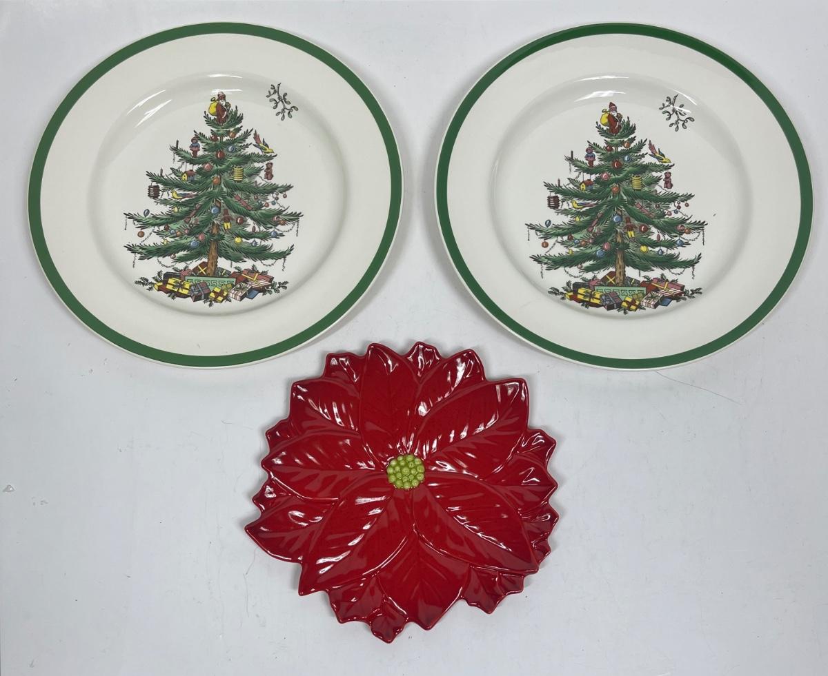 2 Spode Christmas Tree Plates and Ceramic poinsettia display plate