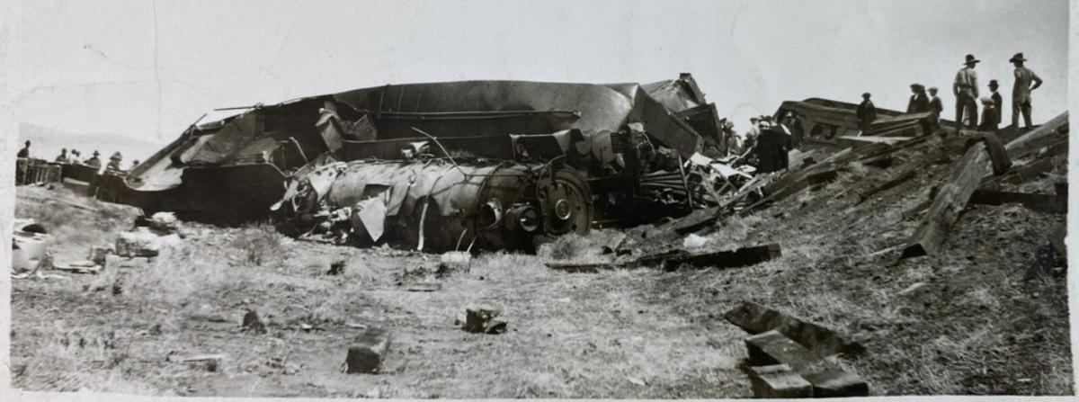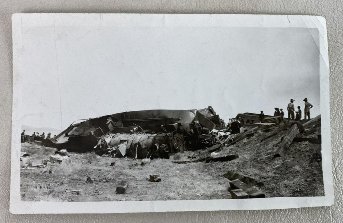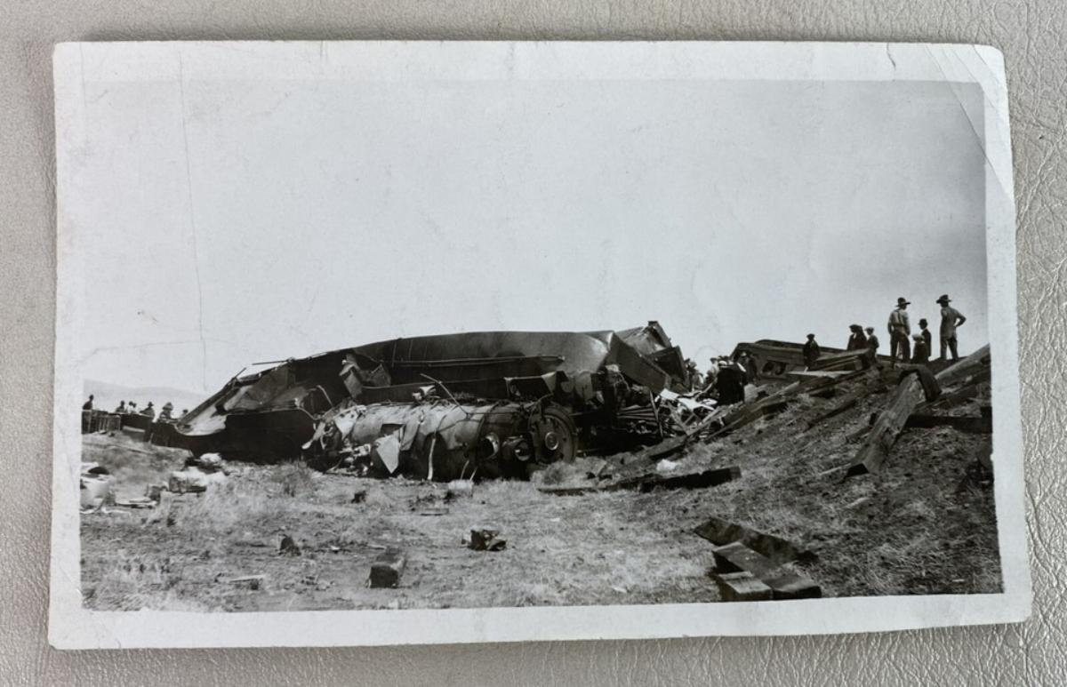 From the estate of a long-time western railroads employee here is a b/w snapshot of a train wreck which I believe may by a locomotive on the Spokane, Portland & Seattle Railway...On March 25th, the 700, leading train No. 4 near Redd, WA, hits a rock slide at 45mph. The engine and three head end cars derail and slide down a steep slope towards the Snake River...The engine crew escapes with only minor injuries..Light age and use wear..5 1/2 x 3 3/8"..