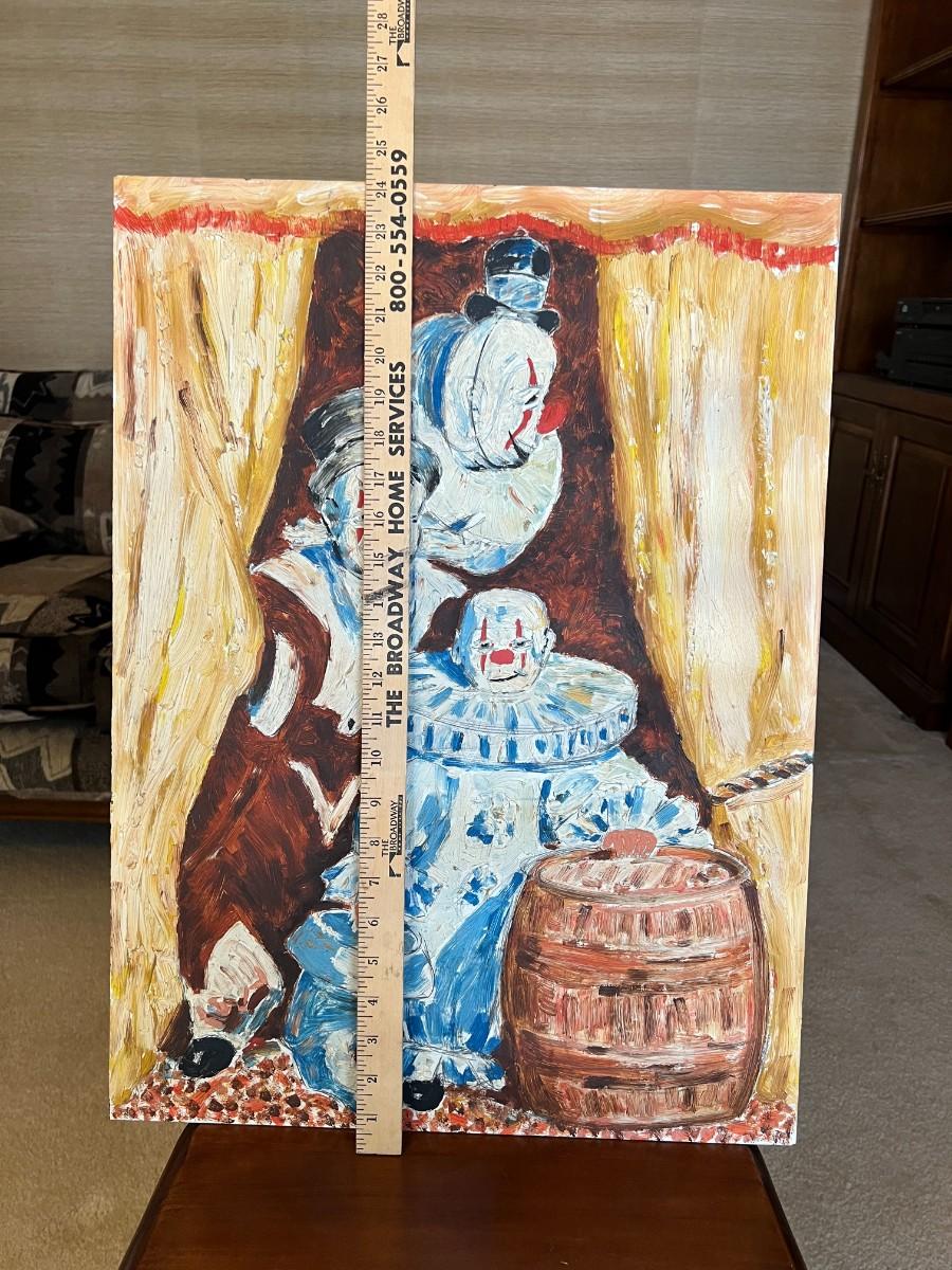 Spooky Clown Amateur Acrylic Painting on Wood Paneling Board