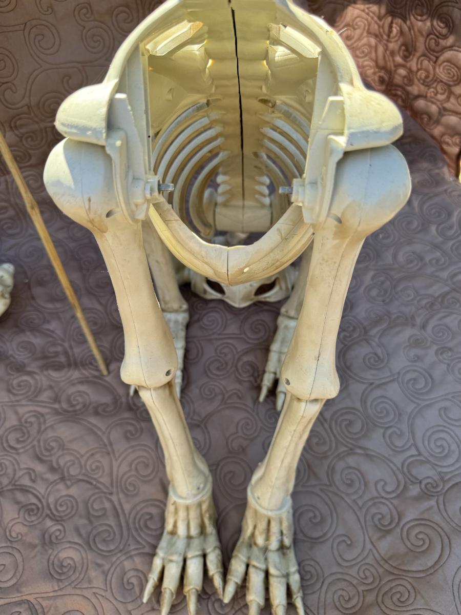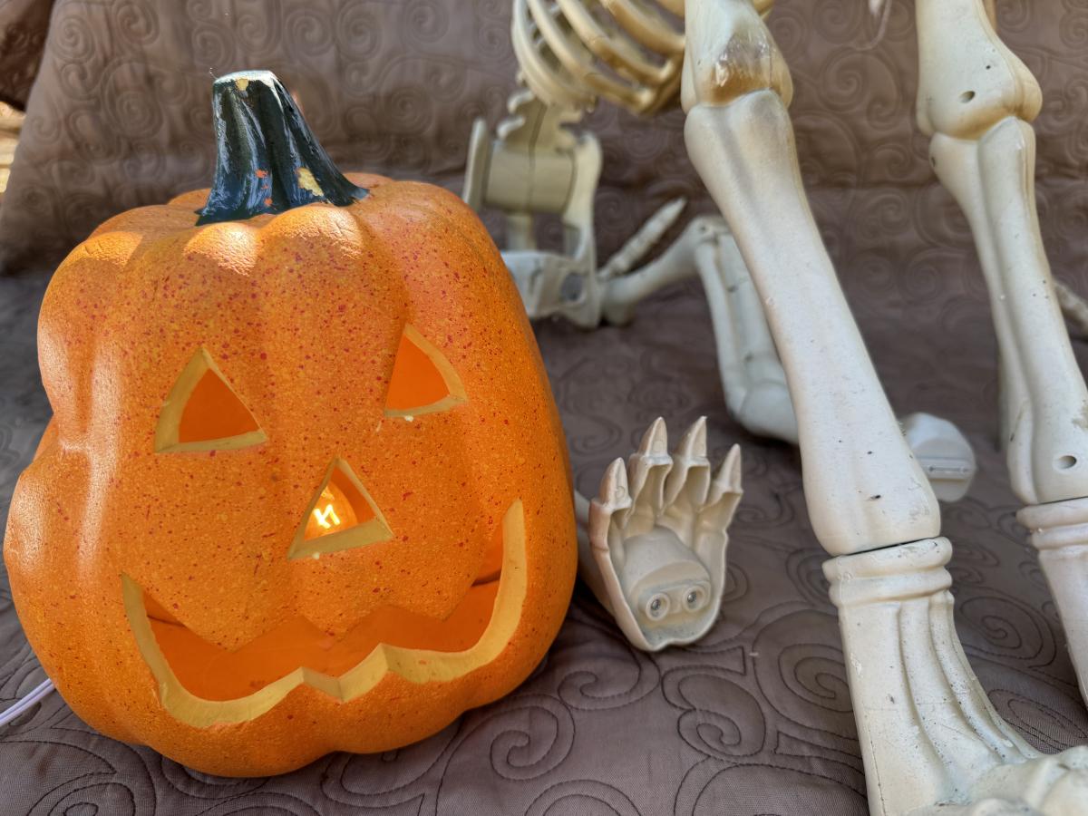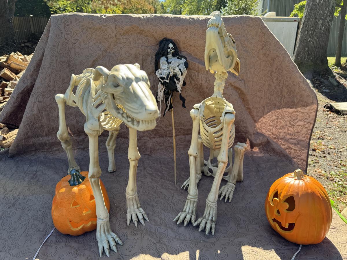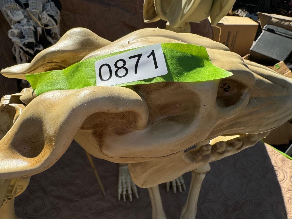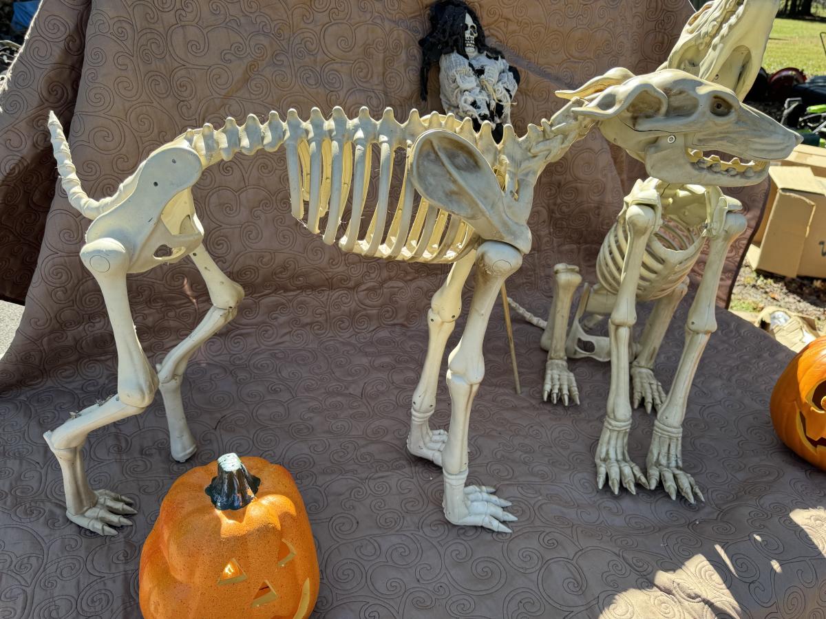Buying as is, as found in this wonderful estate. See MANY PHOTOS for content, condition and dimensions. Never a Buyers Premiums or Credit Card Fee. All lots start at just $10 and sell with No Reserve to the highest bidder. Pumpkins light up and tested as shown in photos. Skeleton dogs are battery operated but not tested.
