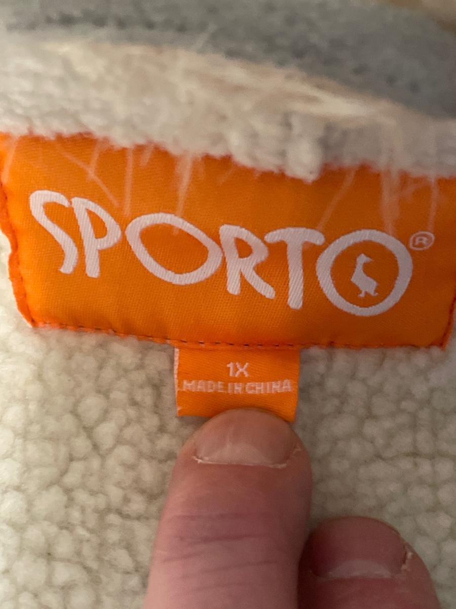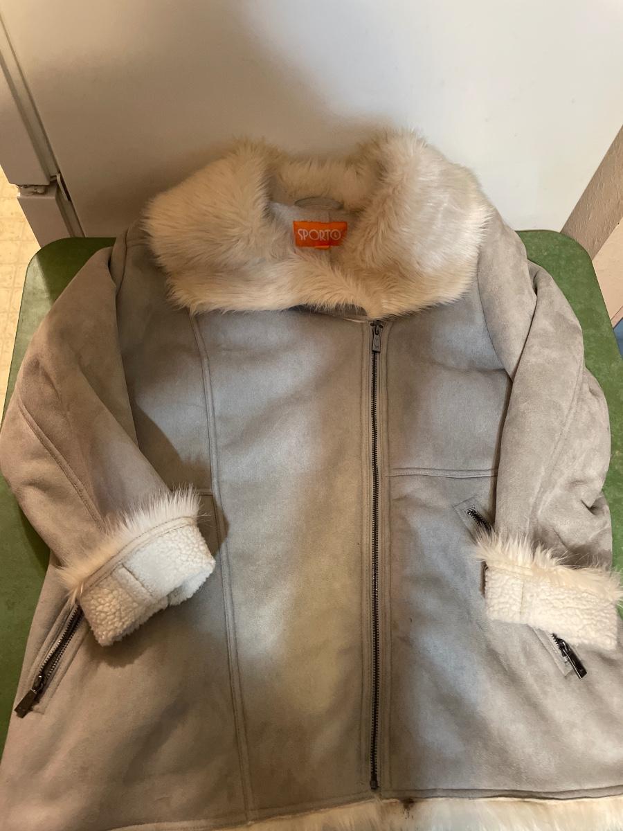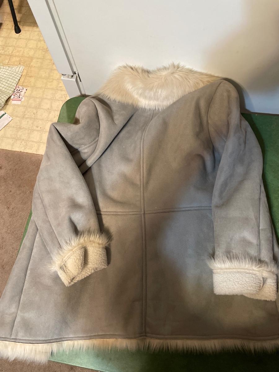 Grey colored suede jacket with sheep skin interior. Size 1X