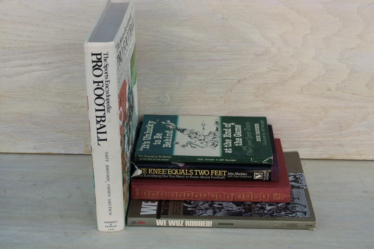 Sports books; The Sports Encyclopedia: Pro Football, One Knee Equals Two Feet - John Madden and Dave Anderson; We Wuz Robbed; and It's Unlucky to be Behind at the End of the Game