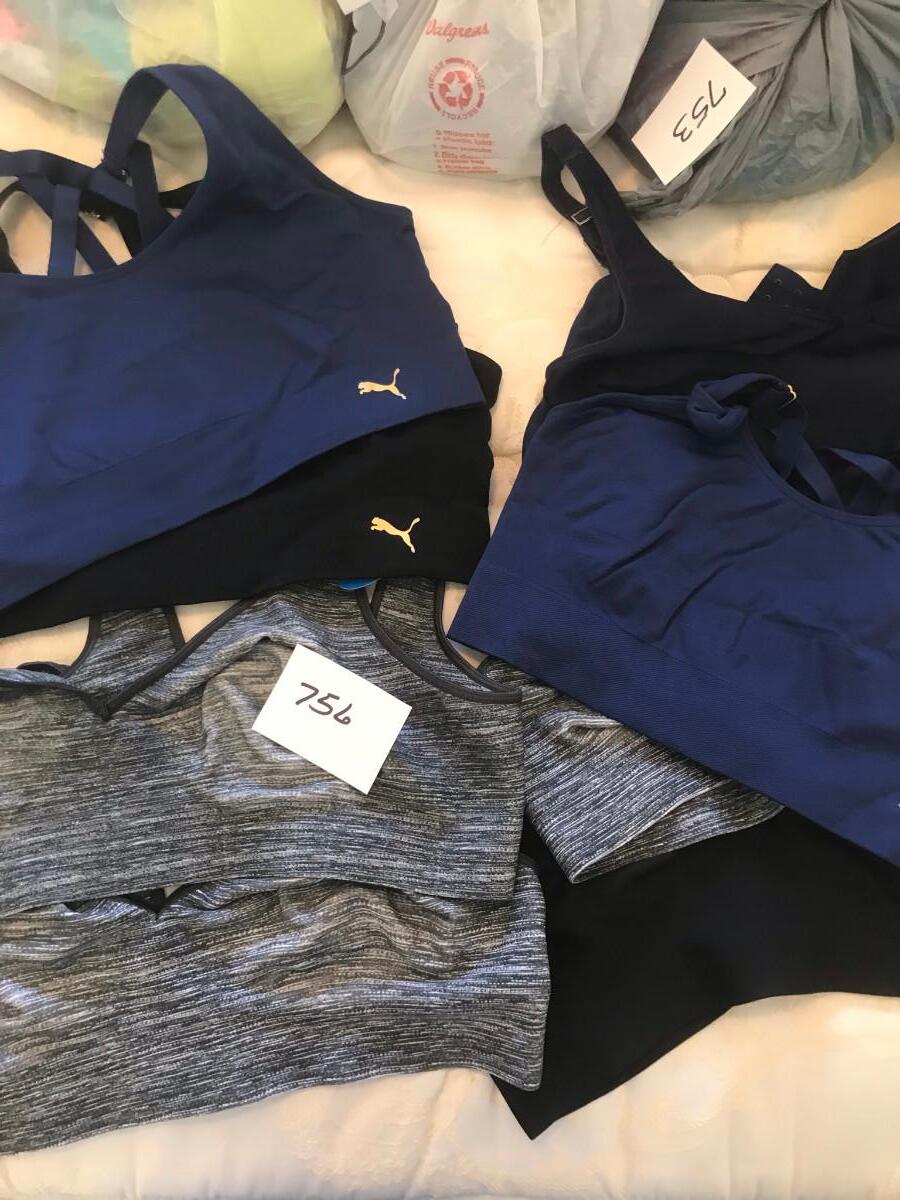 On clothing: New, some with tags! Please see photos for quantity, colors, size, and condition. Please, also most items are Large or XL in women's clothing.